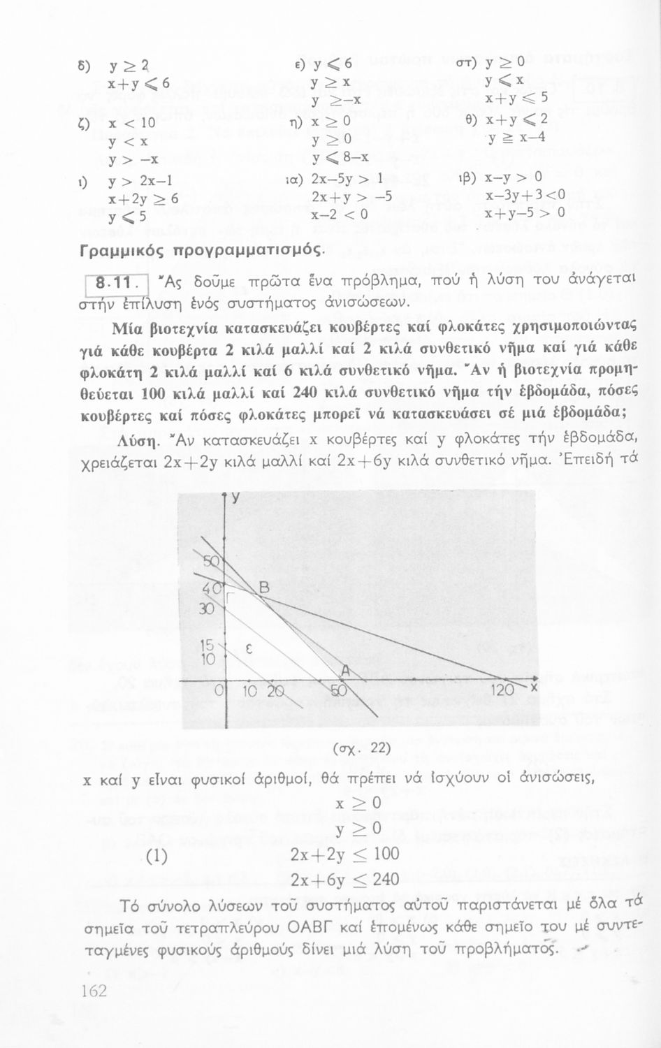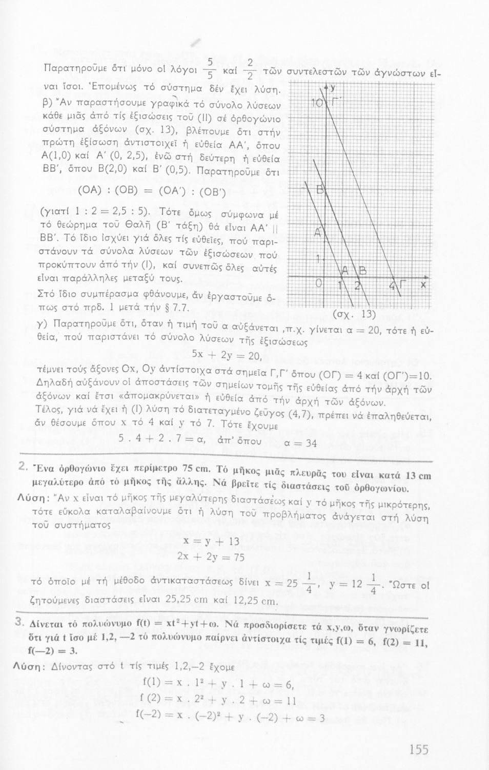 Σχολικό εγχειρίδιο Μαθηματικών για την Ε΄ Γυμνασίου, χωρισμένο σε προβλήματα, εφαρμογές και ασκήσεις, που εστιάζει στην Τριγωνομετρία. Φέρει το σύμβολο της δικτατορίας.
