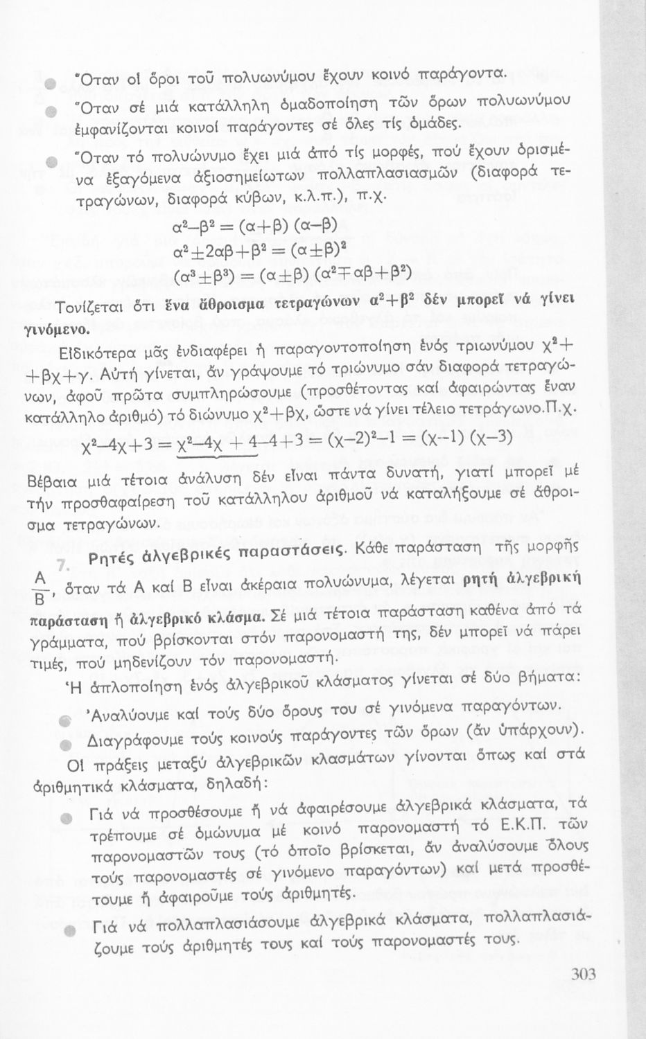 Σχολικό εγχειρίδιο Μαθηματικών Γ΄ Γυμνασίου που περιλαμβάνει θεωρία, παραδείγματα και ασκήσεις. Φέρει το σύμβολο της δικτατορίας.