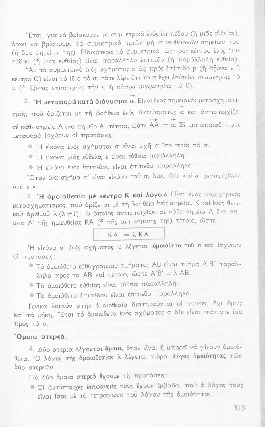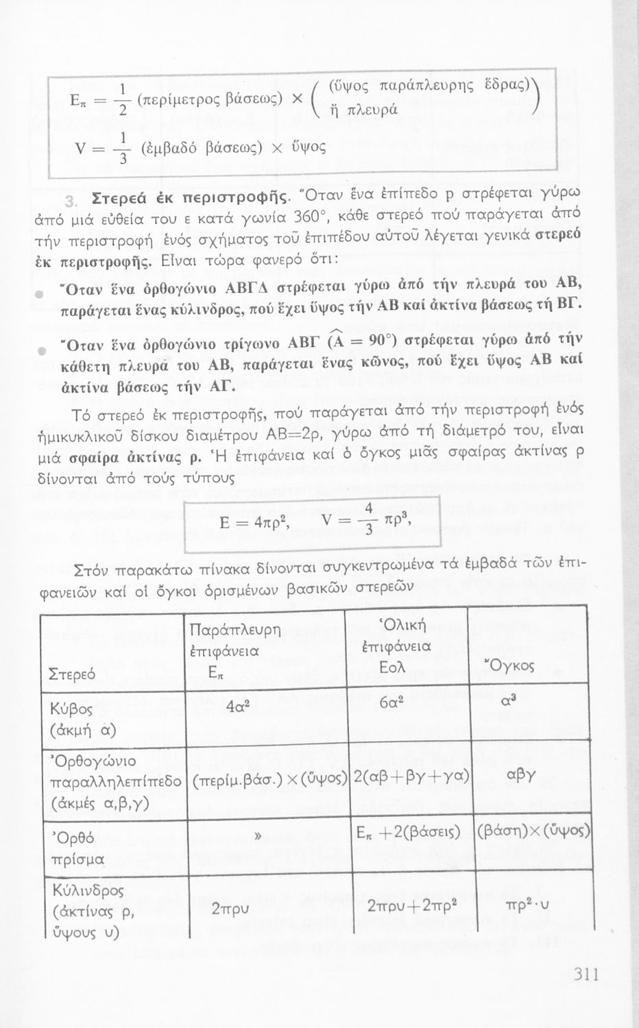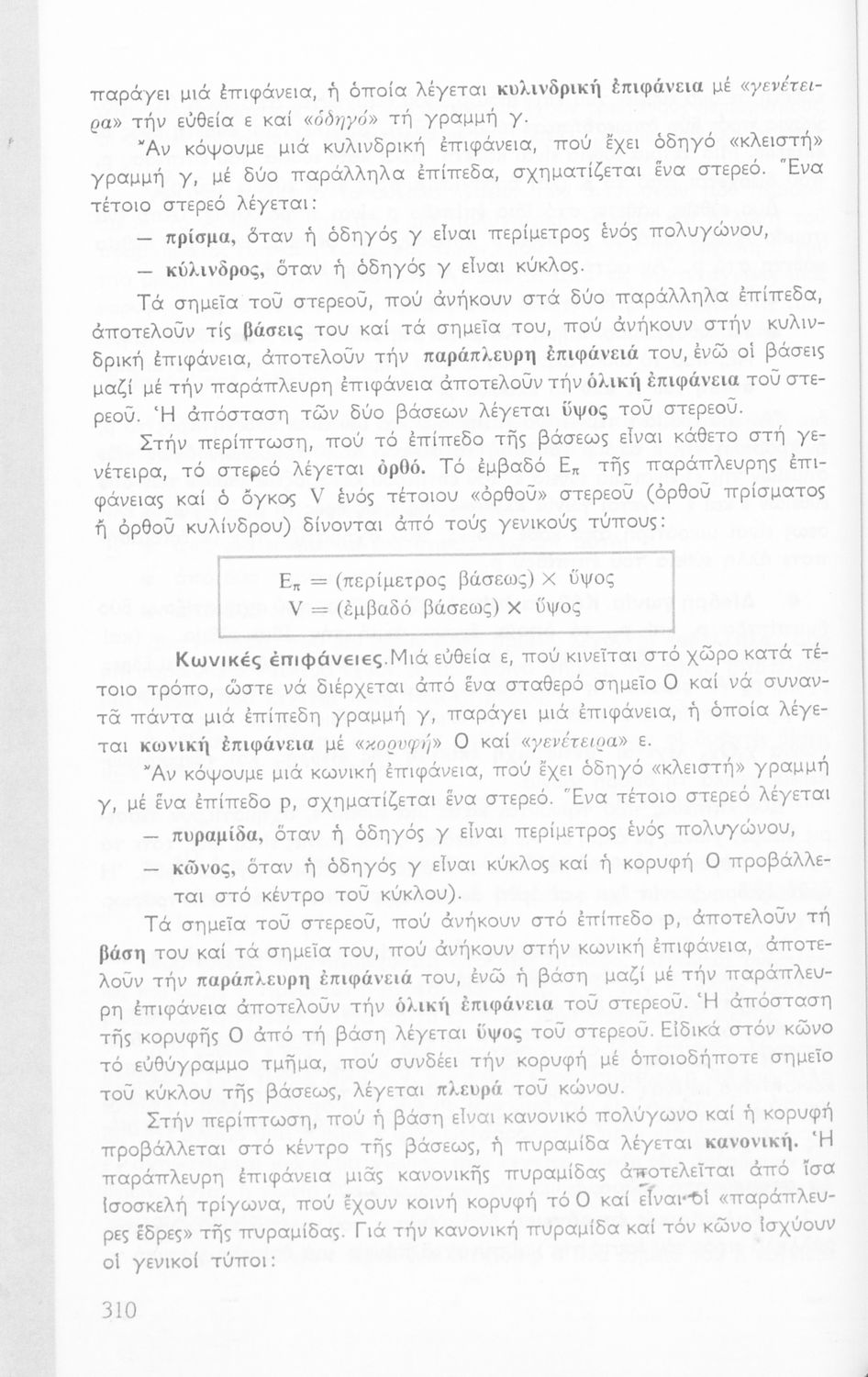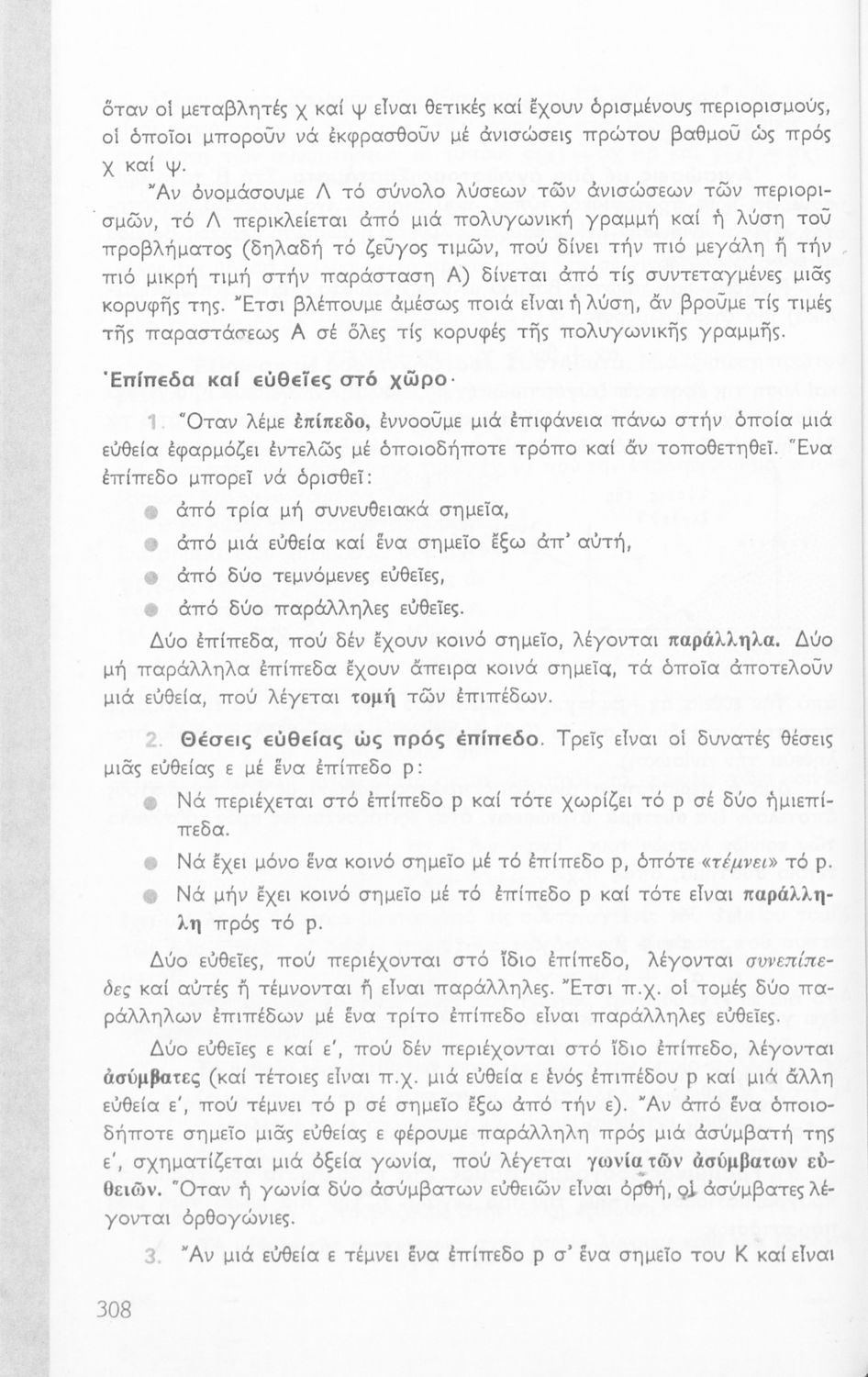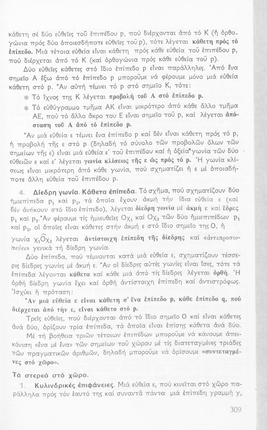 Σχολικό εγχειρίδιο Γεωμετρίας για τις Γ΄, Δ΄, Ε΄, ΣΤ΄ Γυμνασίου που περιλαμβάνει θεωρία και ασκήσεις και είναι χωρισμένο σε Επιπεδομετρία και Στερεομετρία.
