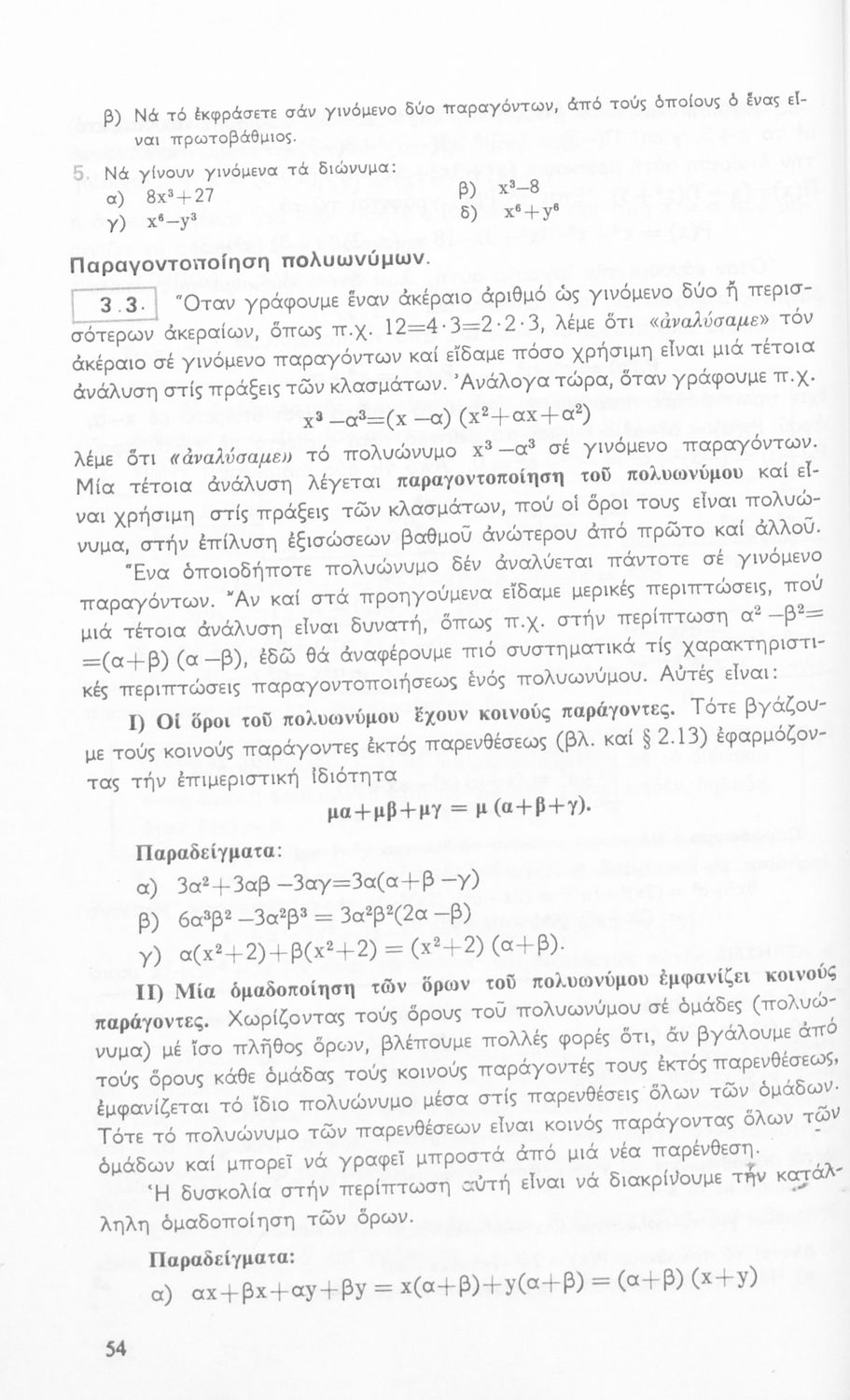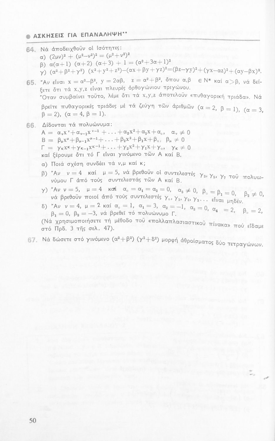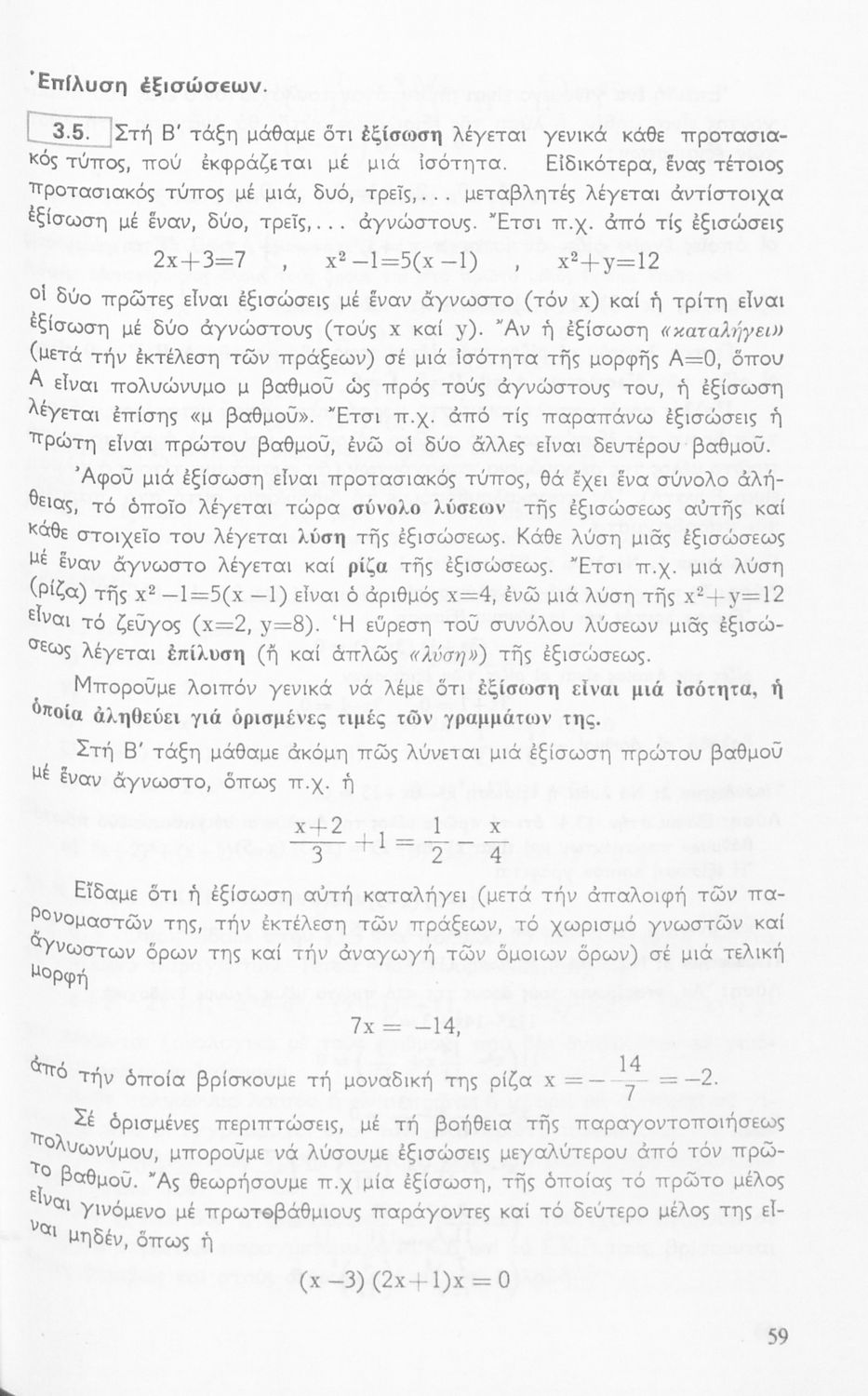 Σχολικό εγχειρίδιο Μαθηματικών Γ΄ Γυμνασίου που περιλαμβάνει θεωρία, παραδείγματα και ασκήσεις. Φέρει το σύμβολο της δικτατορίας.