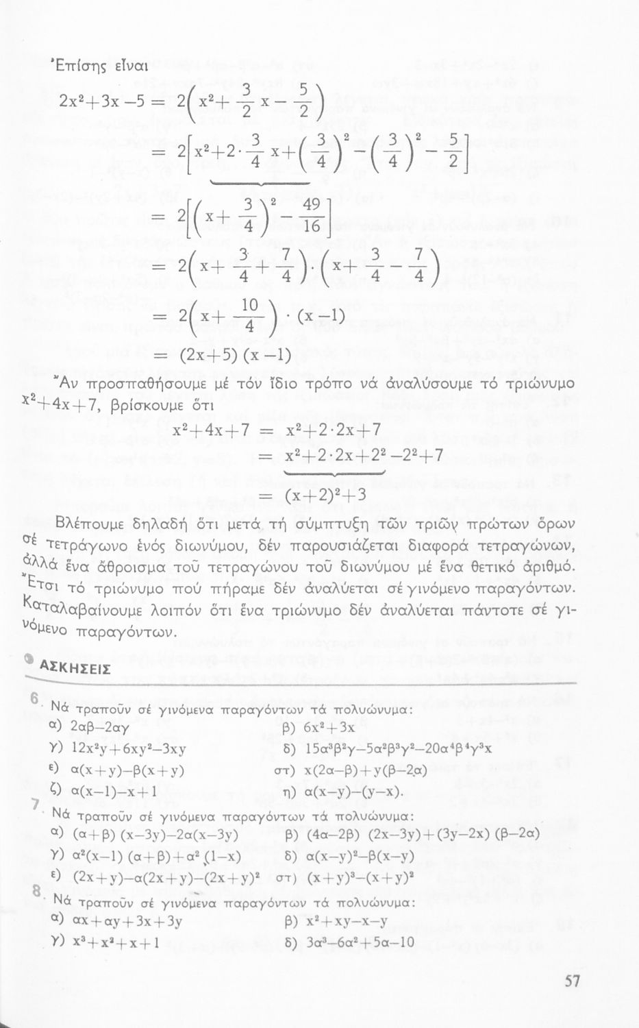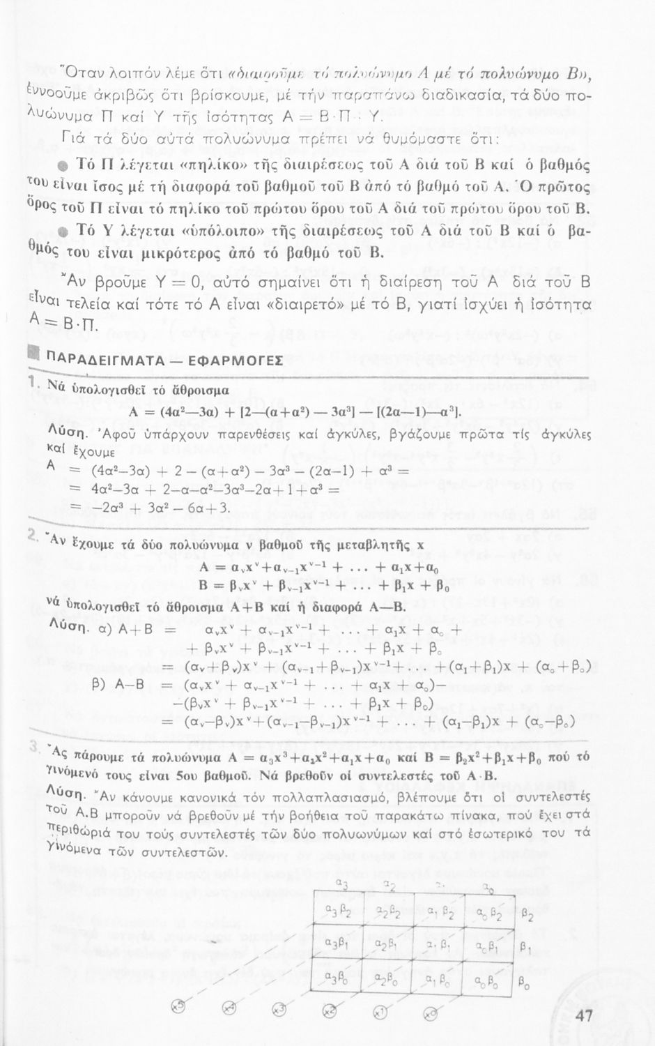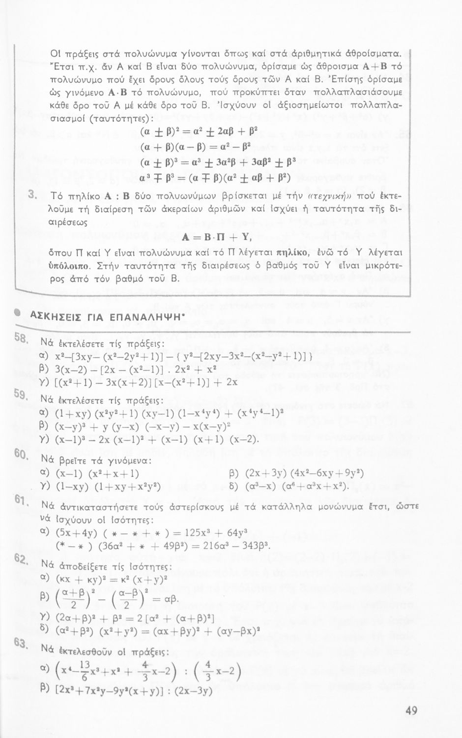 Σχολικό εγχειρίδιο Μαθηματικών Γ΄ Γυμνασίου που περιλαμβάνει θεωρία, παραδείγματα και ασκήσεις. Φέρει το σύμβολο της δικτατορίας.