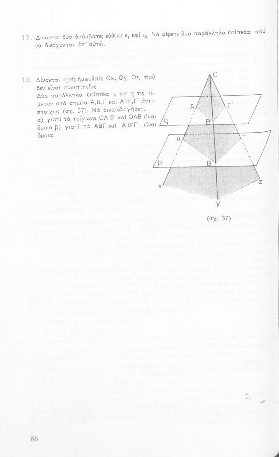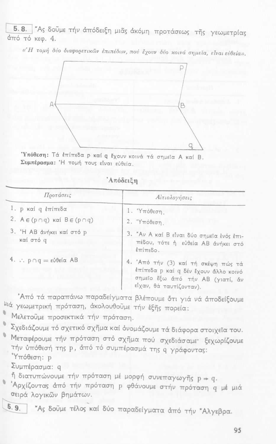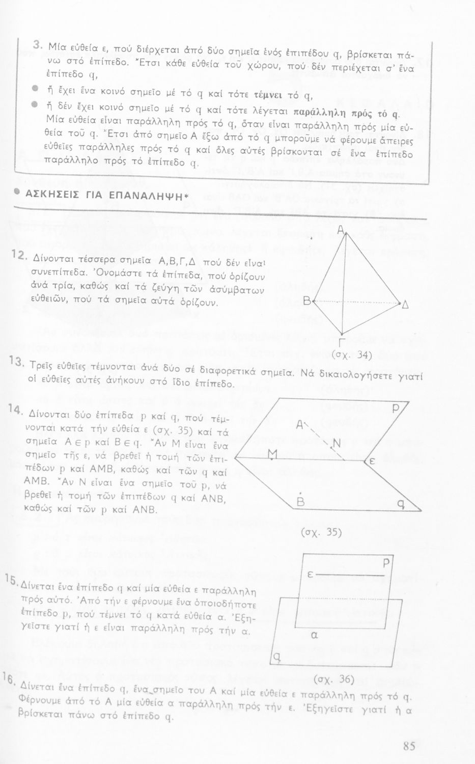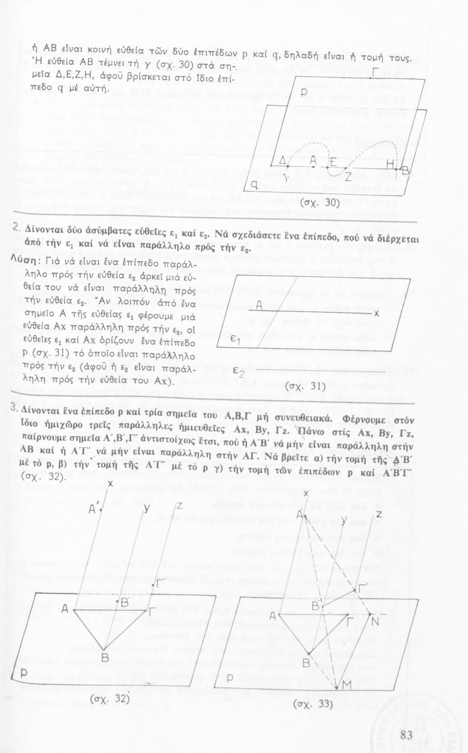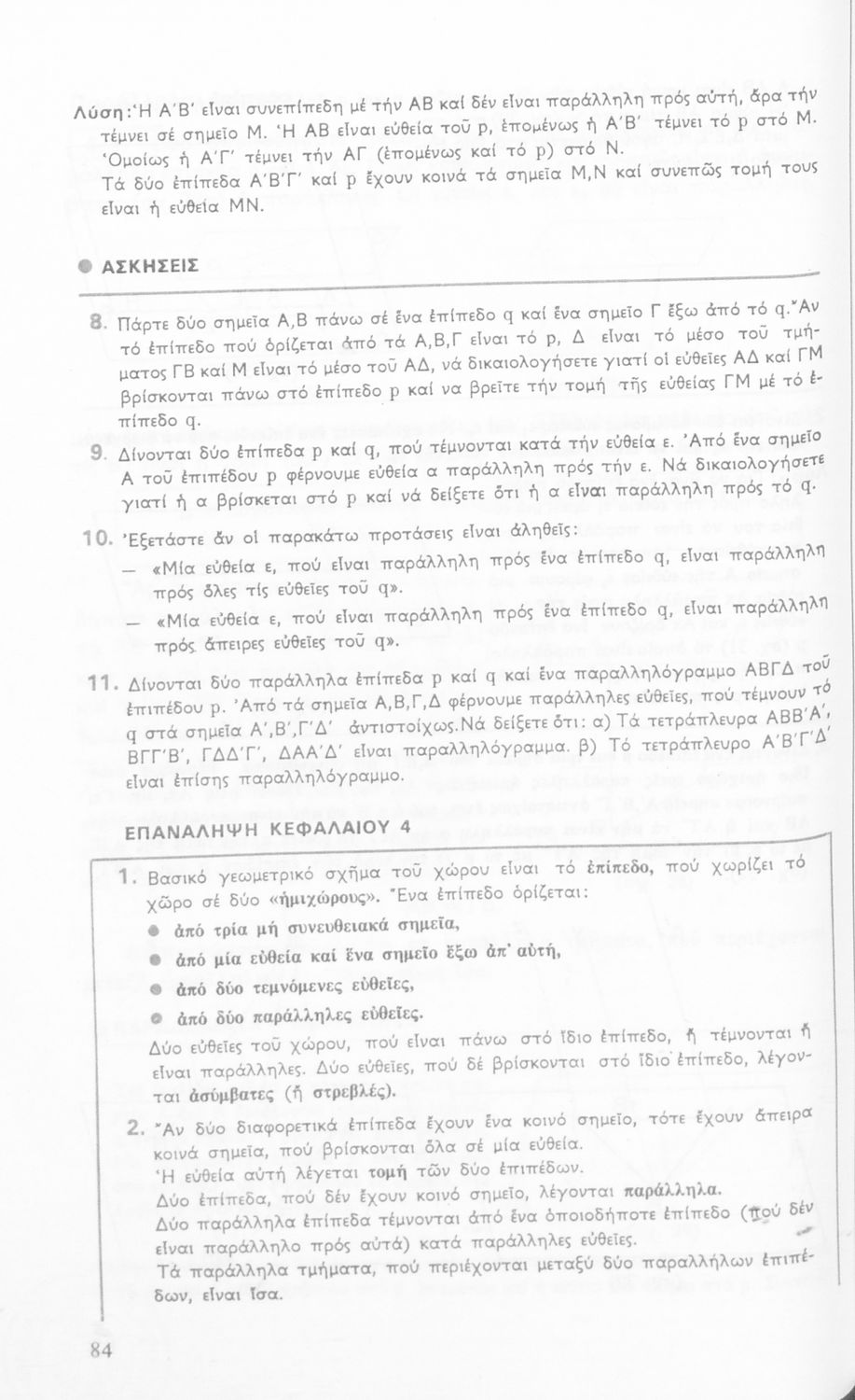 Σχολικό εγχειρίδιο Γεωμετρίας για τις Γ΄, Δ΄, Ε΄, ΣΤ΄ Γυμνασίου που περιλαμβάνει θεωρία και ασκήσεις και είναι χωρισμένο σε Επιπεδομετρία και Στερεομετρία.