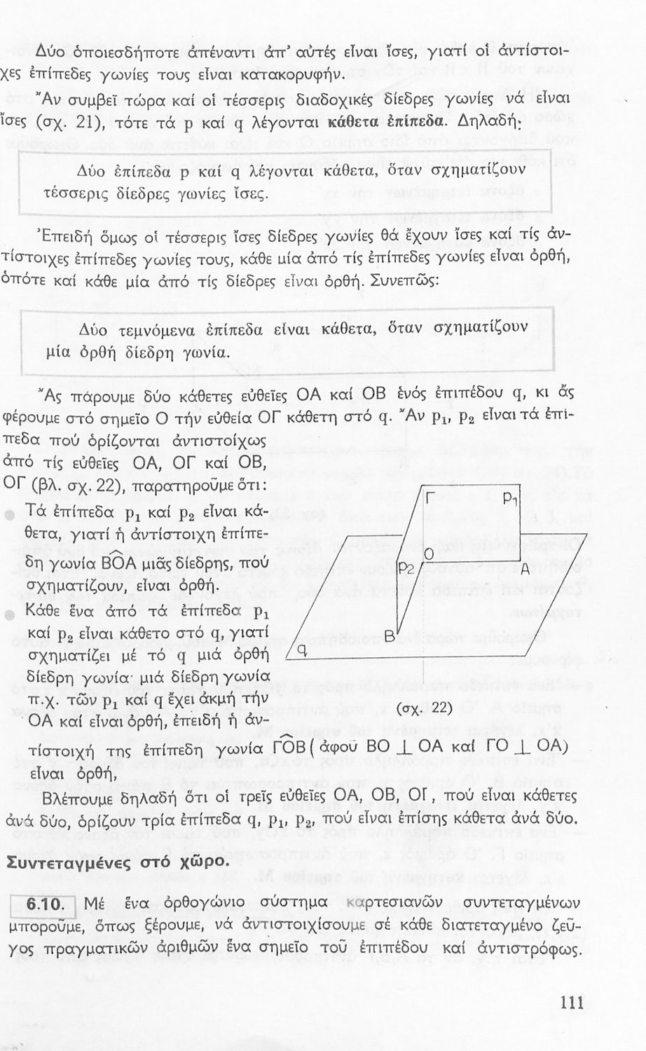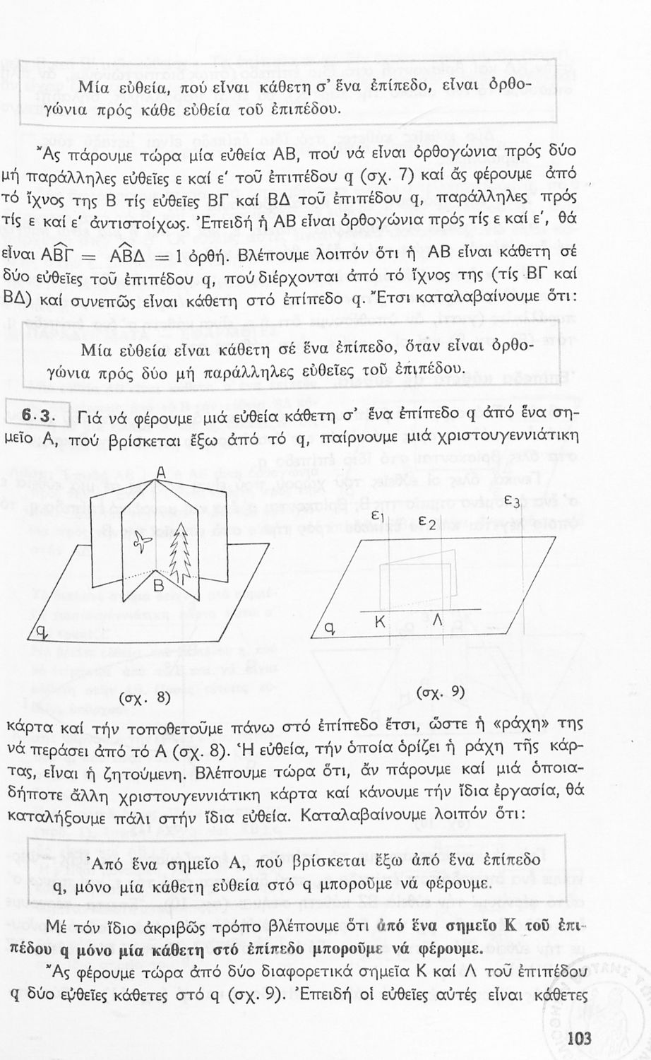 Σχολικό εγχειρίδιο Γεωμετρίας για τις Γ΄, Δ΄, Ε΄, ΣΤ΄ Γυμνασίου που περιλαμβάνει θεωρία και ασκήσεις και είναι χωρισμένο σε Επιπεδομετρία και Στερεομετρία. Φέρει το σύμβολο της δικτατορίας.