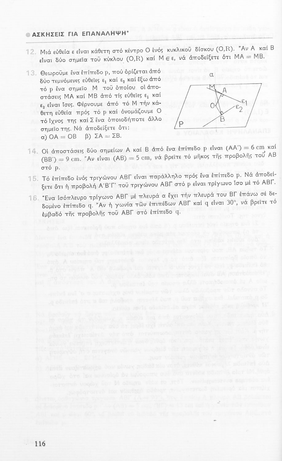 Σχολικό εγχειρίδιο Γεωμετρίας για τις Α΄, Β΄ και Γ΄ Λυκείου που περιλαμβάνει θεωρία και ασκήσεις και είναι χωρισμένο σε Επιπεδομετρία και Στερεομετρία.