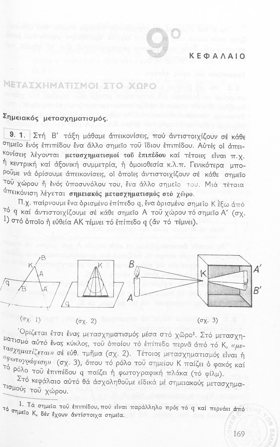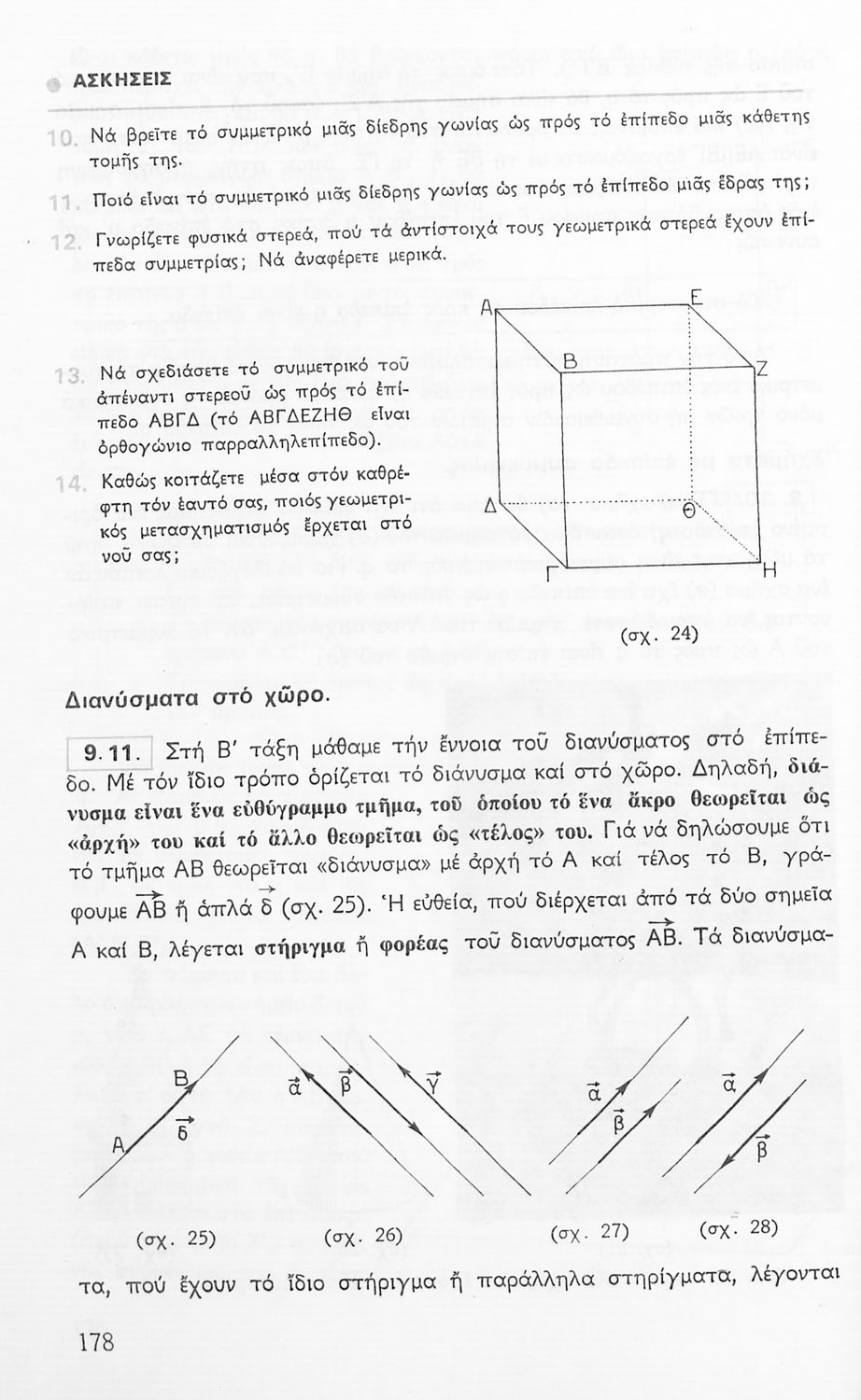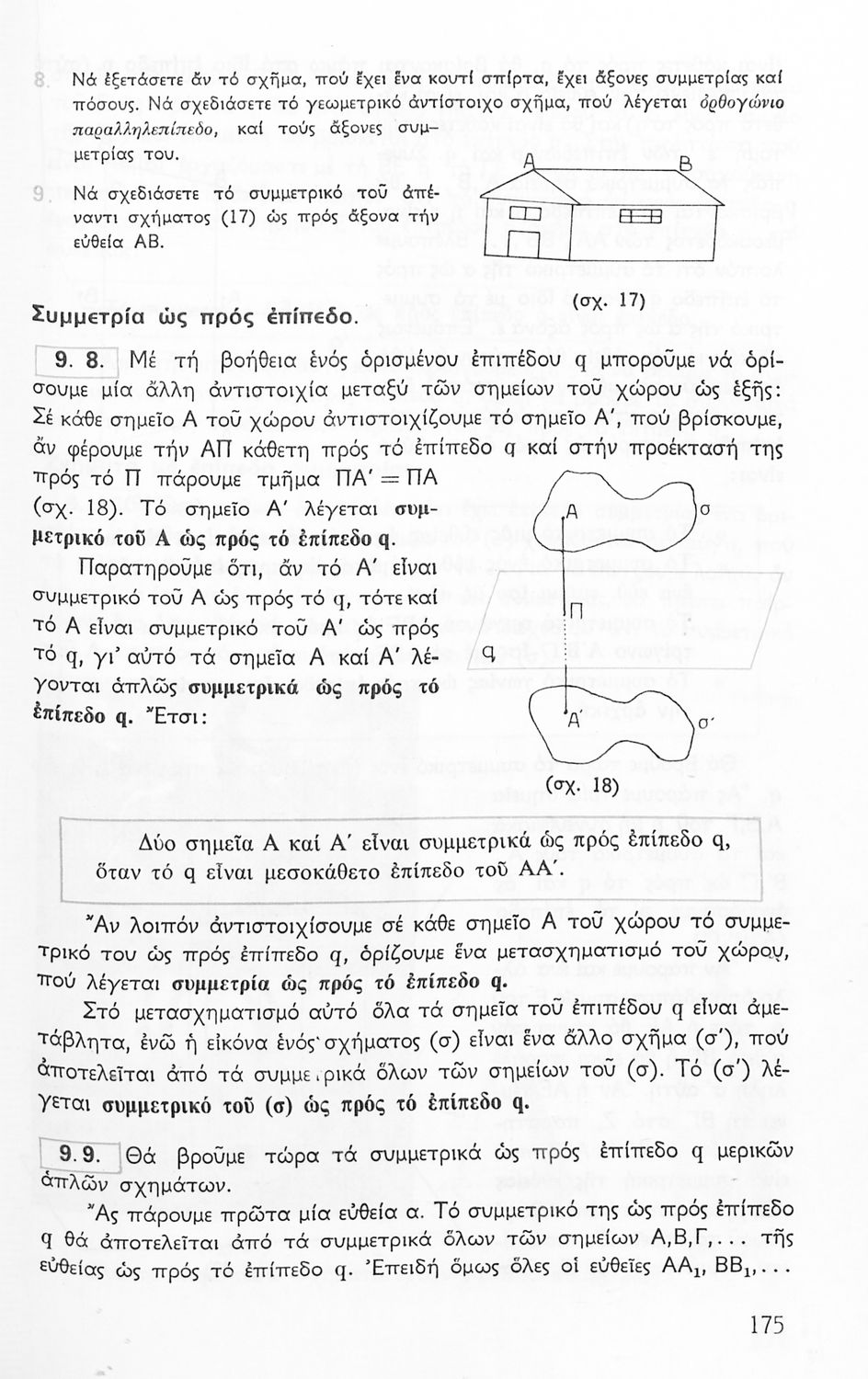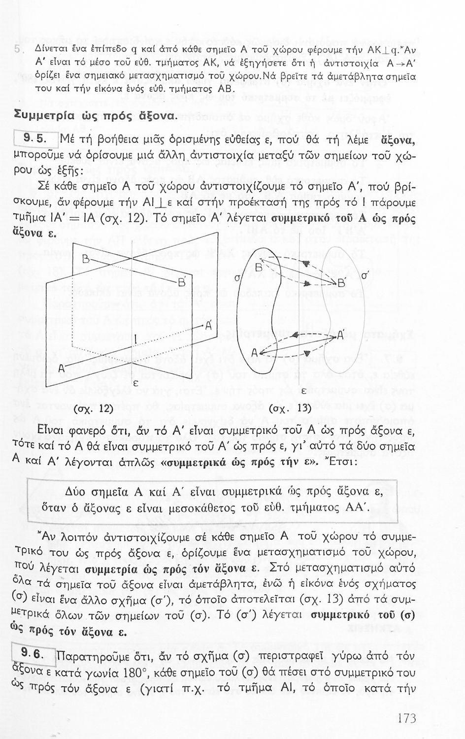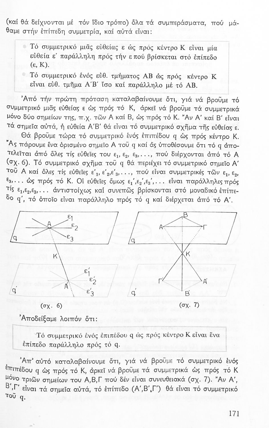 Σχολικό εγχειρίδιο Γεωμετρίας για τις Γ΄, Δ΄, Ε΄, ΣΤ΄ Γυμνασίου που περιλαμβάνει θεωρία και ασκήσεις και είναι χωρισμένο σε Επιπεδομετρία και Στερεομετρία.