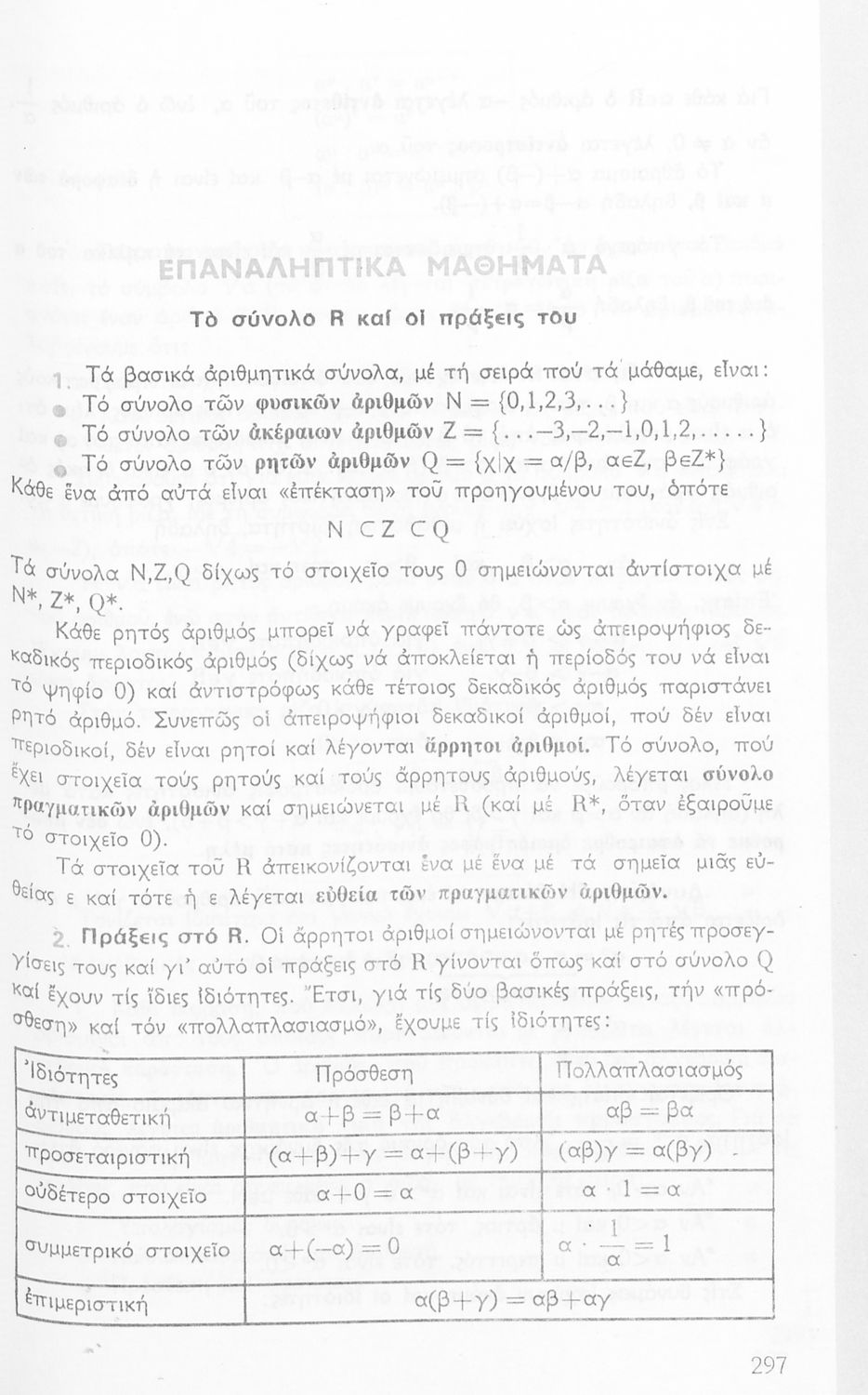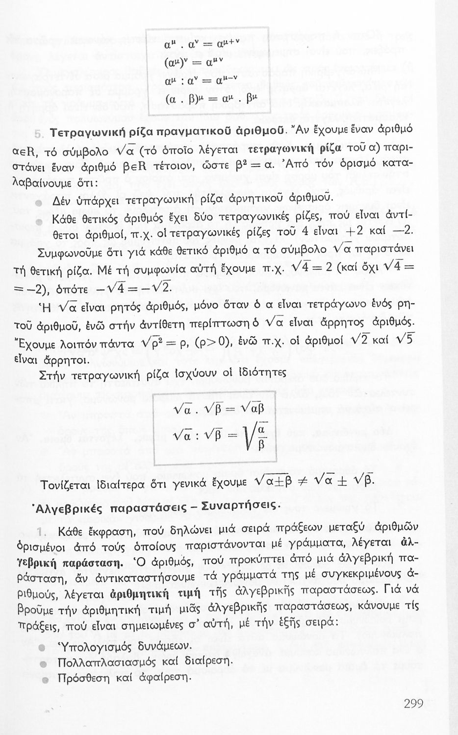 Σχολικό εγχειρίδιο Αριθμητικής για τις Α΄, Β΄, Γ΄ Γυμνασίου που είναι χωρισμένο σε ορισμούς και ασκήσεις και εστιάζει στις ιδιότητες των αριθμητικών πράξεων, τα κλάσματα και την τετραγωνική ρίζα.