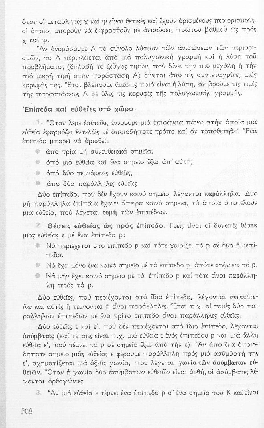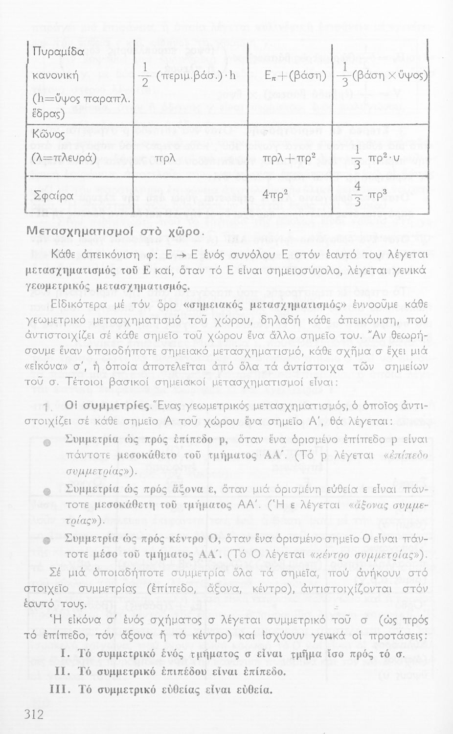 Σχολικό εγχειρίδιο Γεωμετρίας για τις Α΄, Β΄ και Γ΄ Λυκείου που περιλαμβάνει θεωρία και ασκήσεις και είναι χωρισμένο σε Επιπεδομετρία και Στερεομετρία.