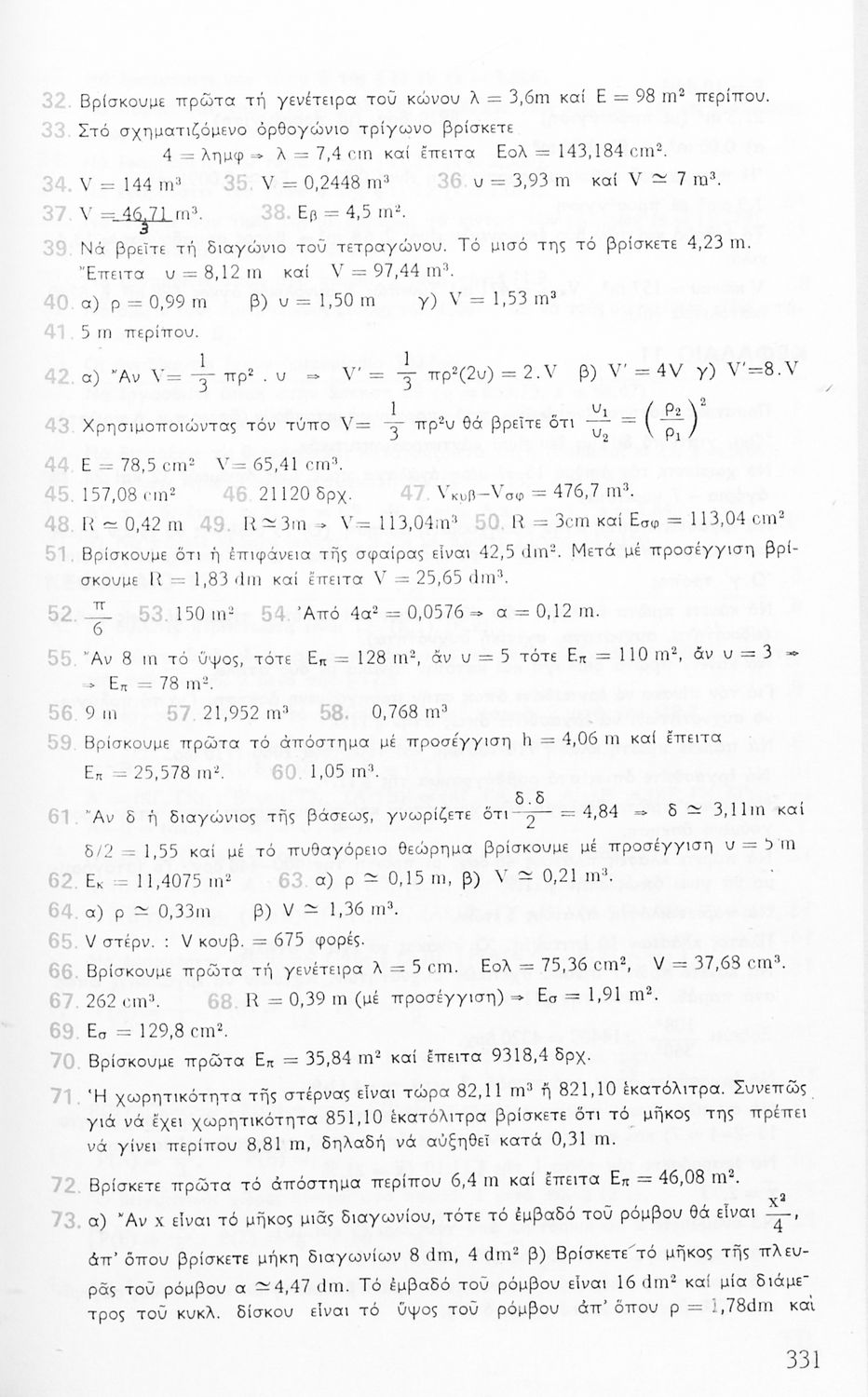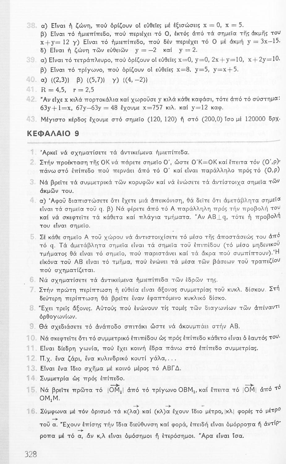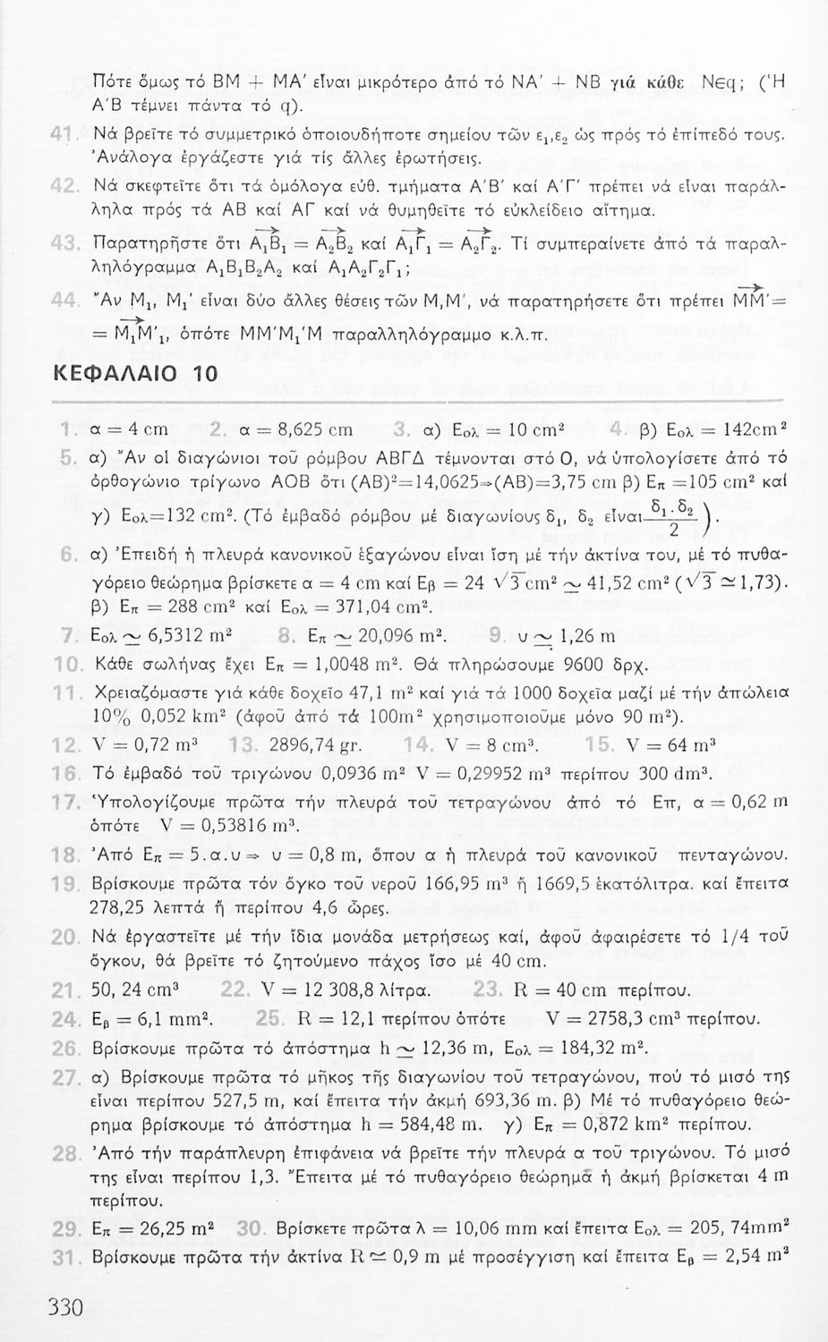 Σχολικό εγχειρίδιο Γεωμετρίας για τις Γ΄, Δ΄, Ε΄, ΣΤ΄ Γυμνασίου που περιλαμβάνει θεωρία και ασκήσεις και είναι χωρισμένο σε Επιπεδομετρία και Στερεομετρία.