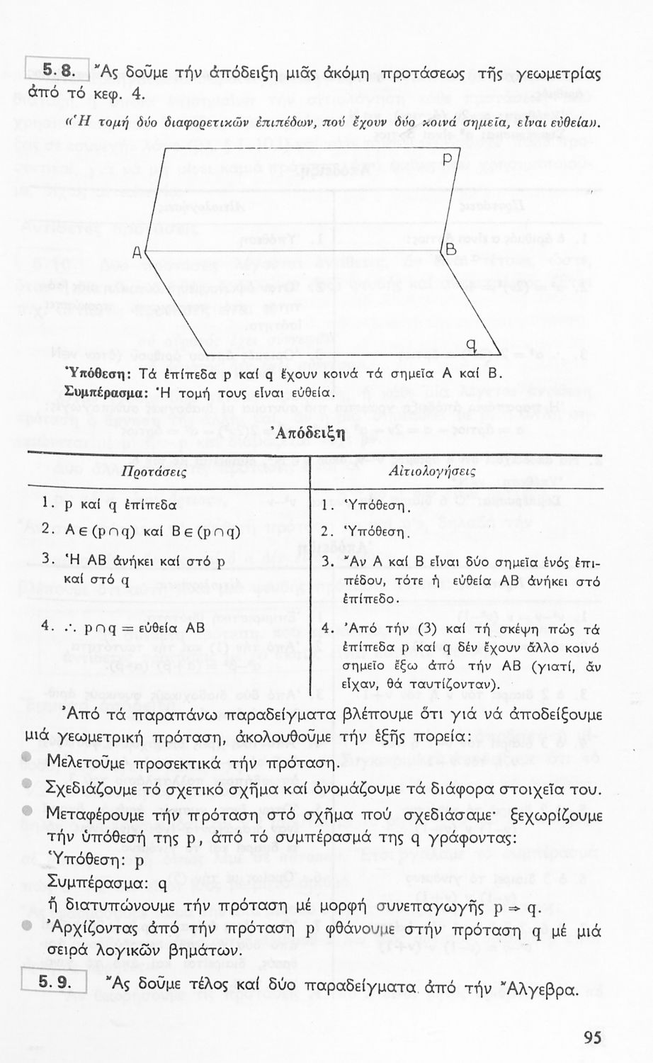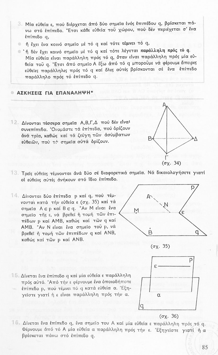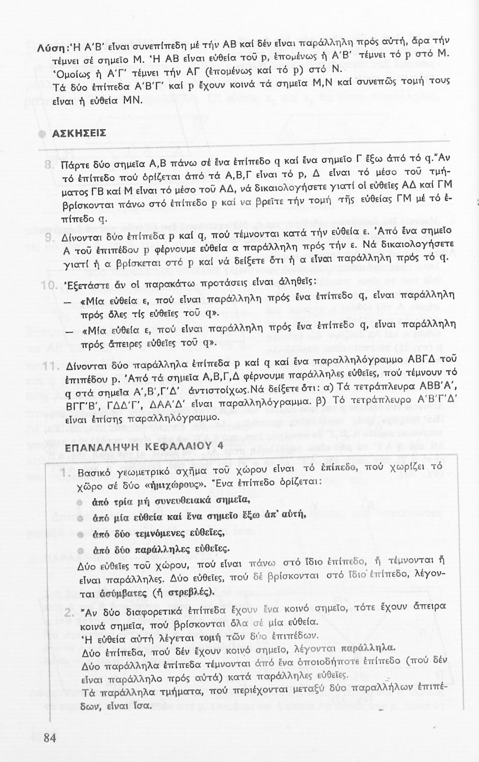 Σχολικό εγχειρίδιο Γεωμετρίας για τις Γ΄, Δ΄, Ε΄, ΣΤ΄ Γυμνασίου που περιλαμβάνει θεωρία και ασκήσεις και είναι χωρισμένο σε Επιπεδομετρία και Στερεομετρία.