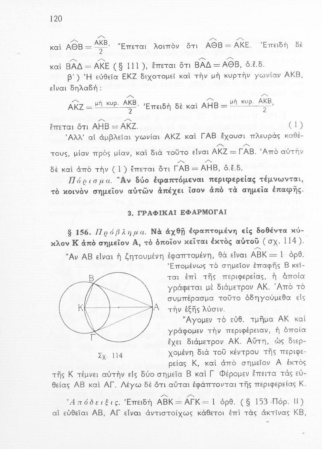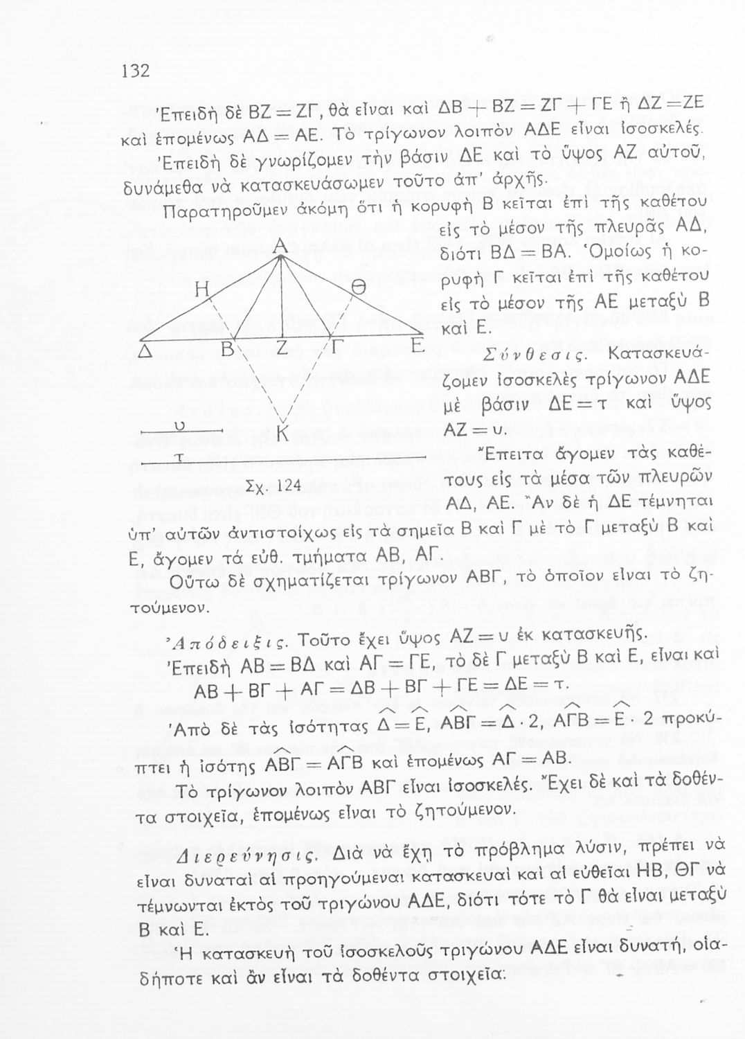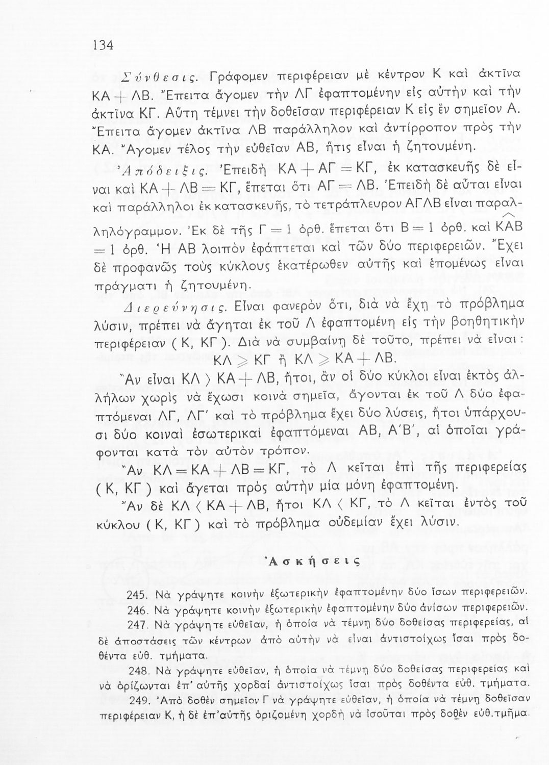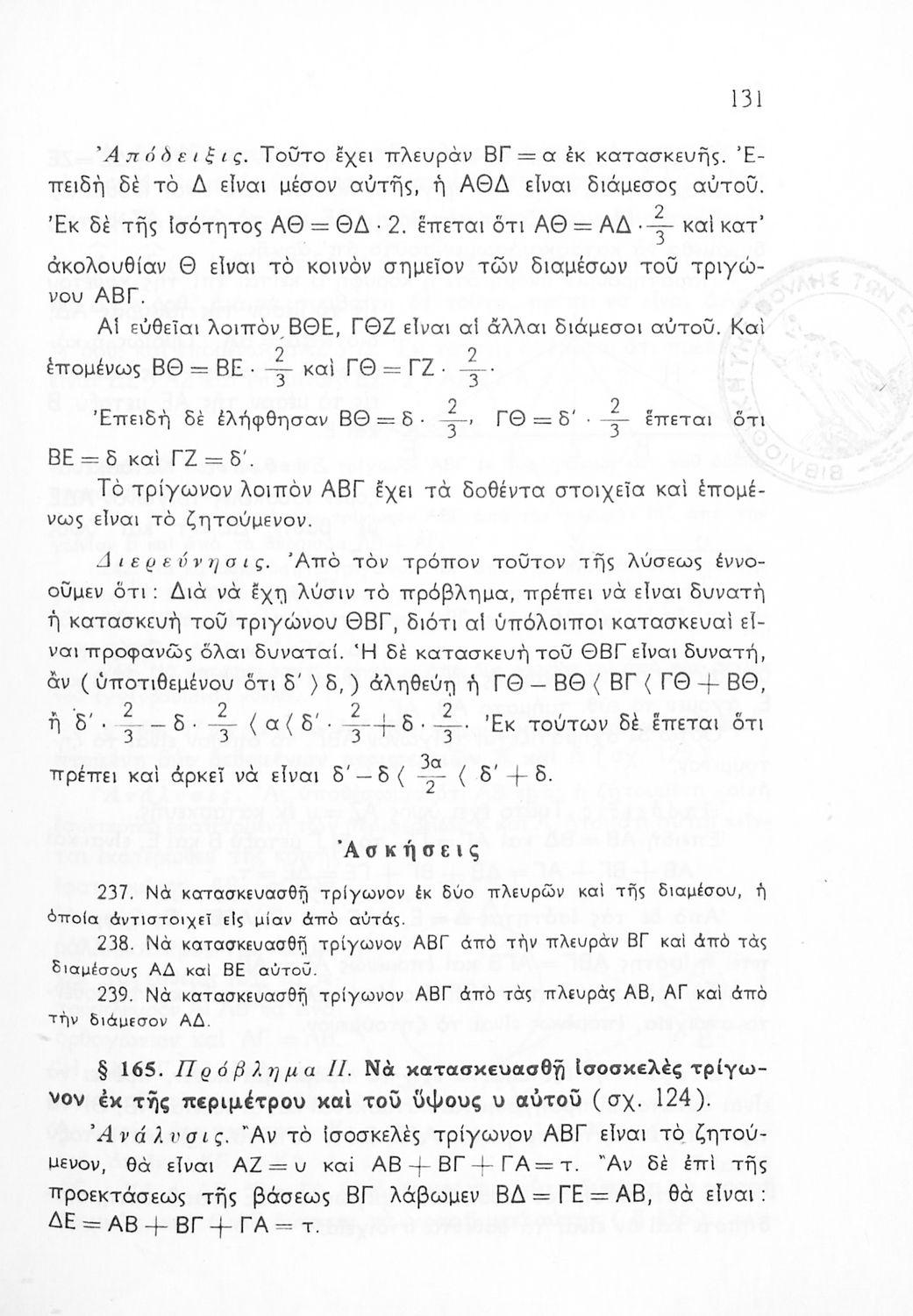 Σχολικό εγχειρίδιο Γεωμετρίας για τις Γ΄, Δ΄, Ε΄, ΣΤ΄ Γυμνασίου που εστιάζει στα βασικά θεωρήματα και ιδιότητες των γεωμετρικών σχημάτων. Φέρει το σύμβολο της δικτατορίας.