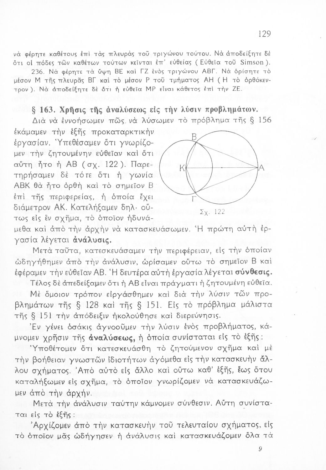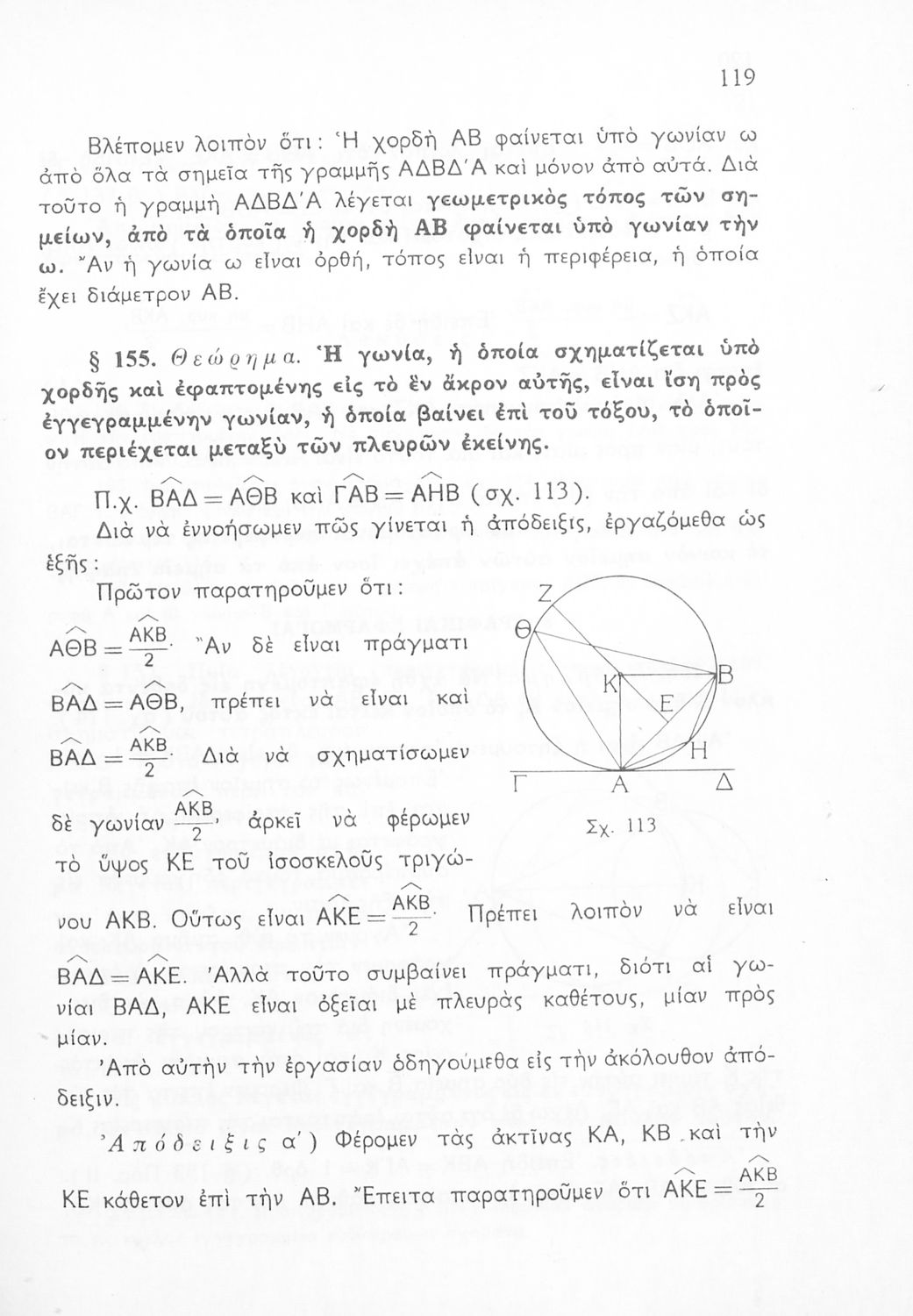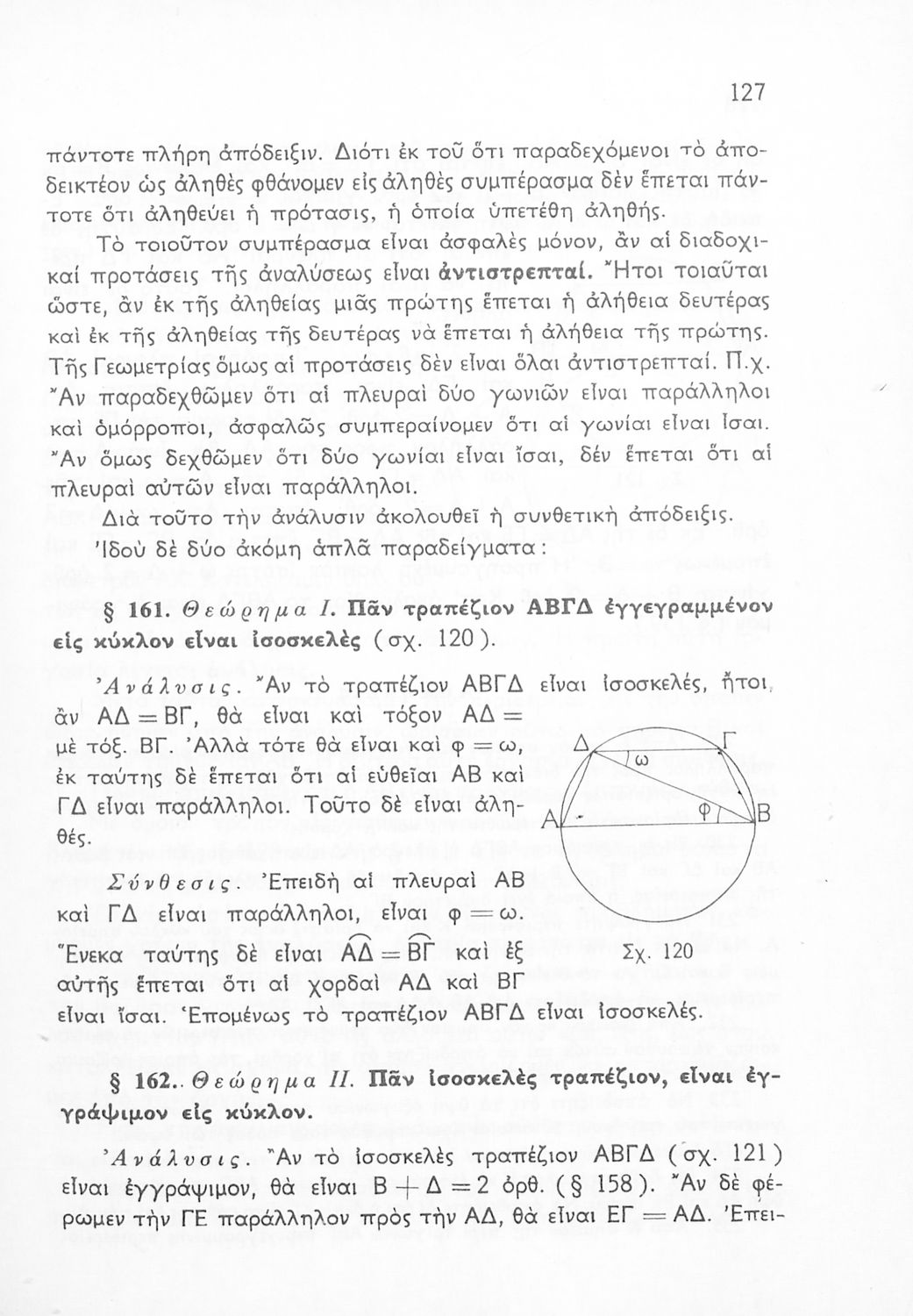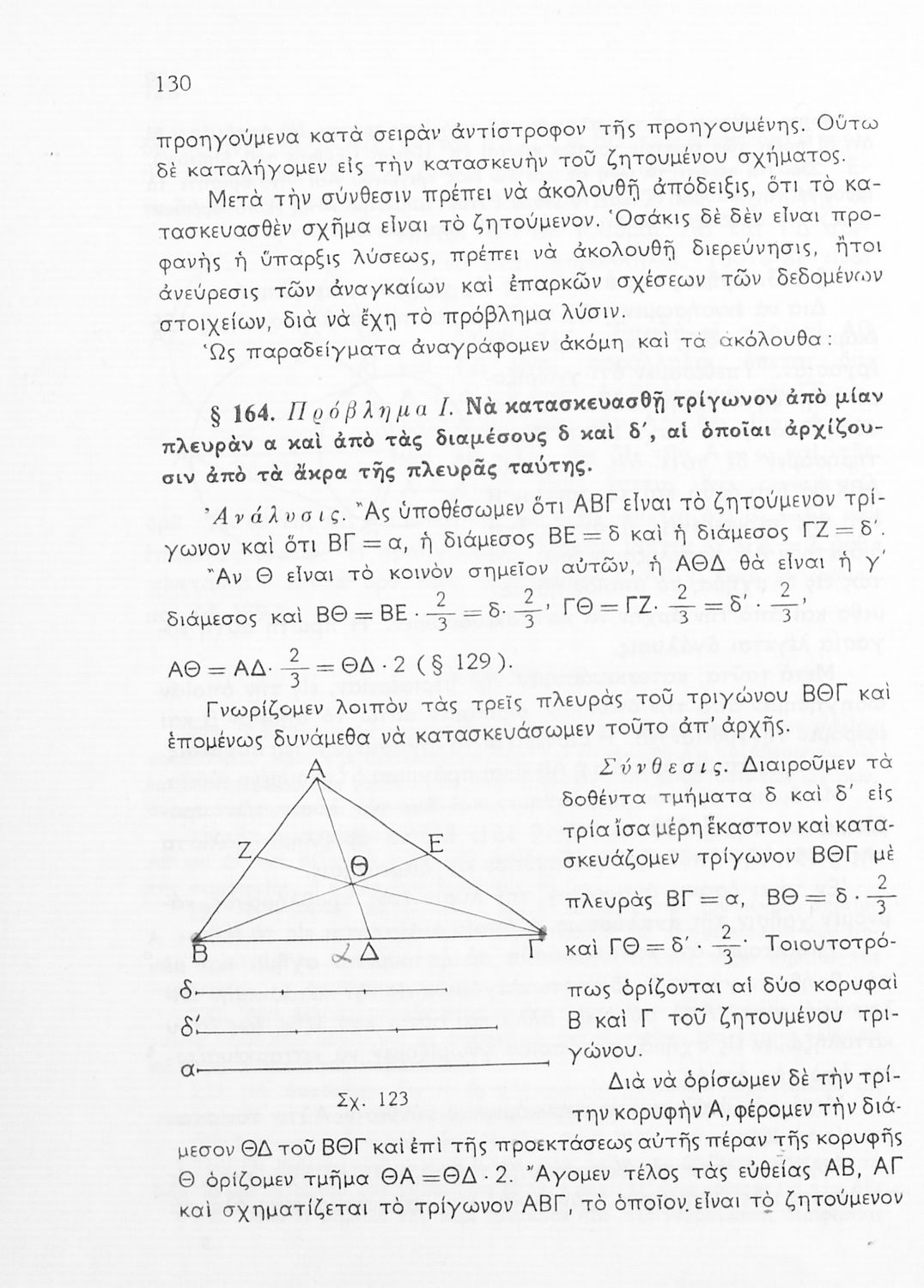 Σχολικό εγχειρίδιο Γεωμετρίας για τις Γ΄, Δ΄, Ε΄, ΣΤ΄ Γυμνασίου που εστιάζει στα βασικά θεωρήματα και ιδιότητες των γεωμετρικών σχημάτων. Φέρει το σύμβολο της δικτατορίας.