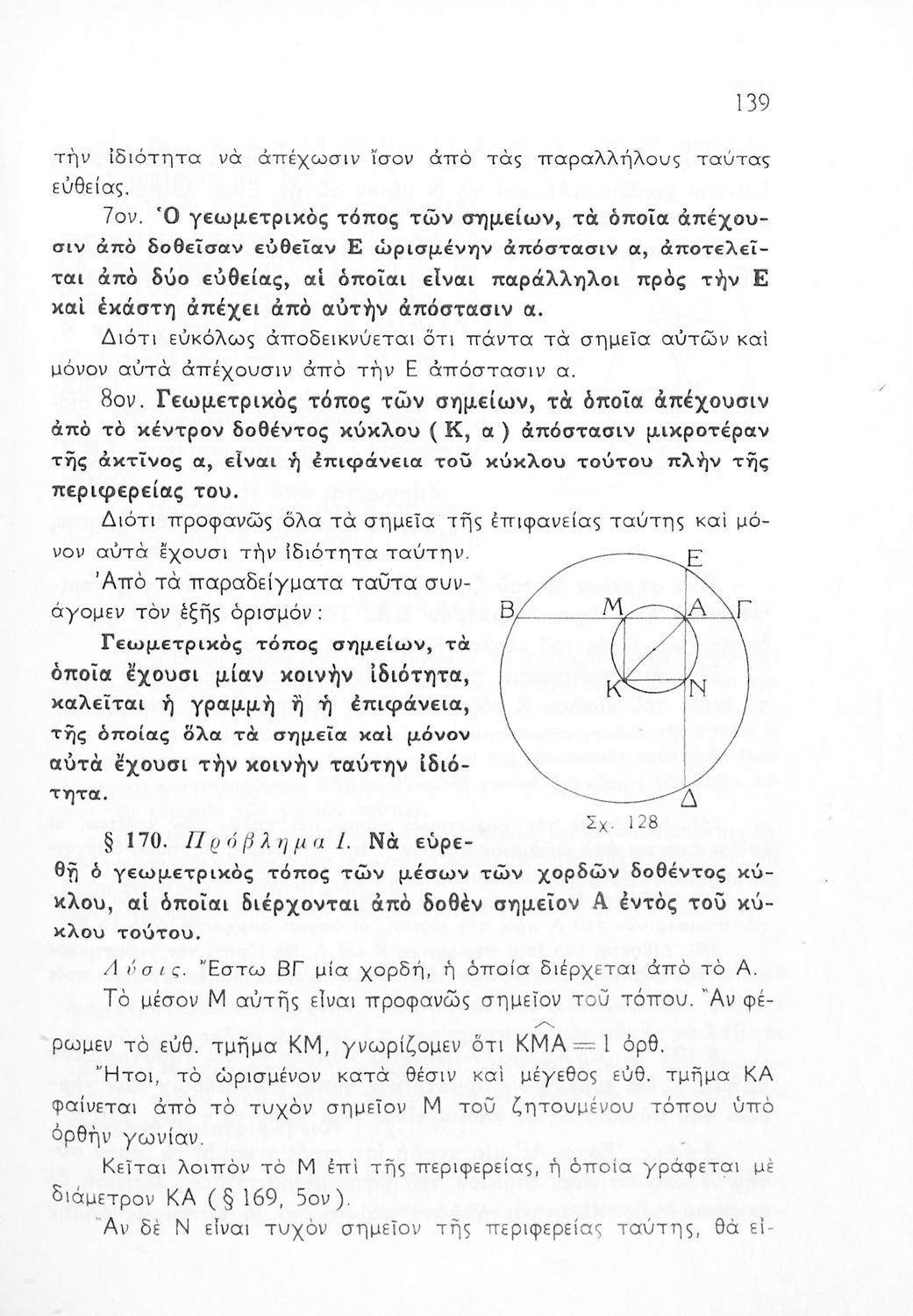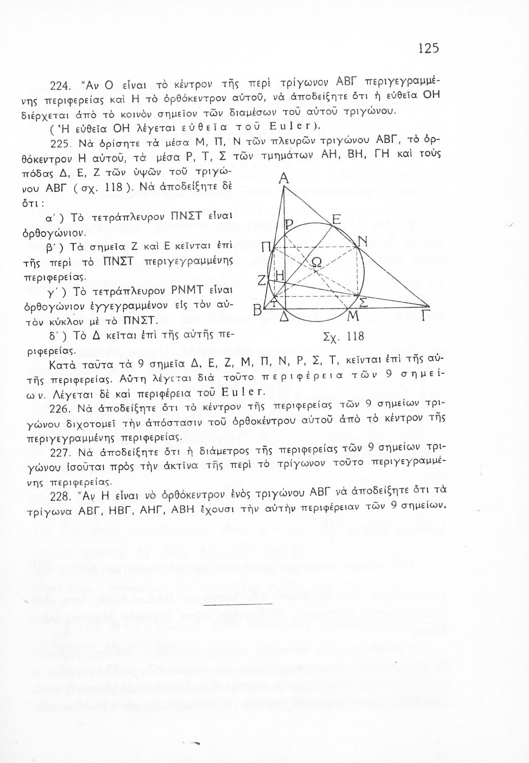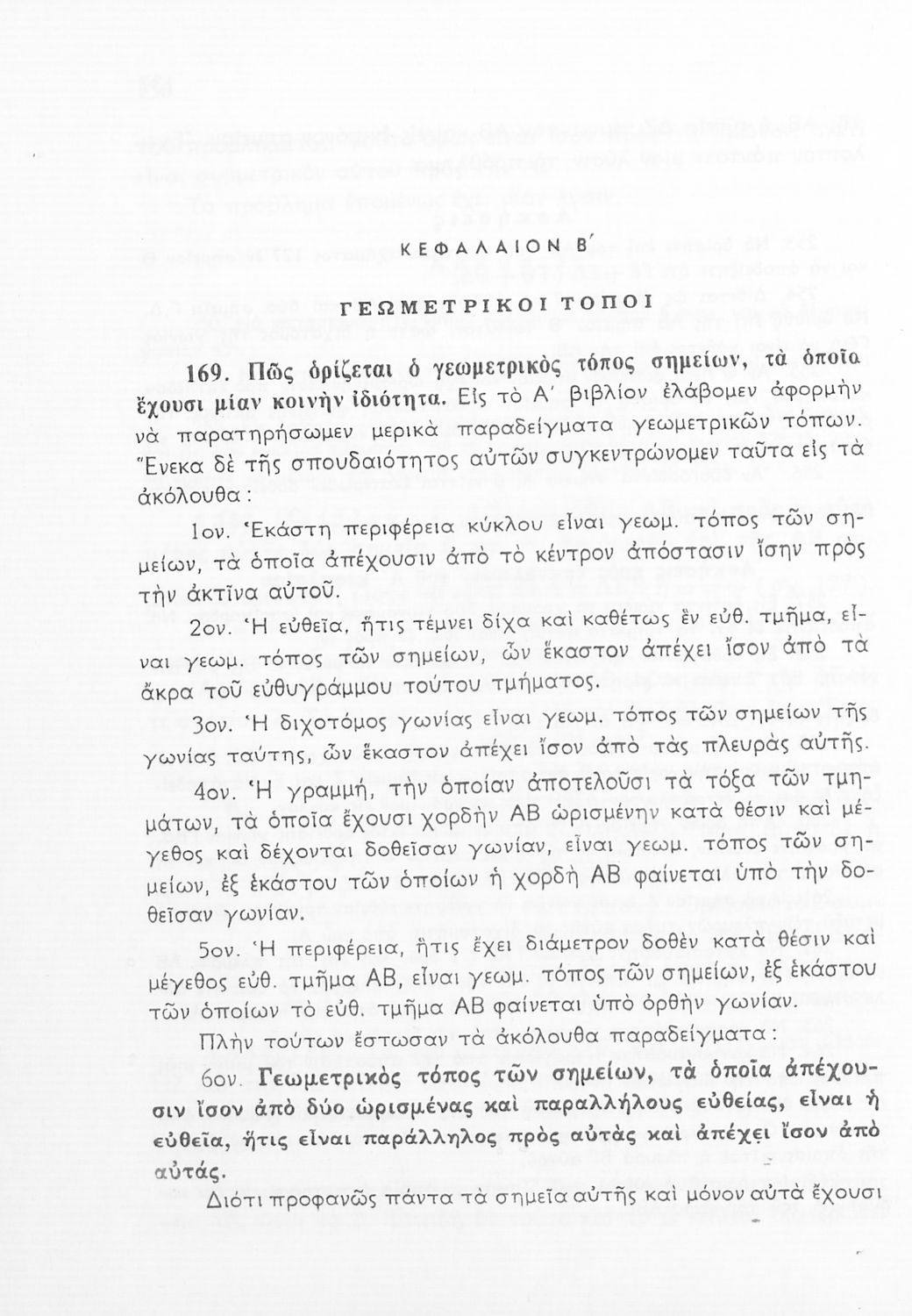 Σχολικό εγχειρίδιο Γεωμετρίας για τις Γ΄, Δ΄, Ε΄, ΣΤ΄ Γυμνασίου που περιλαμβάνει θεωρία και ασκήσεις και είναι χωρισμένο σε Επιπεδομετρία και Στερεομετρία. Φέρει το σύμβολο της δικτατορίας.