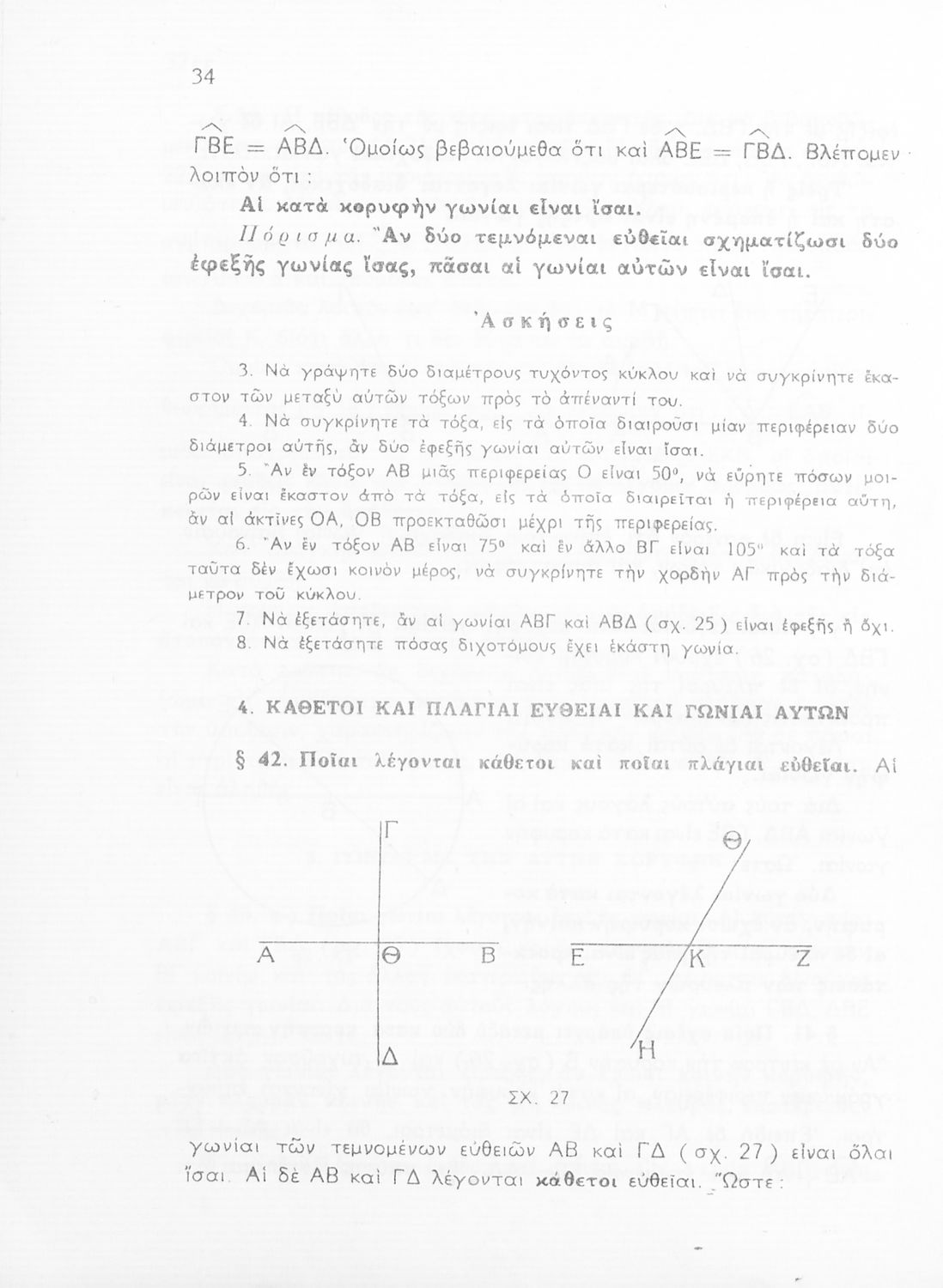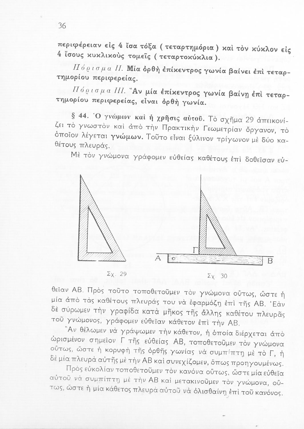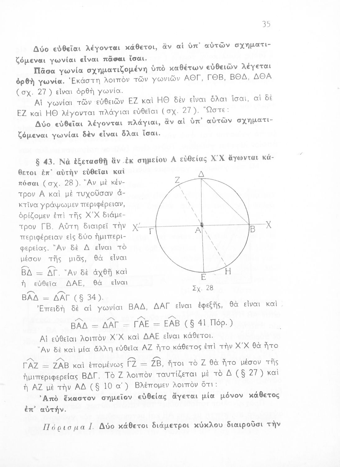 Σχολικό εγχειρίδιο Γεωμετρίας για τις Γ΄, Δ΄, Ε΄, ΣΤ΄ Γυμνασίου που εστιάζει στα βασικά θεωρήματα και ιδιότητες των γεωμετρικών σχημάτων. Φέρει το σύμβολο της δικτατορίας.