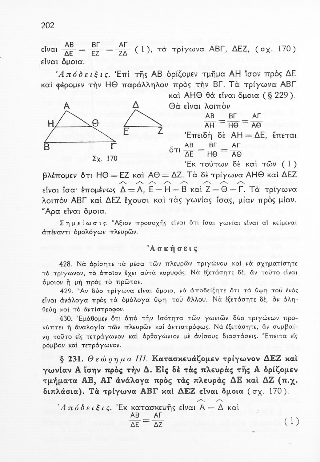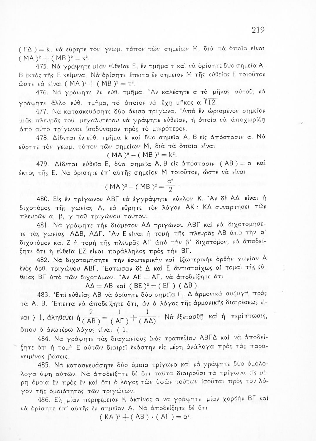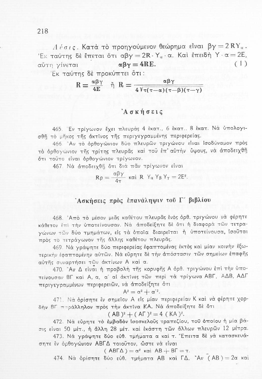 Σχολικό εγχειρίδιο Γεωμετρίας για τις Γ΄, Δ΄, Ε΄, ΣΤ΄ Γυμνασίου που περιλαμβάνει θεωρία και ασκήσεις και είναι χωρισμένο σε Επιπεδομετρία και Στερεομετρία.