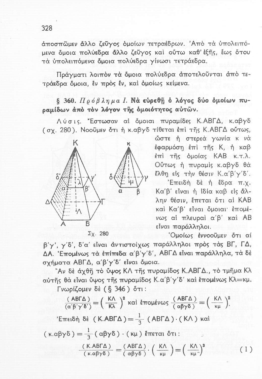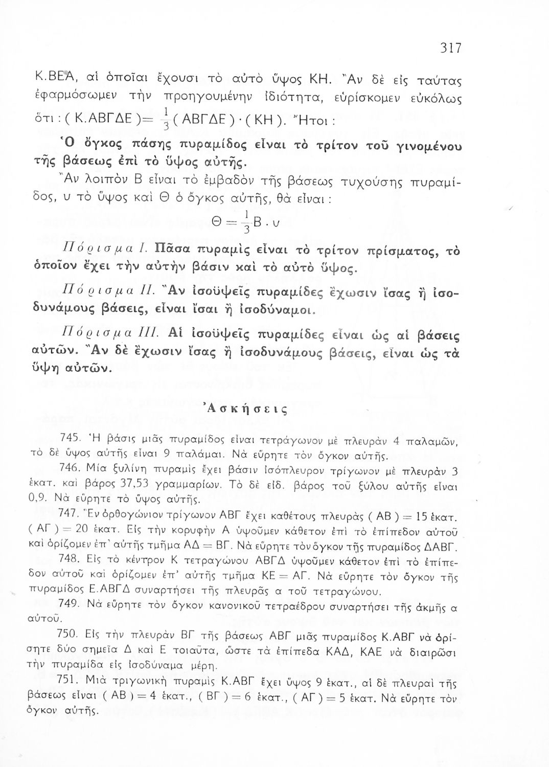 Σχολικό εγχειρίδιο Γεωμετρίας για τις Γ΄, Δ΄, Ε΄, ΣΤ΄ Γυμνασίου που περιλαμβάνει θεωρία και ασκήσεις και είναι χωρισμένο σε Επιπεδομετρία και Στερεομετρία.