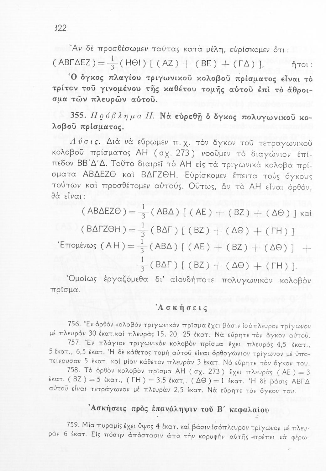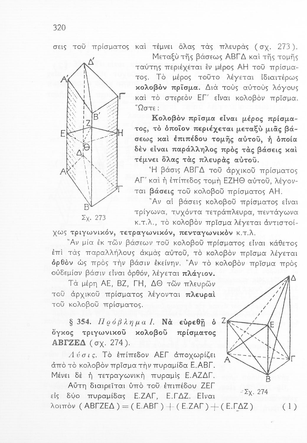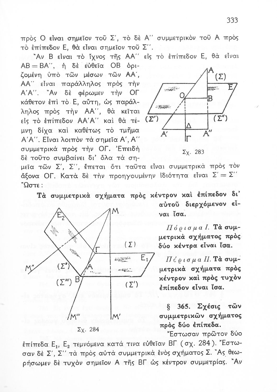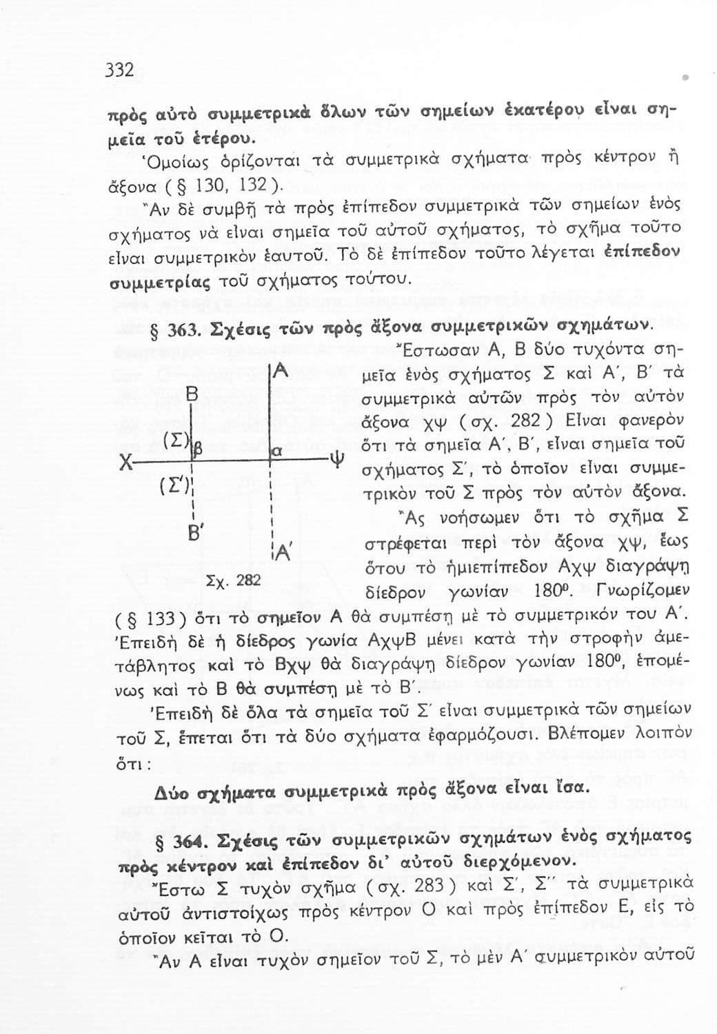 Σχολικό εγχειρίδιο Γεωμετρίας για τις Γ΄, Δ΄, Ε΄, ΣΤ΄ Γυμνασίου που περιλαμβάνει θεωρία και ασκήσεις και είναι χωρισμένο σε Επιπεδομετρία και Στερεομετρία. Φέρει το σύμβολο της δικτατορίας.