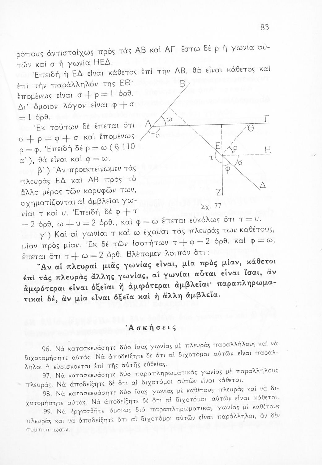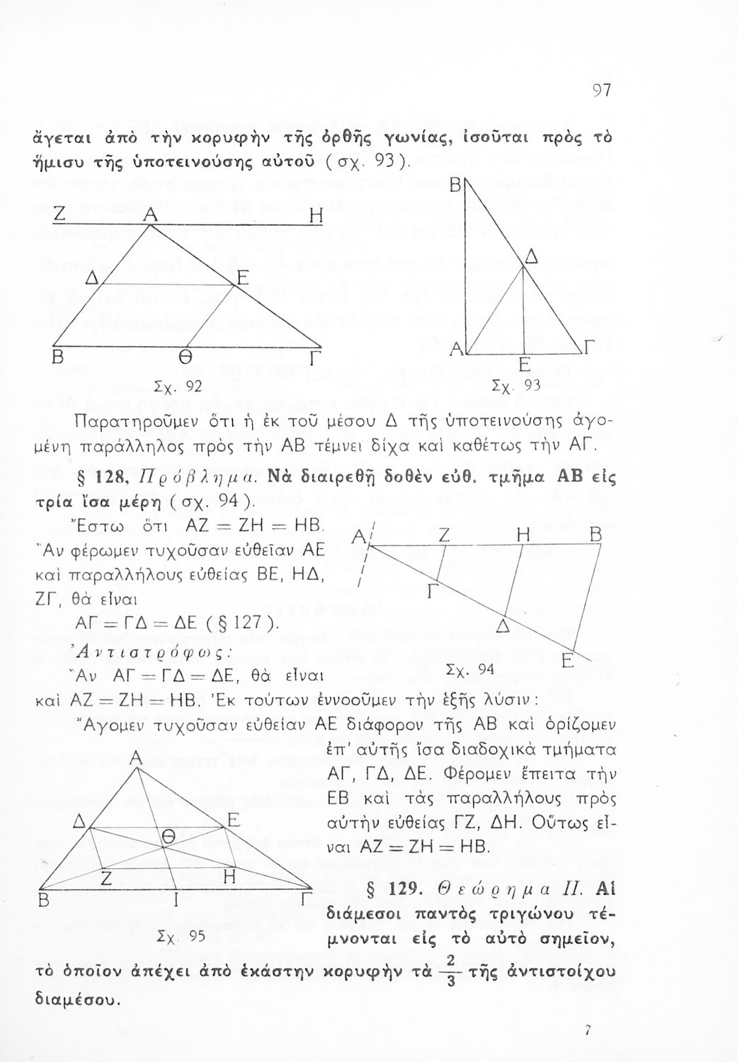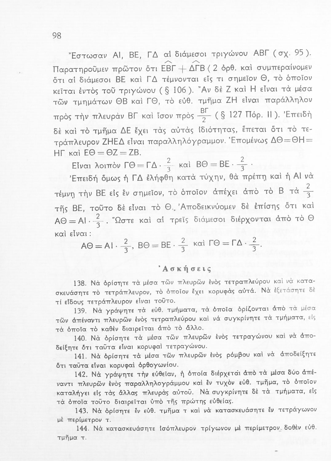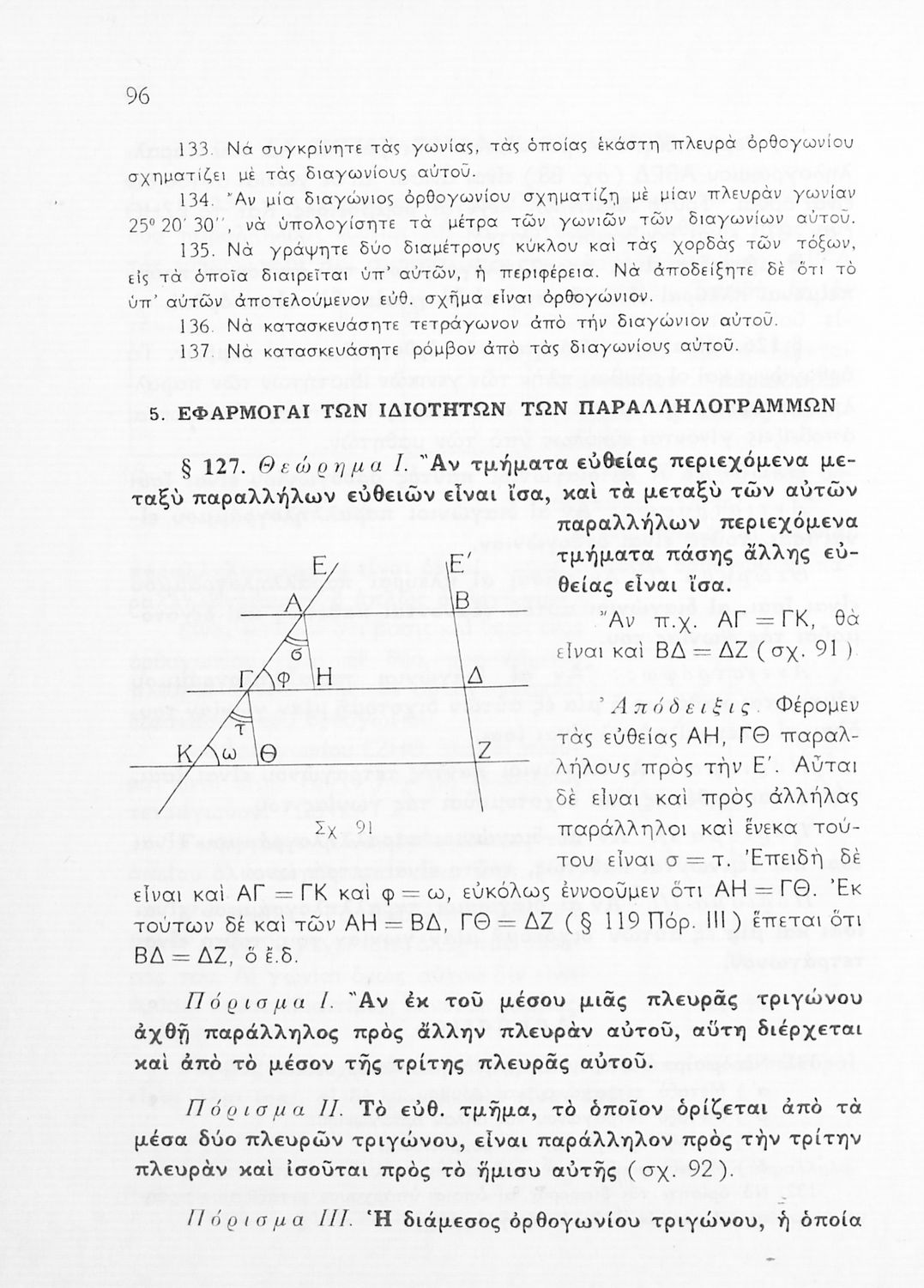 Σχολικό εγχειρίδιο Γεωμετρίας για τις Γ΄, Δ΄, Ε΄, ΣΤ΄ Γυμνασίου που εστιάζει στα βασικά θεωρήματα και ιδιότητες των γεωμετρικών σχημάτων. Φέρει το σύμβολο της δικτατορίας.