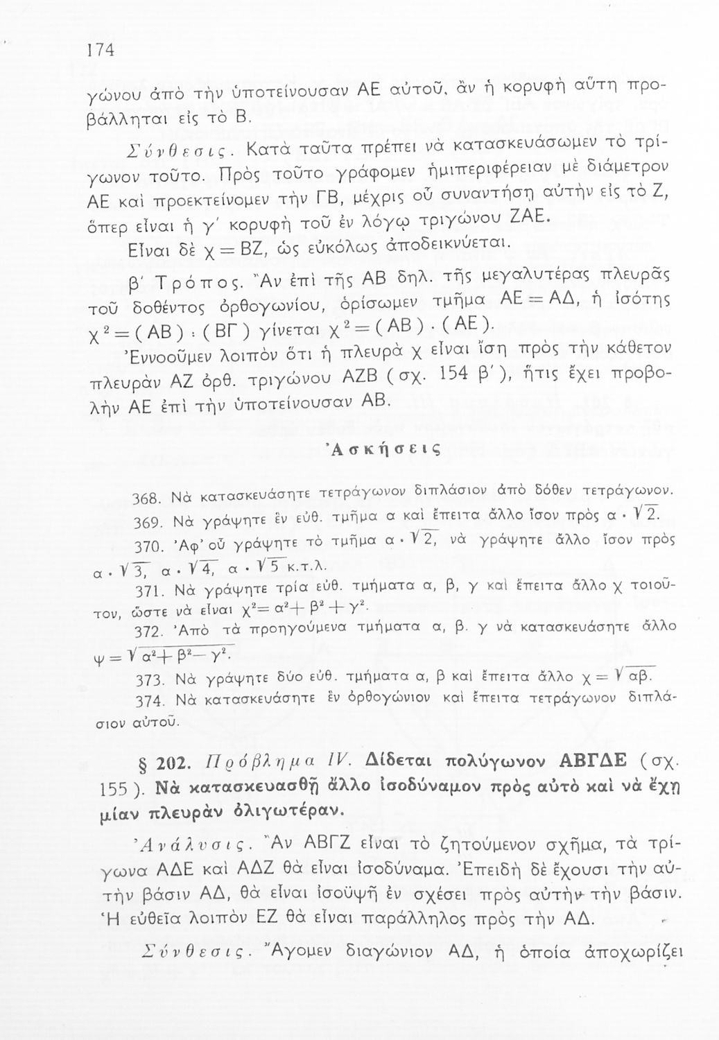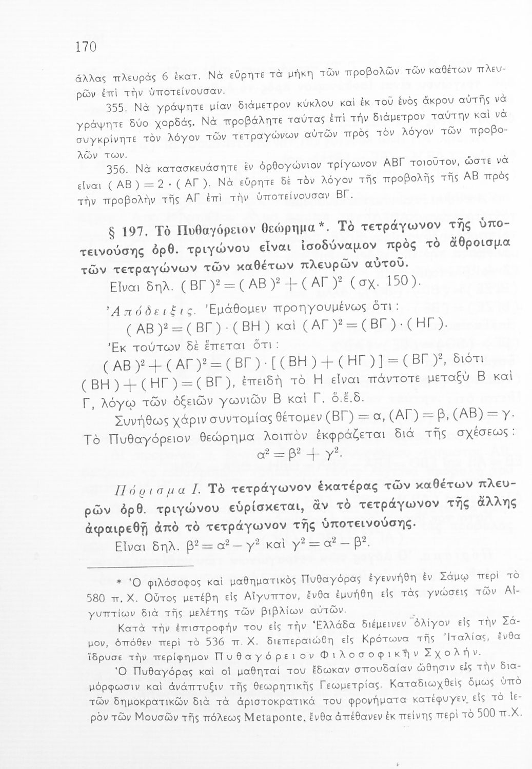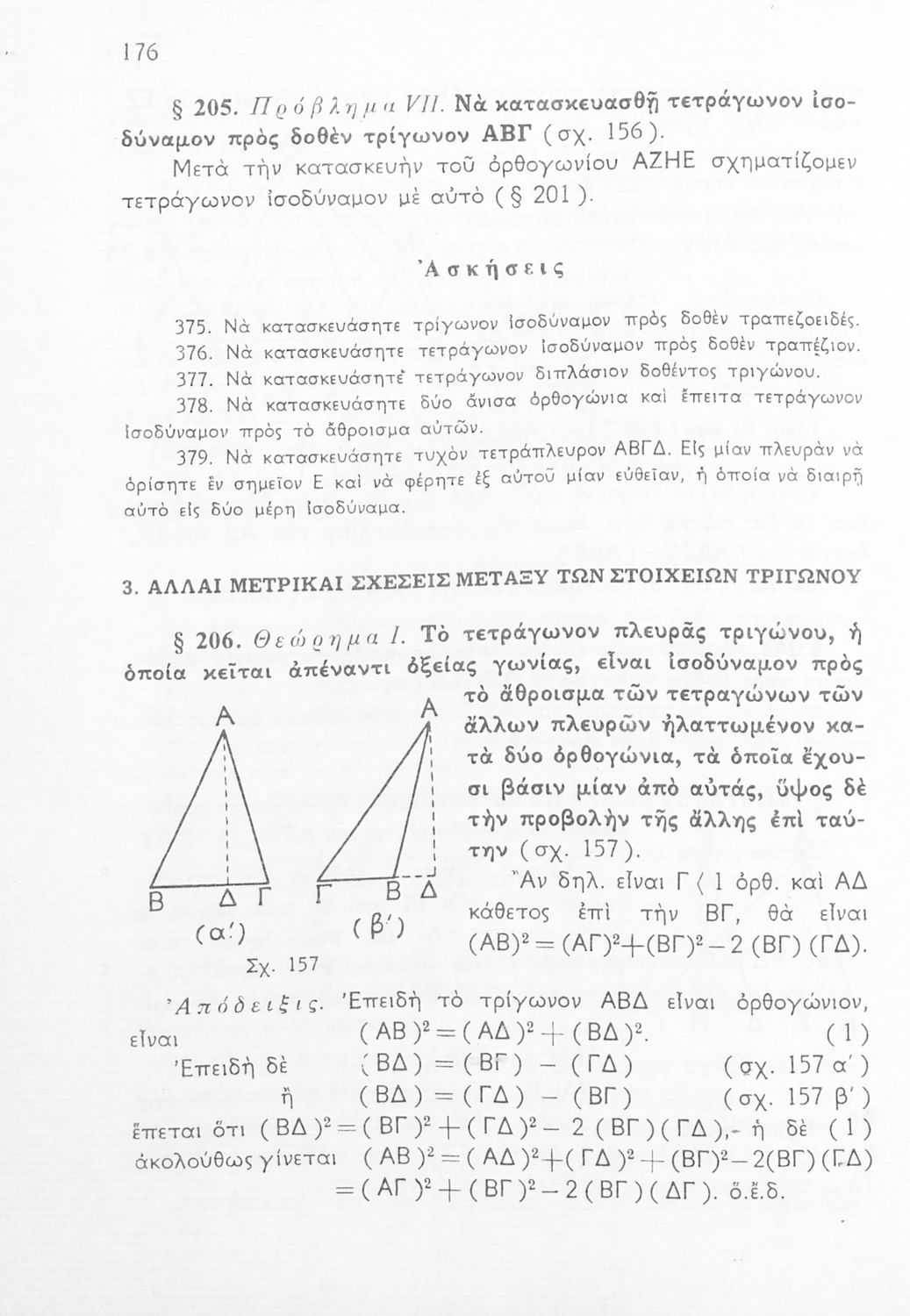 Σχολικό εγχειρίδιο Γεωμετρίας για τις Γ΄, Δ΄, Ε΄, ΣΤ΄ Γυμνασίου που εστιάζει στα βασικά θεωρήματα και ιδιότητες των γεωμετρικών σχημάτων. Φέρει το σύμβολο της δικτατορίας.