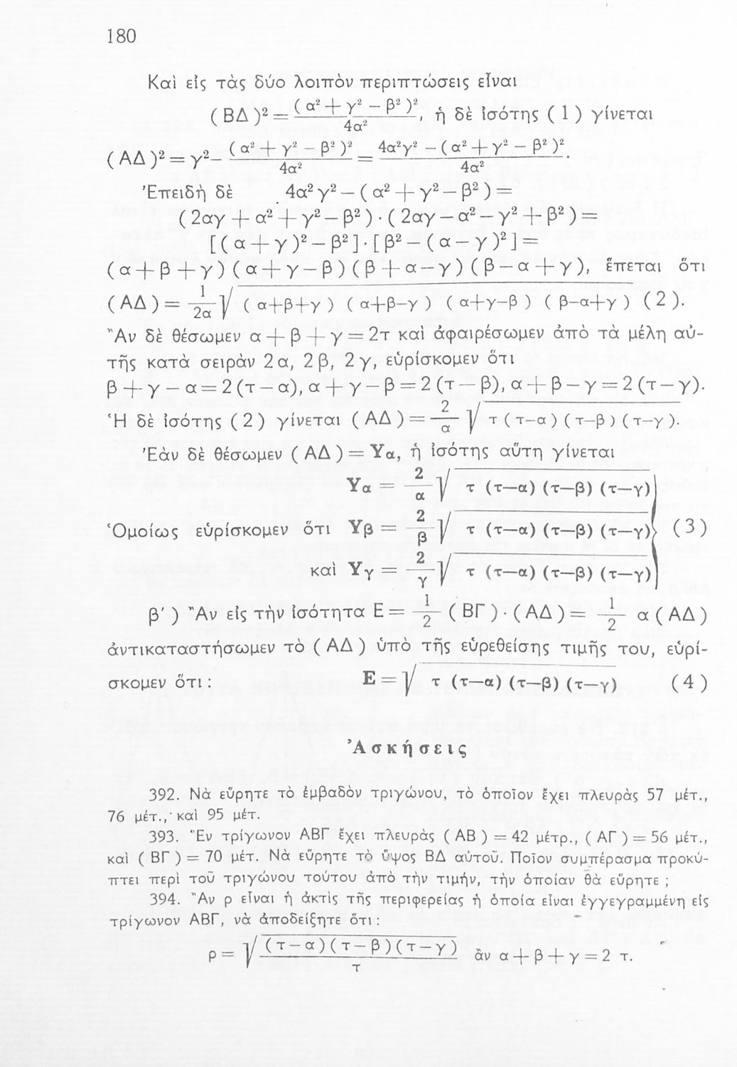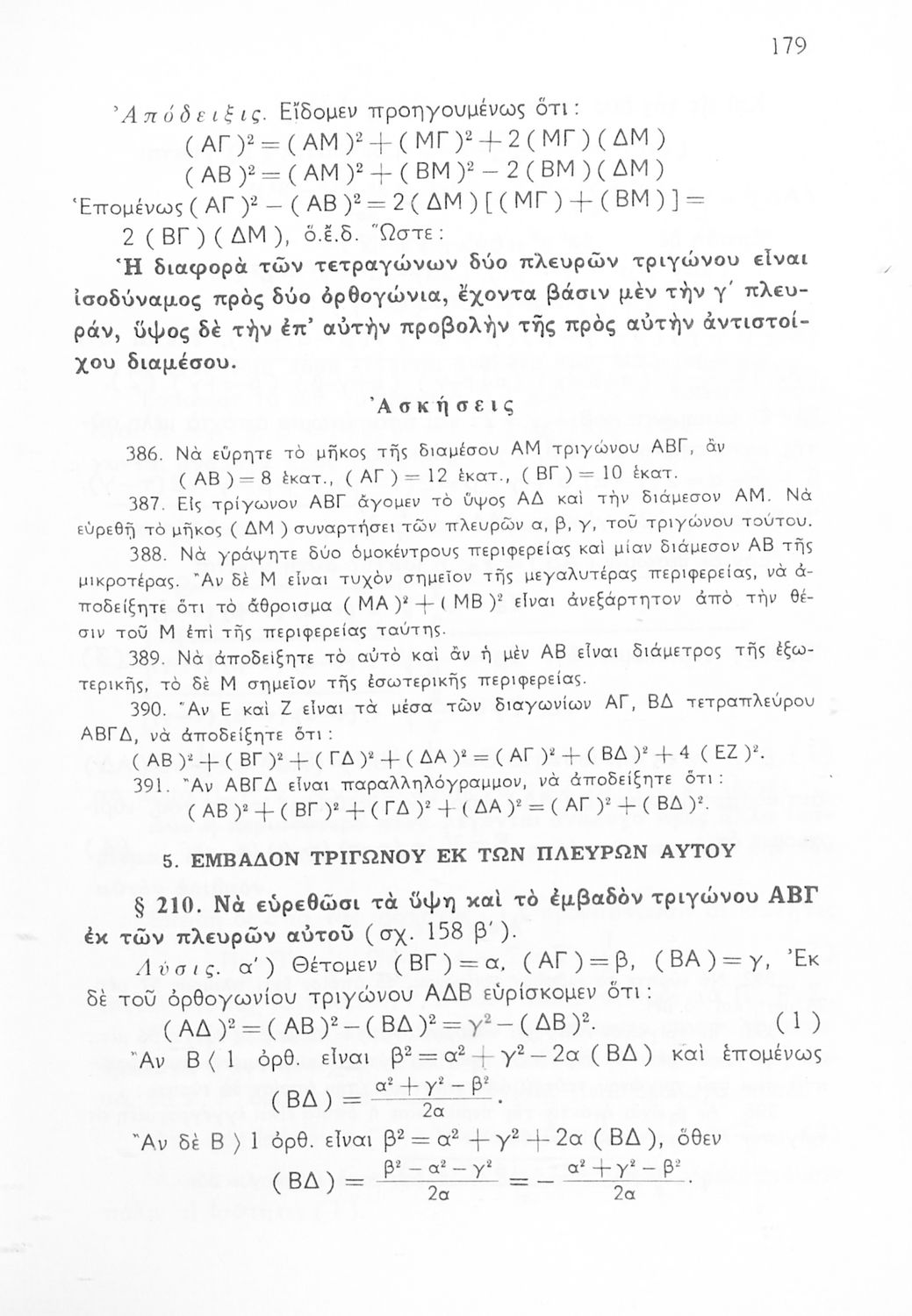 Σχολικό εγχειρίδιο Γεωμετρίας για τις Γ΄, Δ΄, Ε΄, ΣΤ΄ Γυμνασίου που περιλαμβάνει θεωρία και ασκήσεις και είναι χωρισμένο σε Επιπεδομετρία και Στερεομετρία.