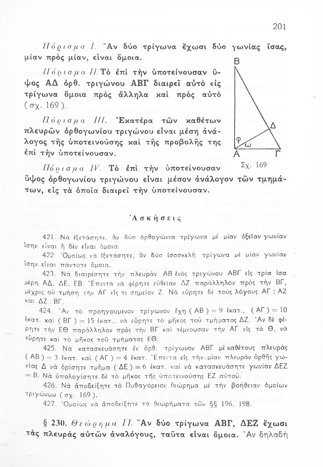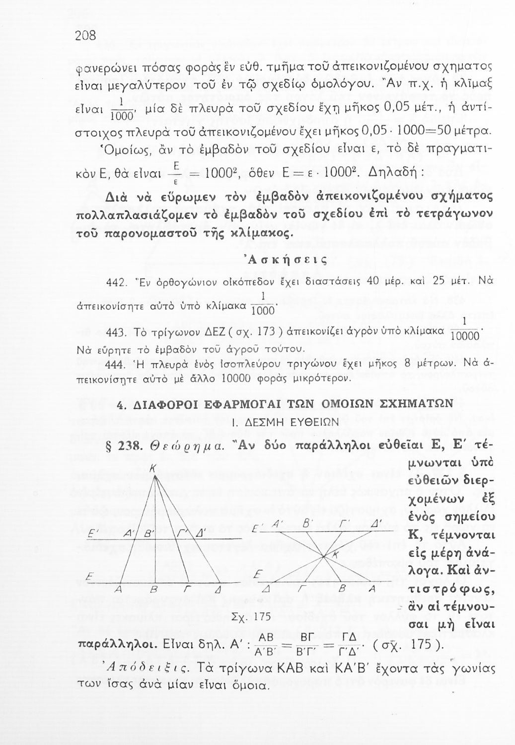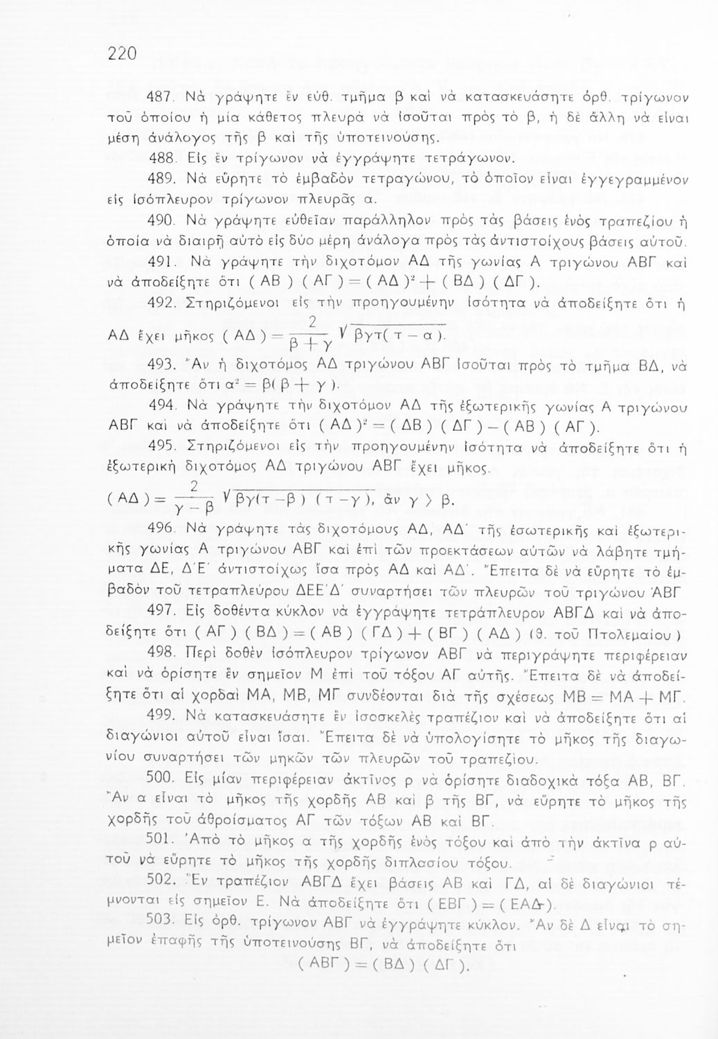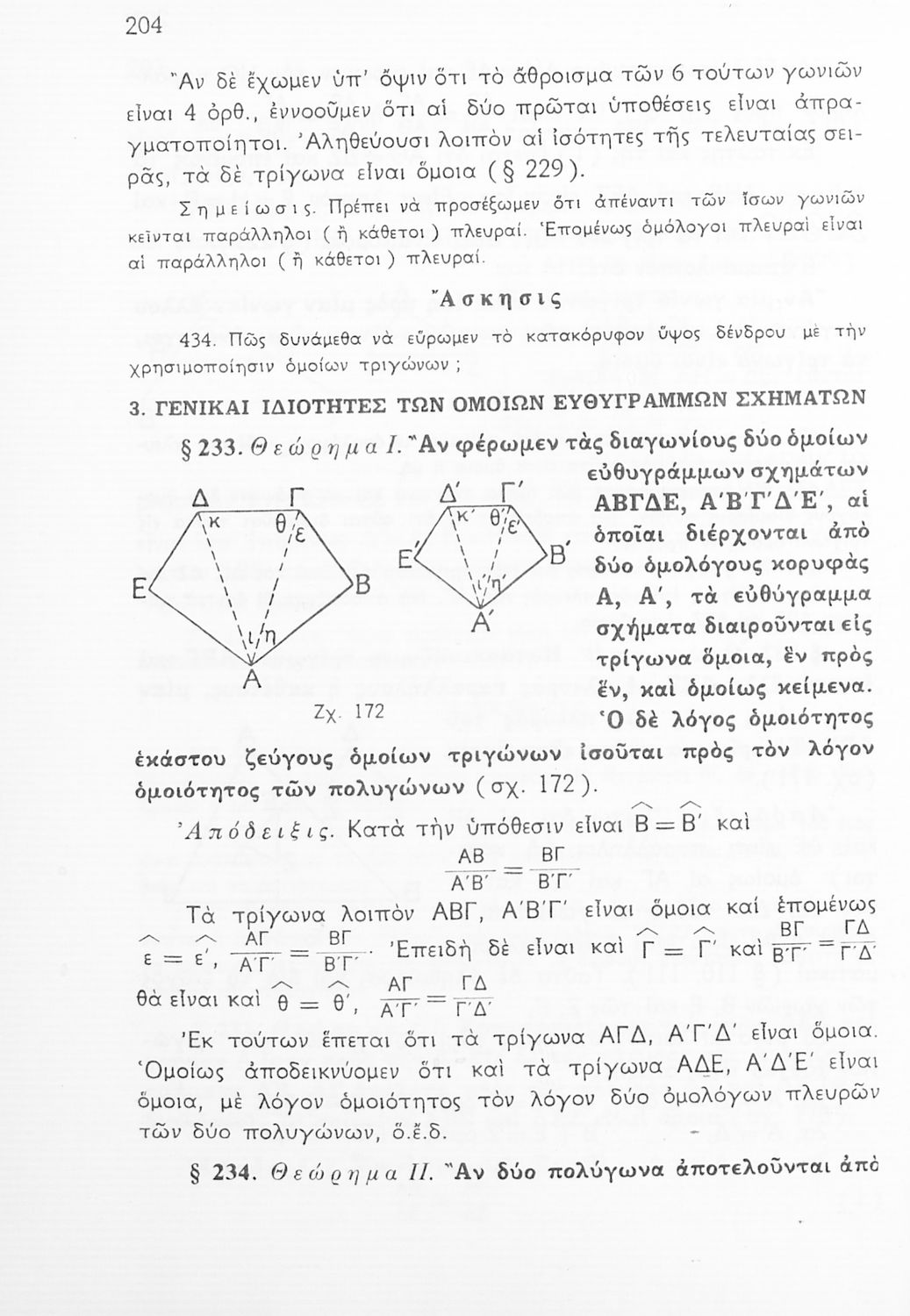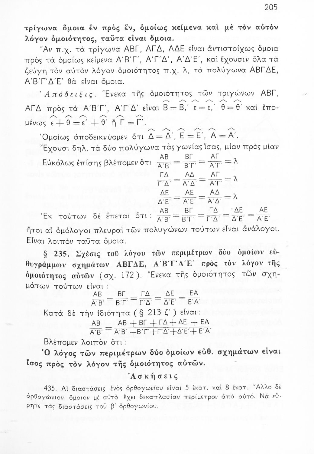 Σχολικό εγχειρίδιο Γεωμετρίας για τις Γ΄, Δ΄, Ε΄, ΣΤ΄ Γυμνασίου που περιλαμβάνει θεωρία και ασκήσεις και είναι χωρισμένο σε Επιπεδομετρία και Στερεομετρία.