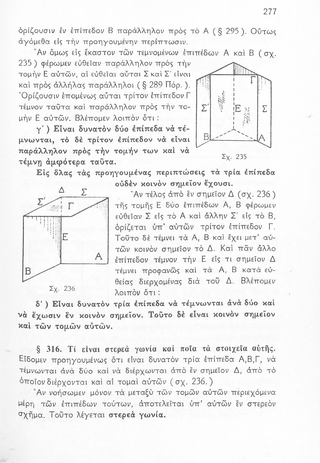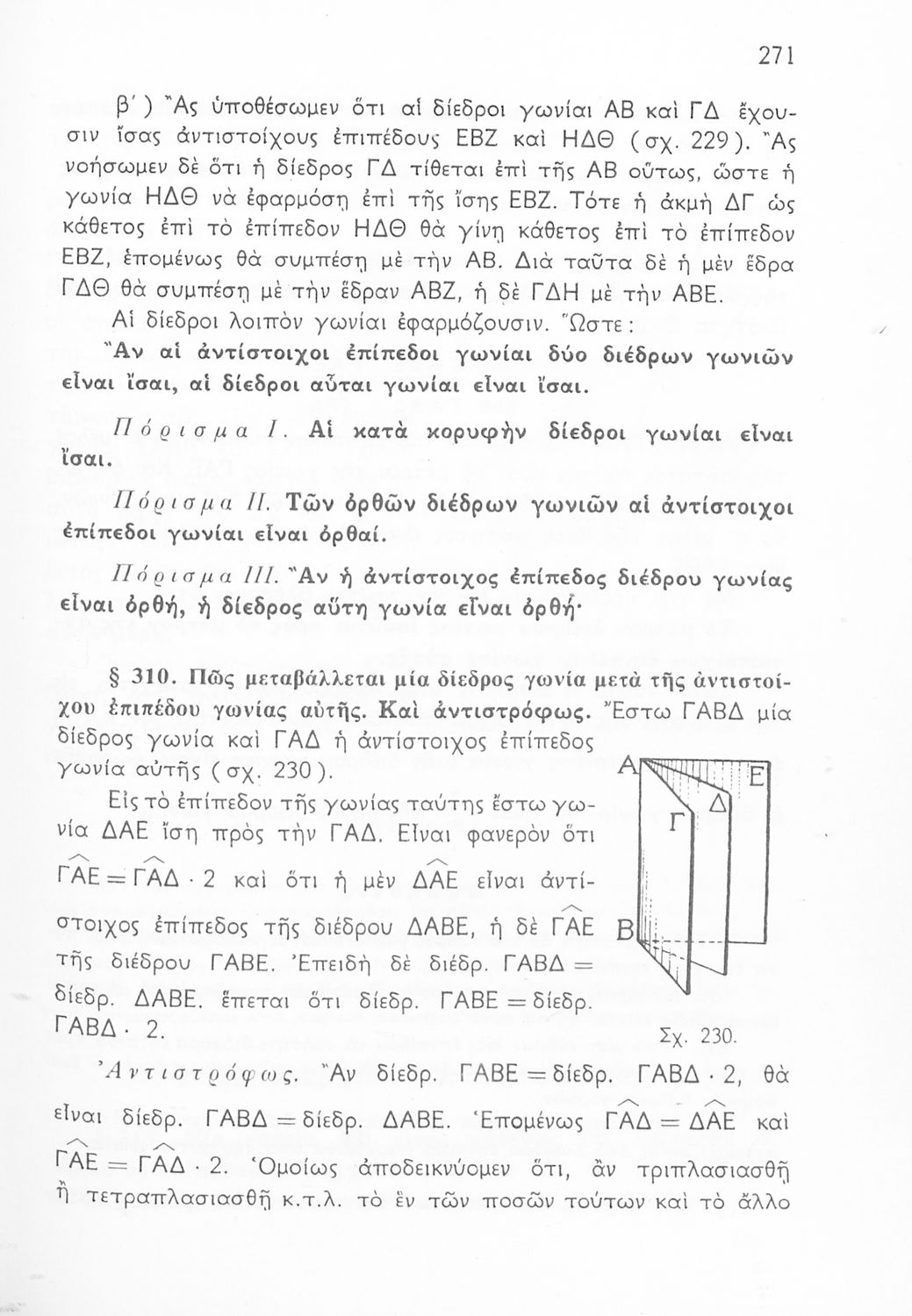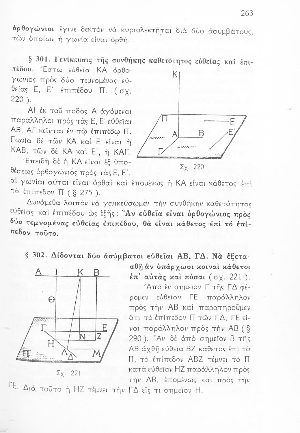 Σχολικό εγχειρίδιο Γεωμετρίας για τις Γ΄, Δ΄, Ε΄, ΣΤ΄ Γυμνασίου που περιλαμβάνει θεωρία και ασκήσεις και είναι χωρισμένο σε Επιπεδομετρία και Στερεομετρία.