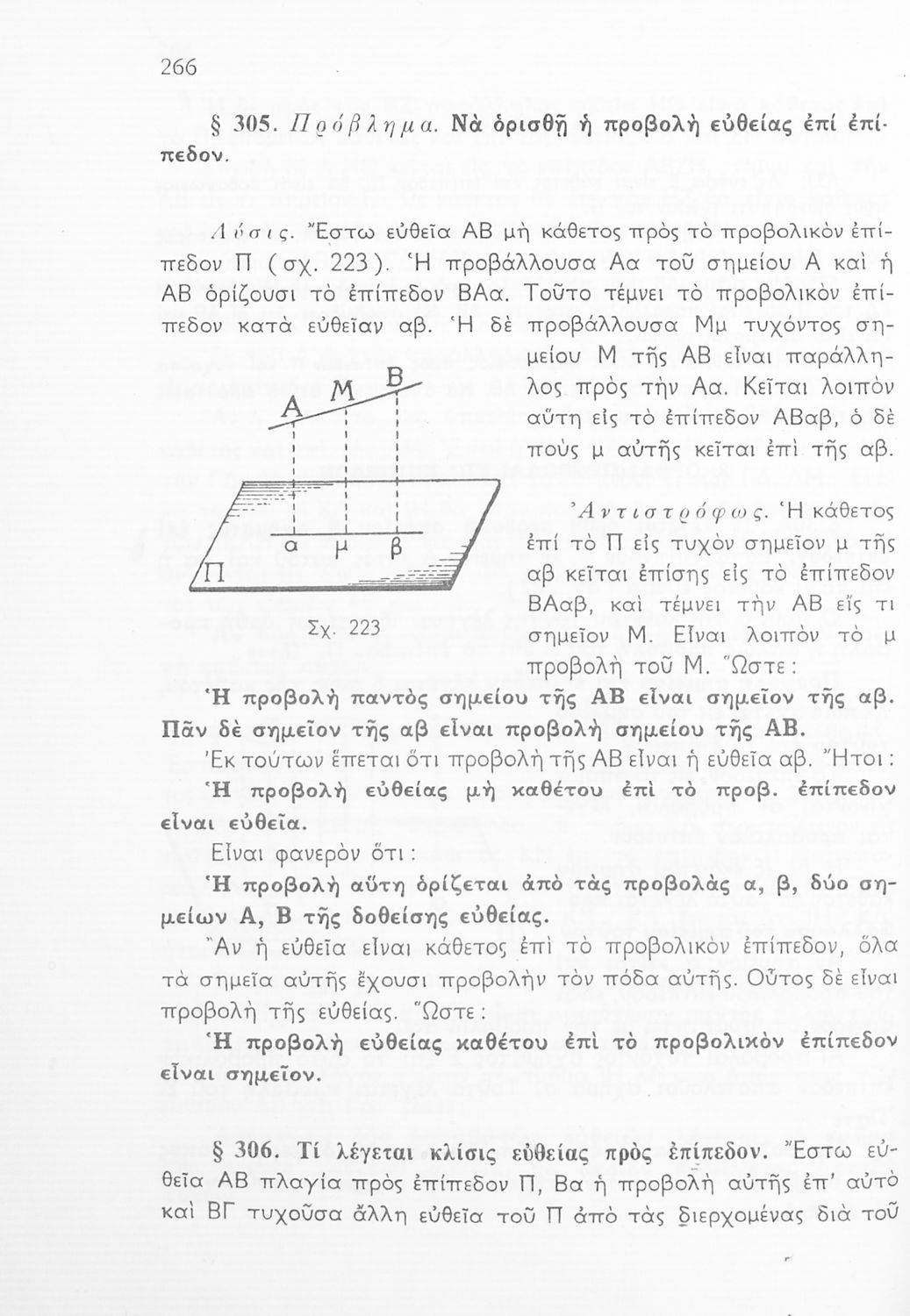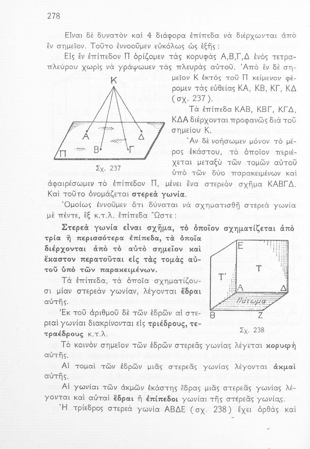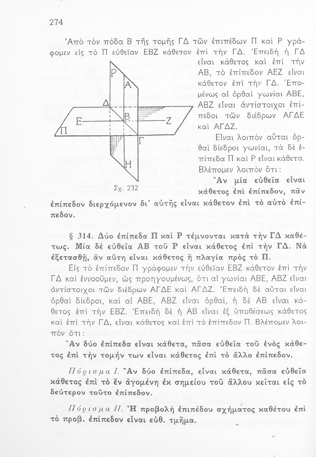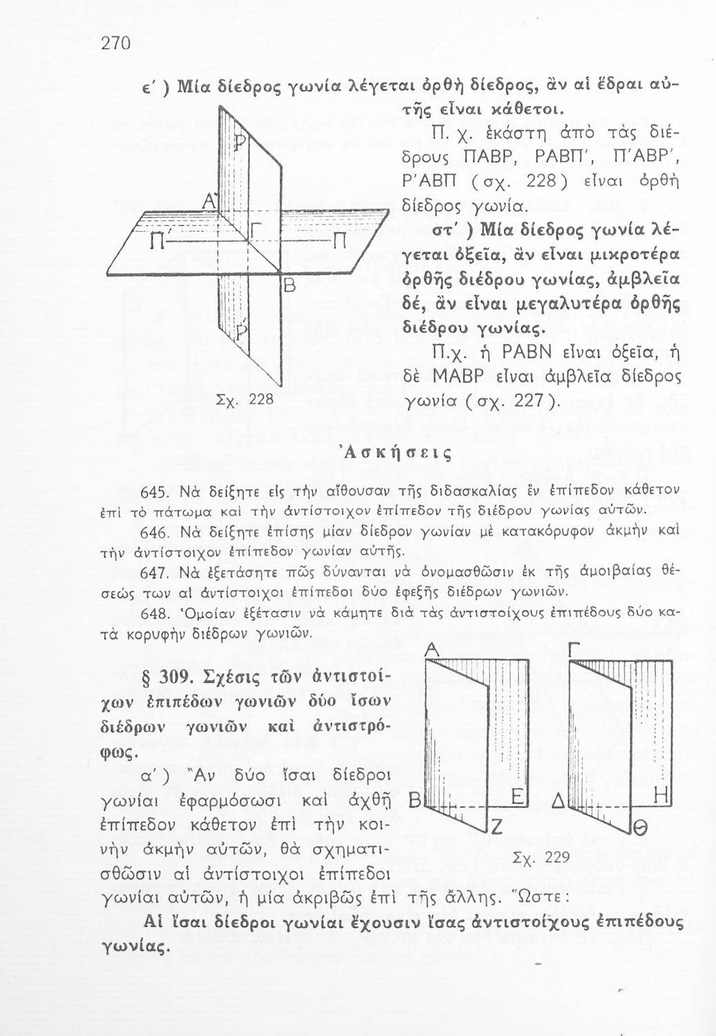 Σχολικό εγχειρίδιο Γεωμετρίας για τις Γ΄, Δ΄, Ε΄, ΣΤ΄ Γυμνασίου που περιλαμβάνει θεωρία και ασκήσεις και είναι χωρισμένο σε Επιπεδομετρία και Στερεομετρία. Φέρει το σύμβολο της δικτατορίας.
