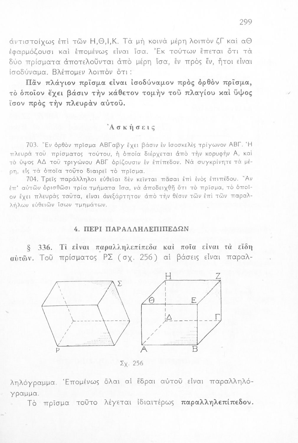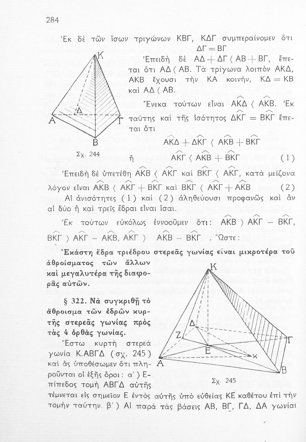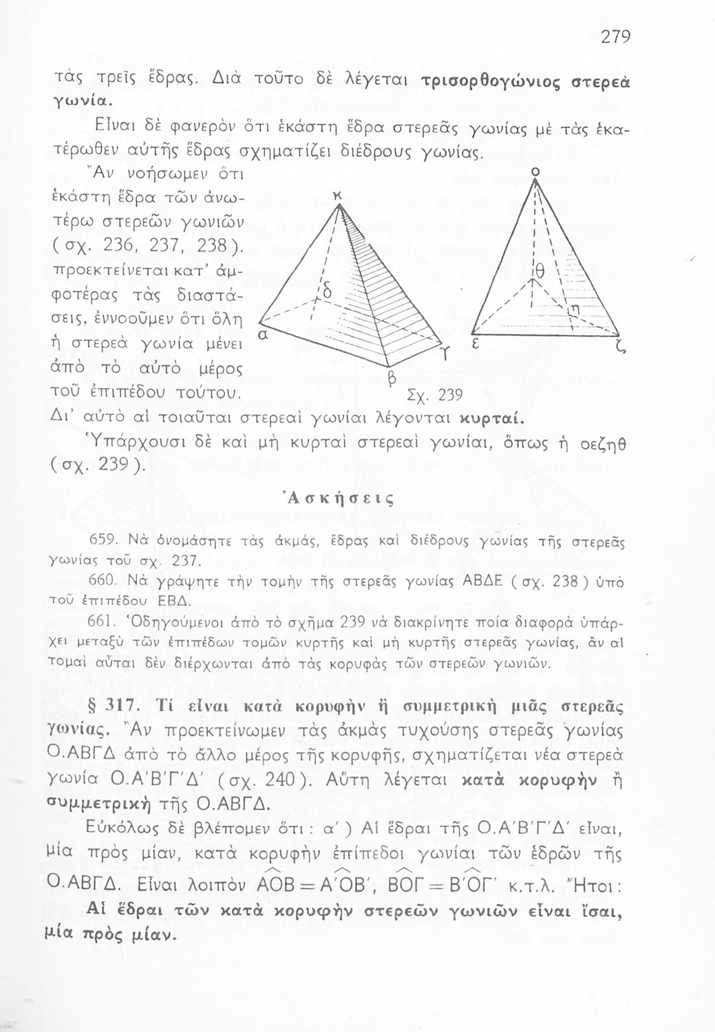 Σχολικό εγχειρίδιο Γεωμετρίας για τις Γ΄, Δ΄, Ε΄, ΣΤ΄ Γυμνασίου που περιλαμβάνει θεωρία και ασκήσεις και είναι χωρισμένο σε Επιπεδομετρία και Στερεομετρία. Φέρει το σύμβολο της δικτατορίας.