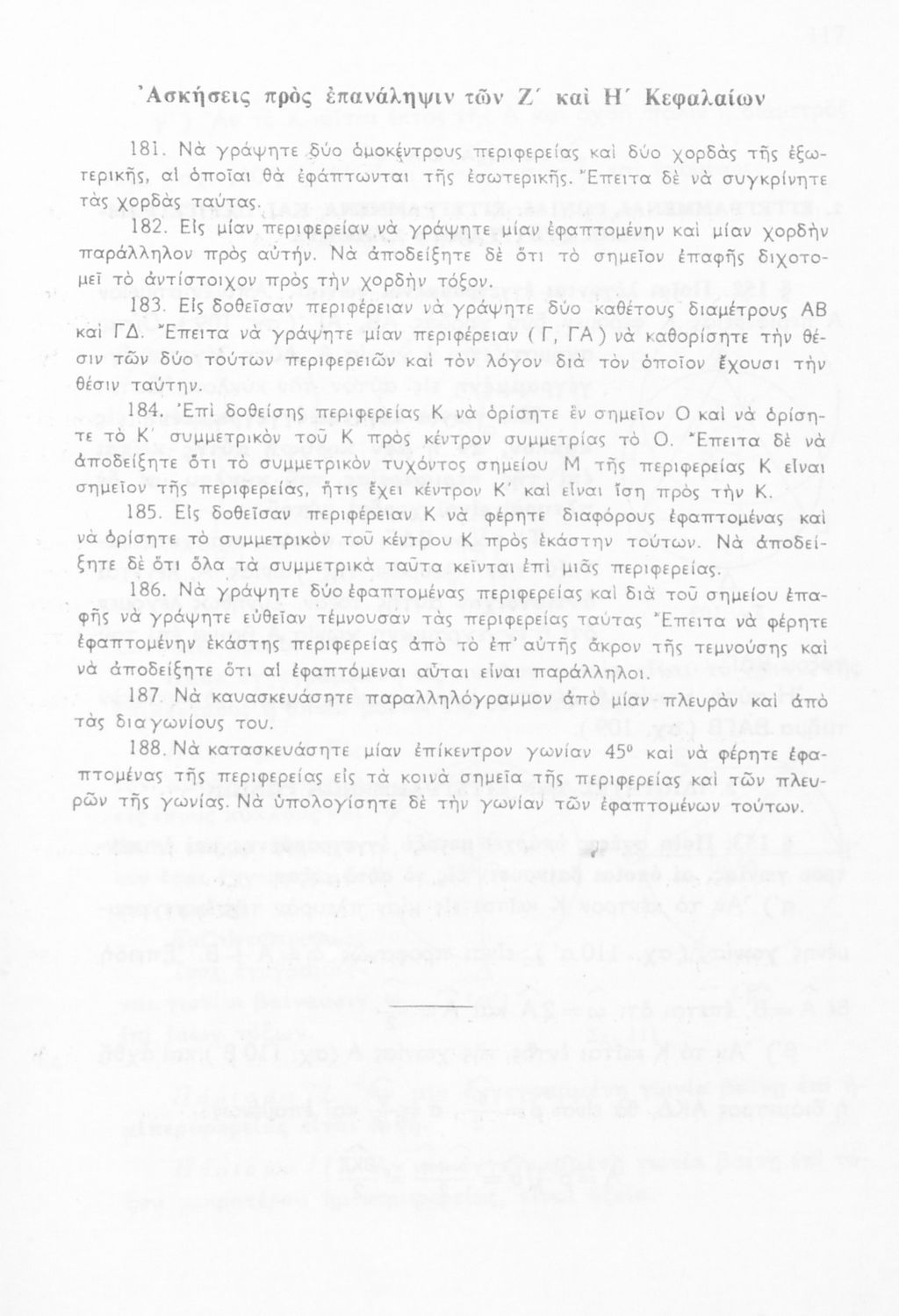 Σχολικό εγχειρίδιο Γεωμετρίας για τις Γ΄, Δ΄, Ε΄, ΣΤ΄ Γυμνασίου που περιλαμβάνει θεωρία και ασκήσεις και είναι χωρισμένο σε Επιπεδομετρία και Στερεομετρία. Φέρει το σύμβολο της δικτατορίας.