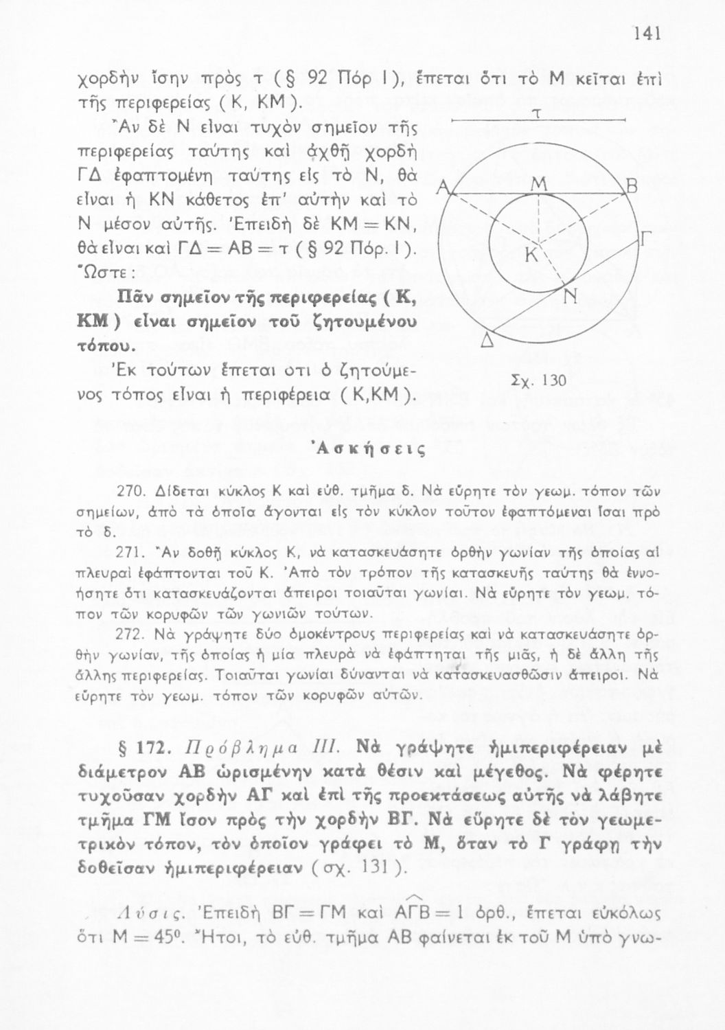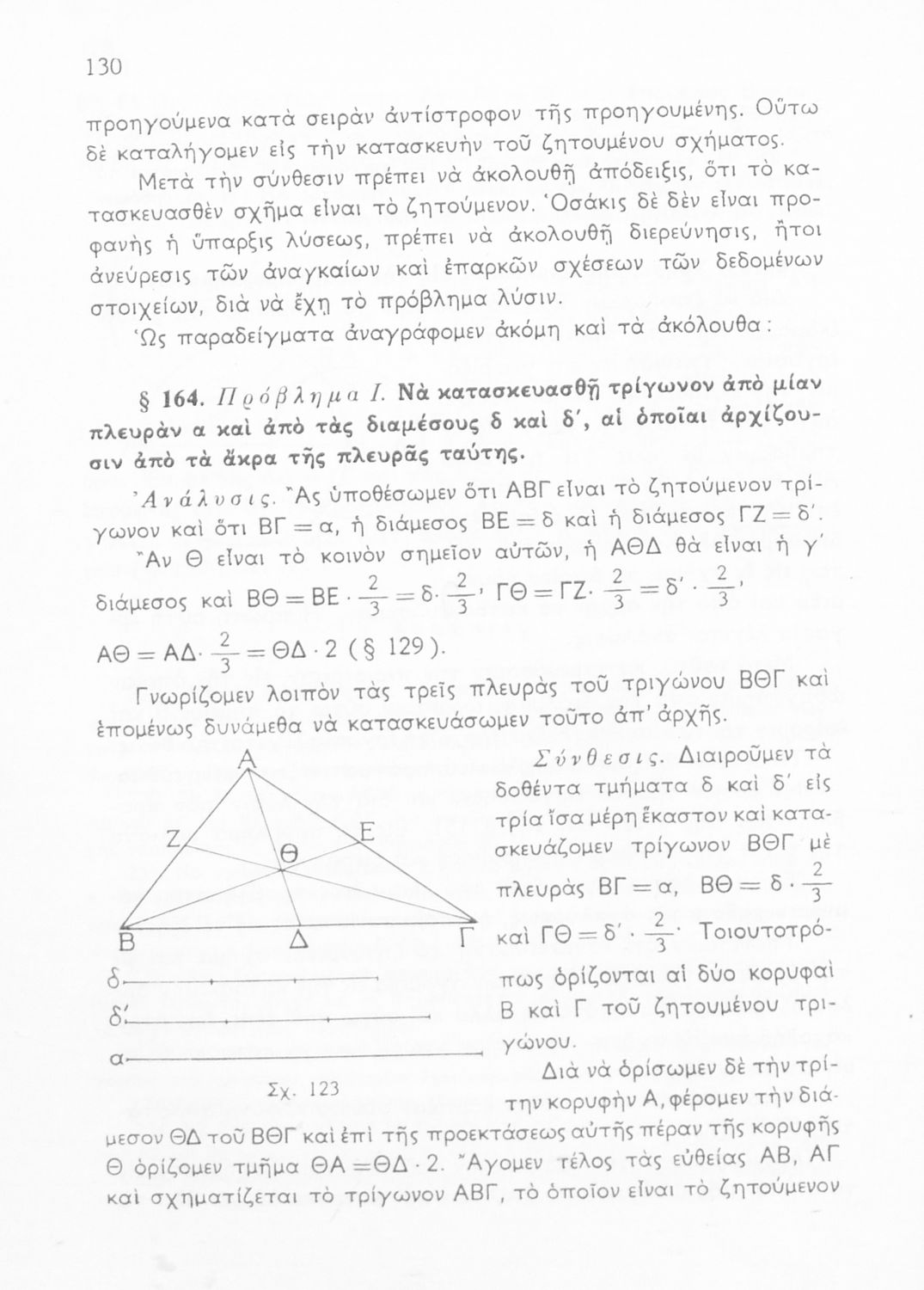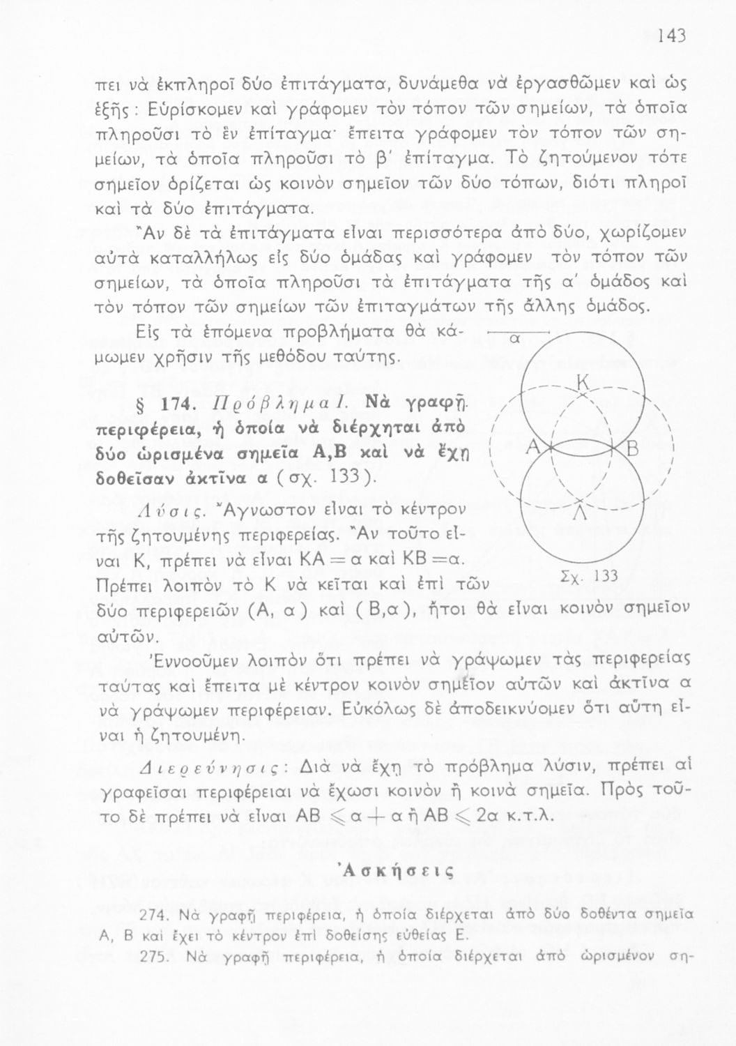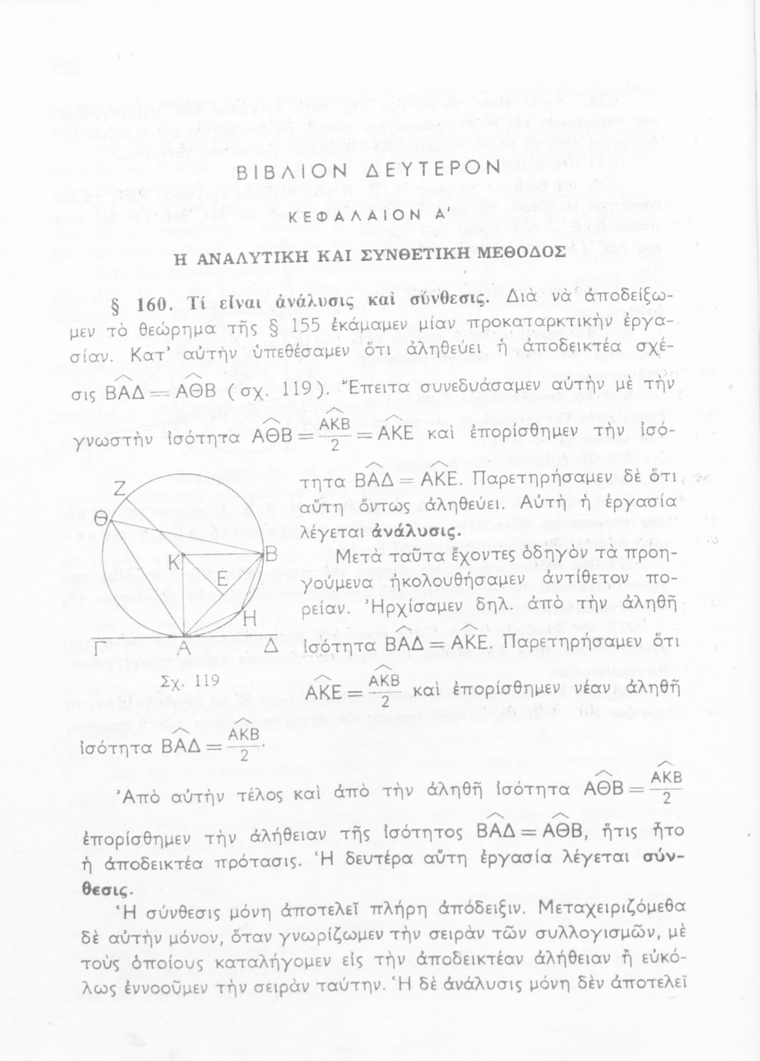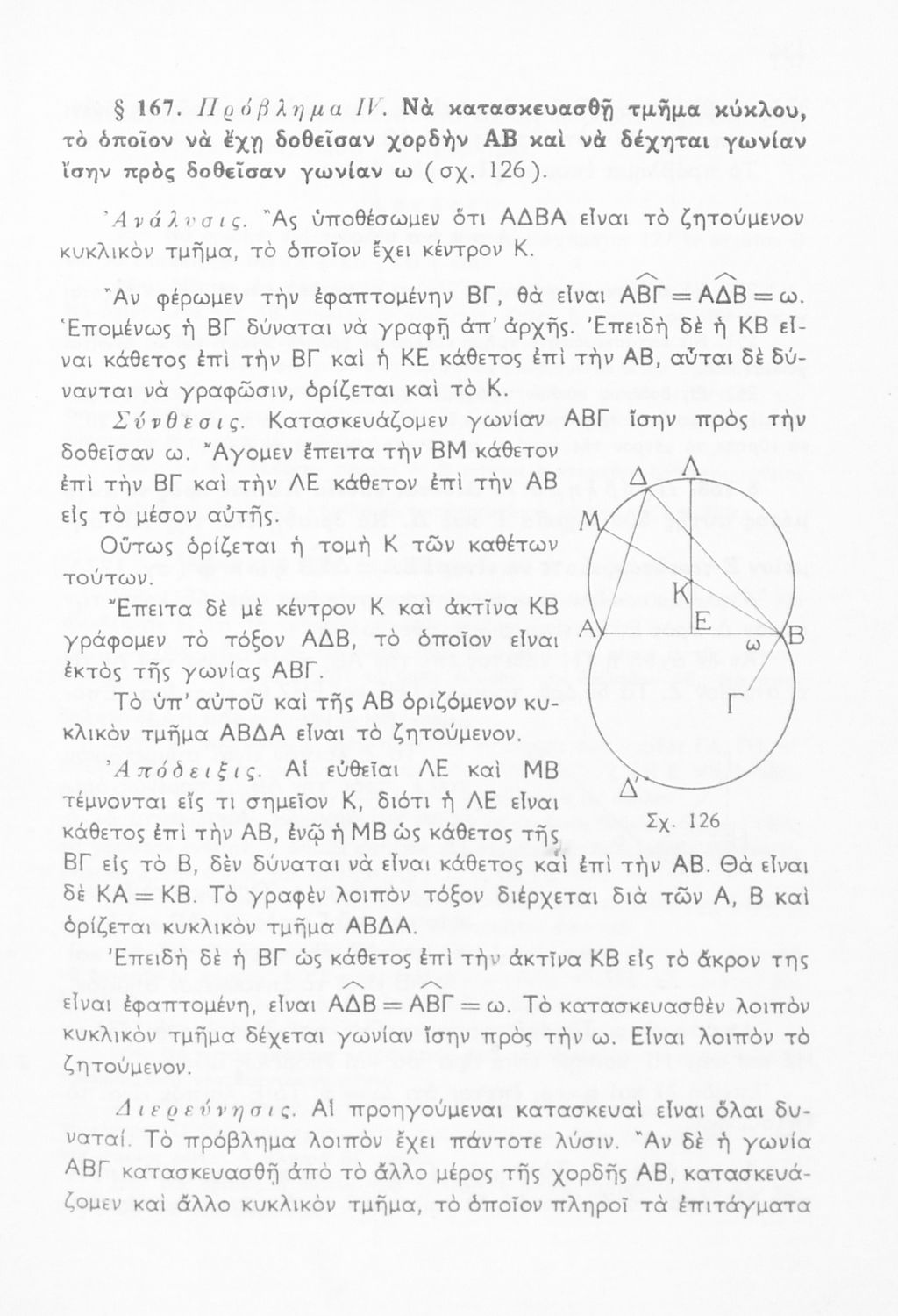 Σχολικό εγχειρίδιο Γεωμετρίας για τις Γ΄, Δ΄, Ε΄, ΣΤ΄ Γυμνασίου που εστιάζει στα βασικά θεωρήματα και ιδιότητες των γεωμετρικών σχημάτων. Φέρει το σύμβολο της δικτατορίας.