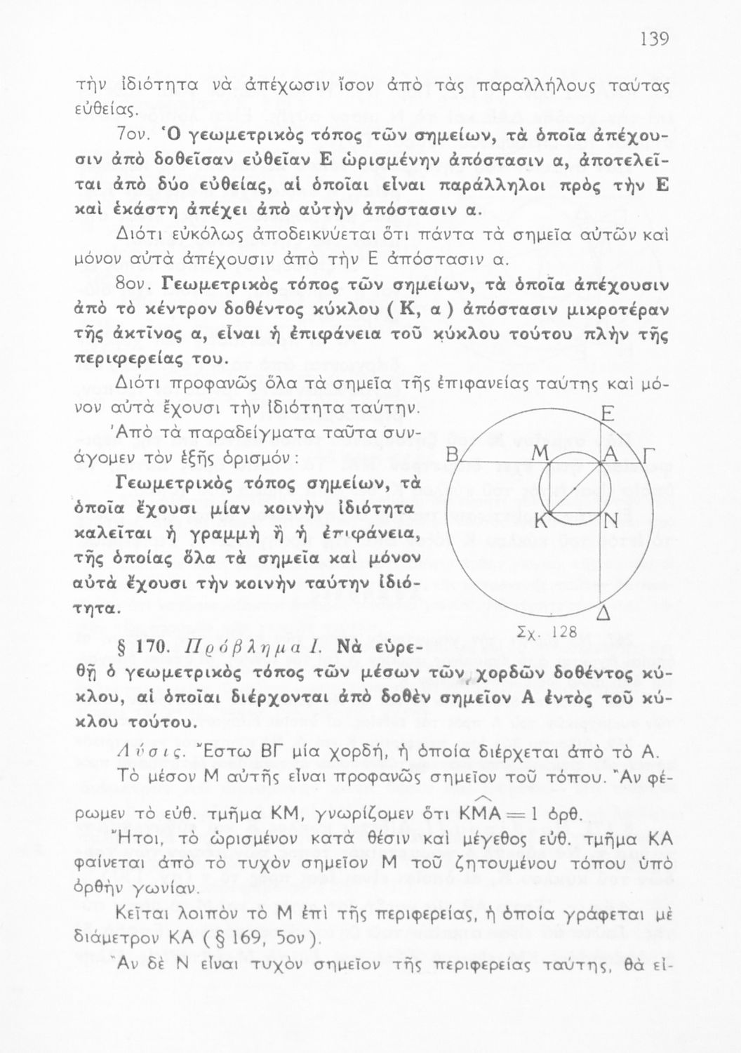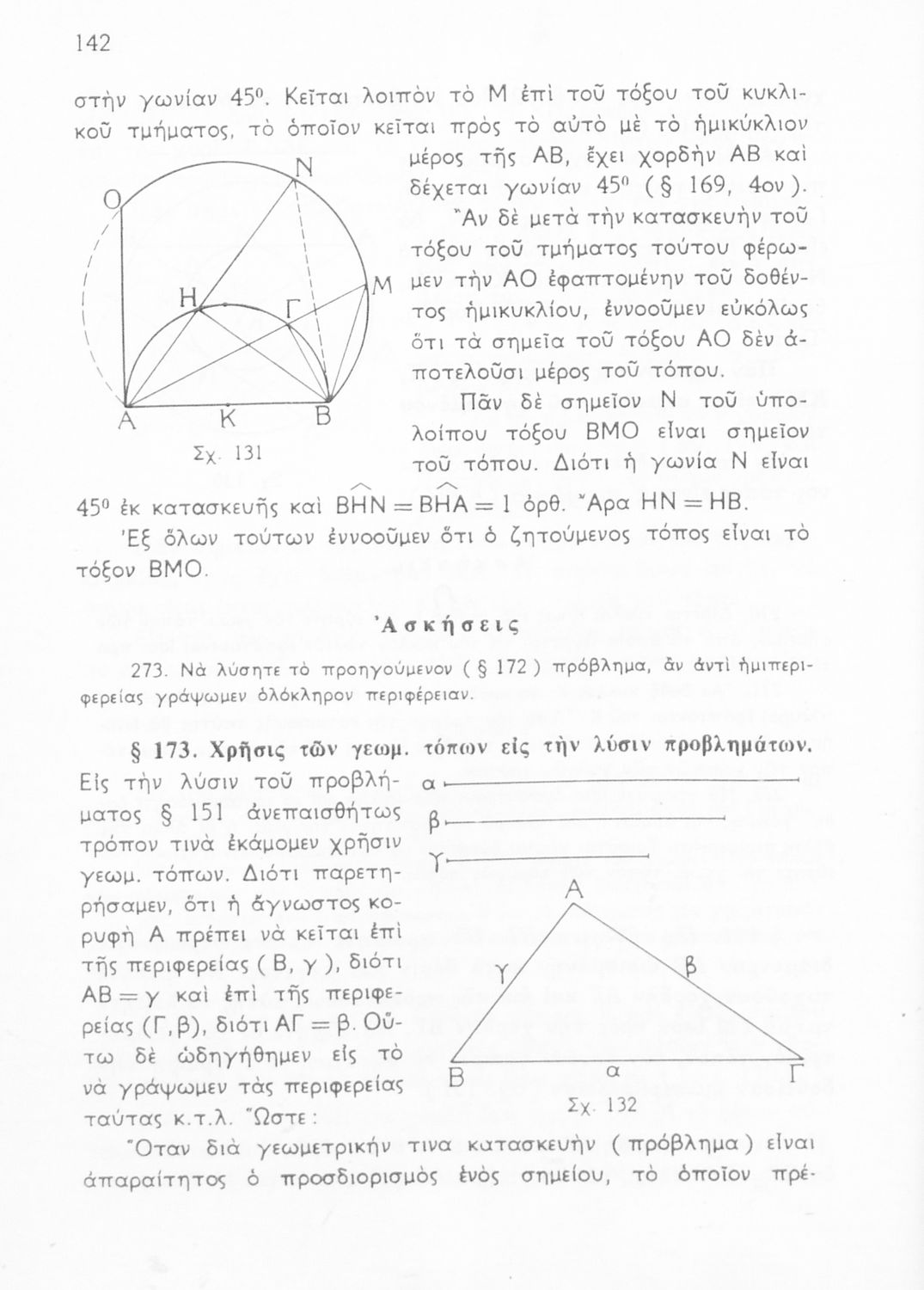 Σχολικό εγχειρίδιο Γεωμετρίας για τις Γ΄, Δ΄, Ε΄, ΣΤ΄ Γυμνασίου που περιλαμβάνει θεωρία και ασκήσεις και είναι χωρισμένο σε Επιπεδομετρία και Στερεομετρία. Φέρει το σύμβολο της δικτατορίας.