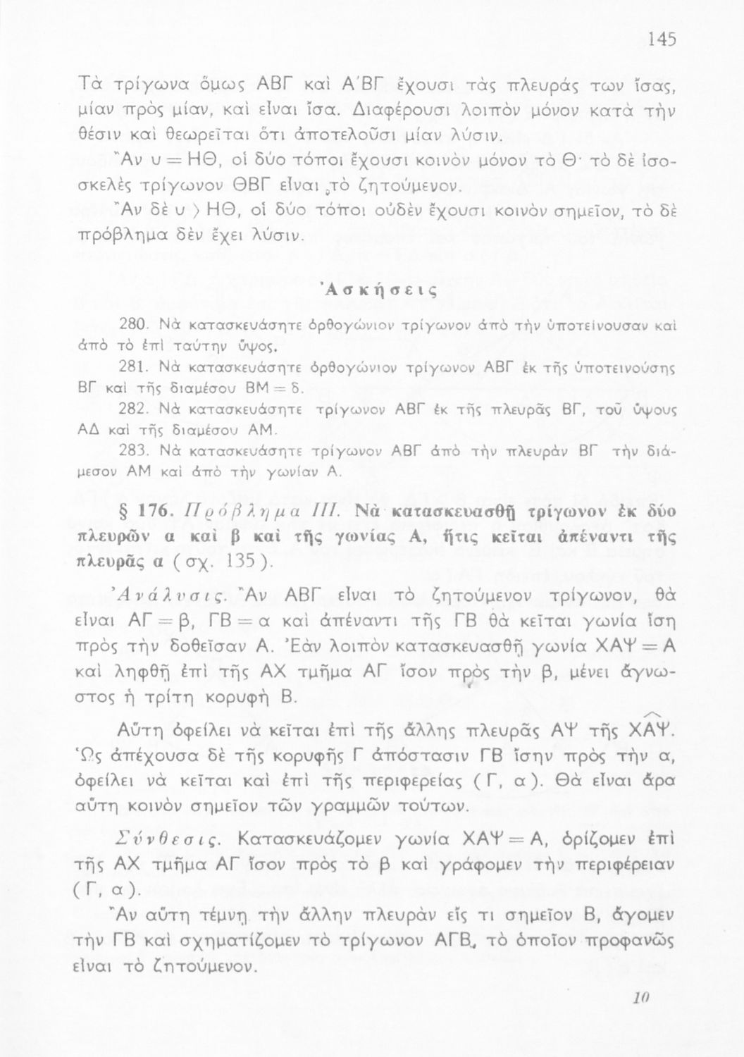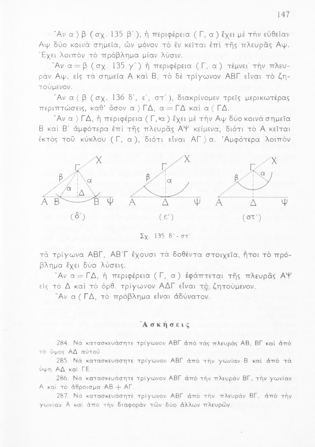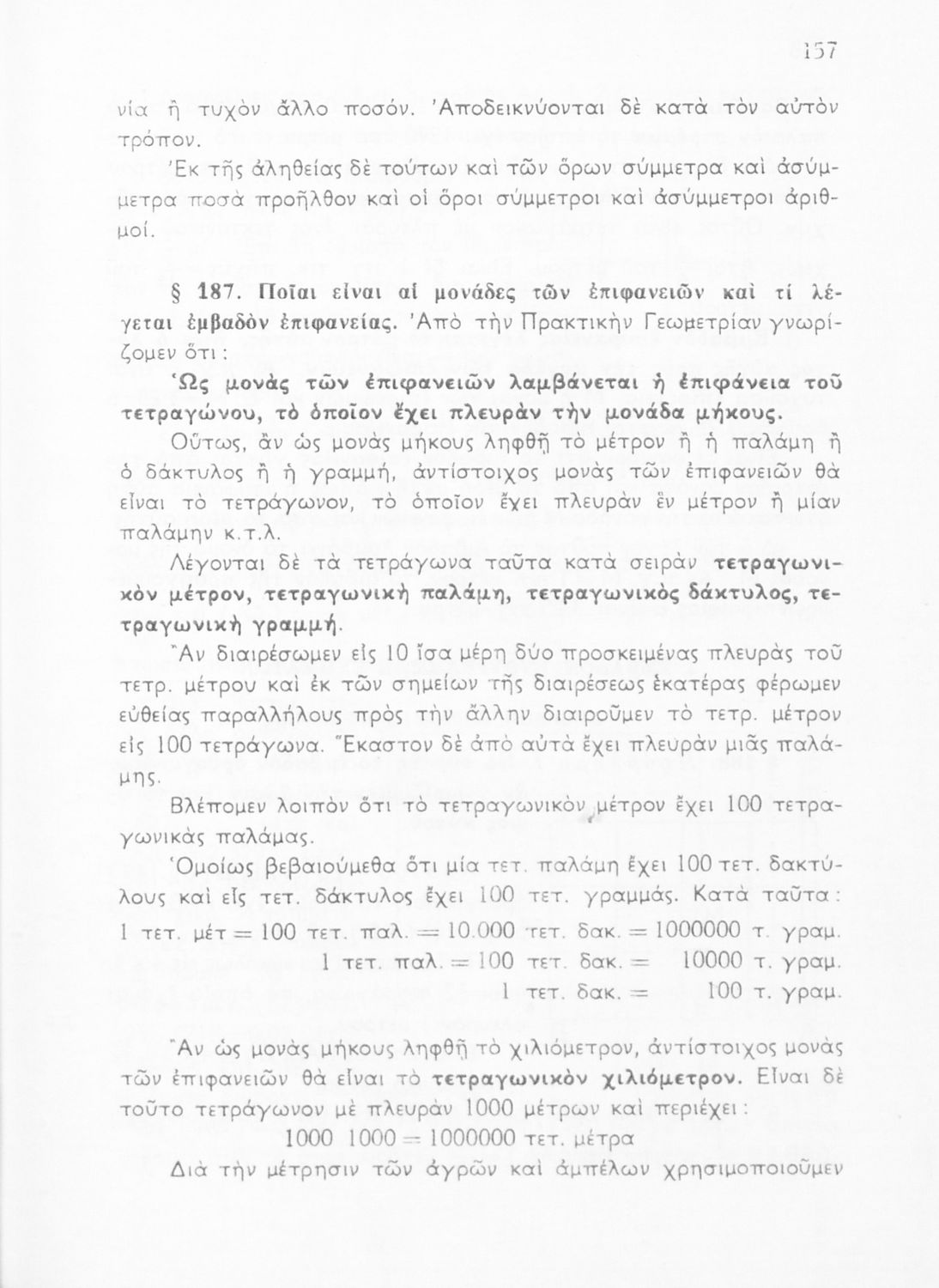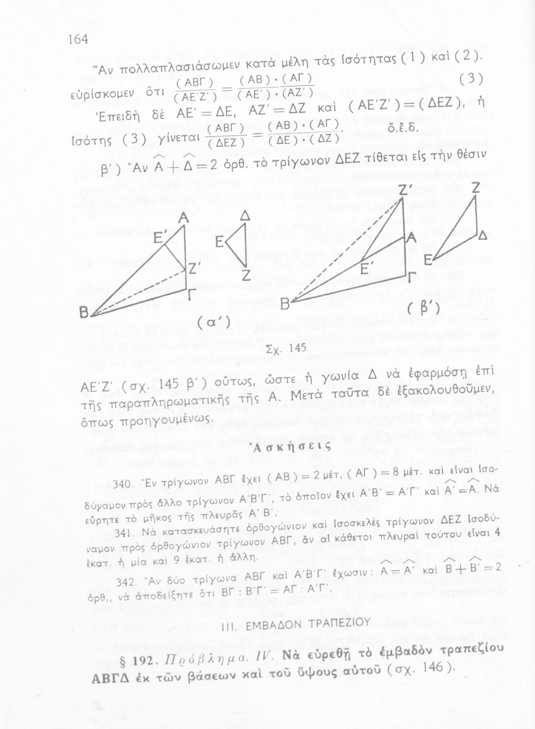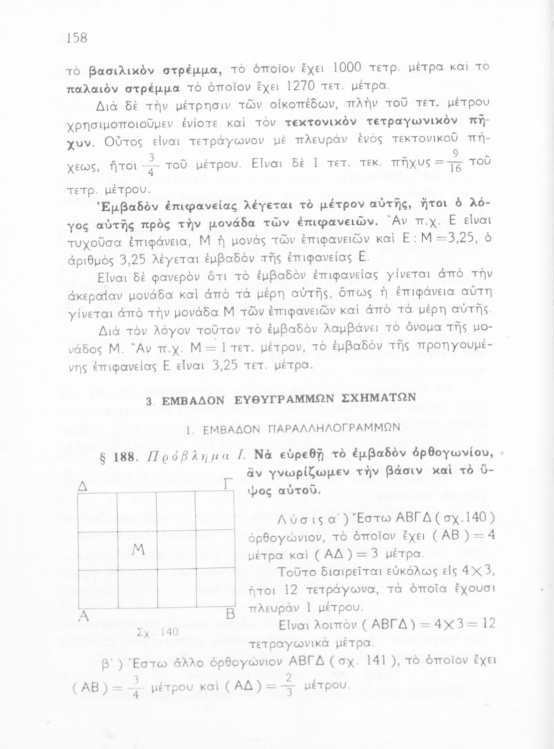 Σχολικό εγχειρίδιο Γεωμετρίας για τις Γ΄, Δ΄, Ε΄, ΣΤ΄ Γυμνασίου που περιλαμβάνει θεωρία και ασκήσεις και είναι χωρισμένο σε Επιπεδομετρία και Στερεομετρία. Φέρει το σύμβολο της δικτατορίας.