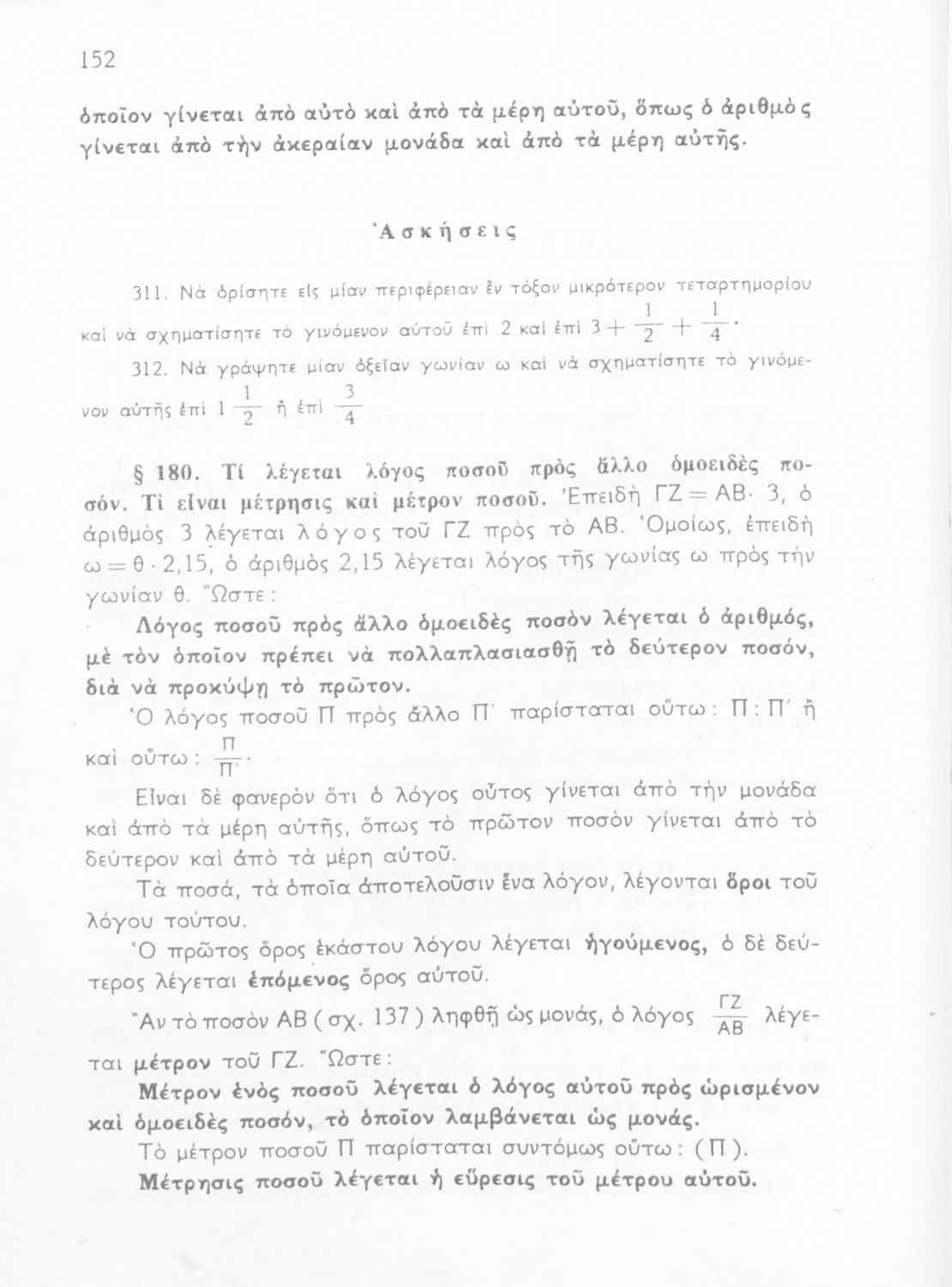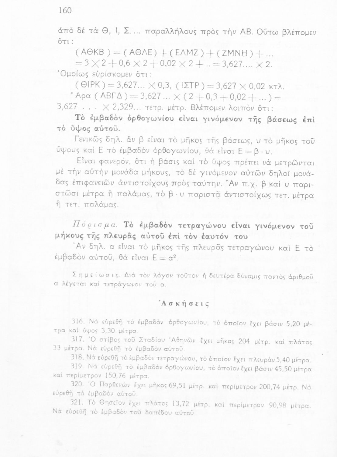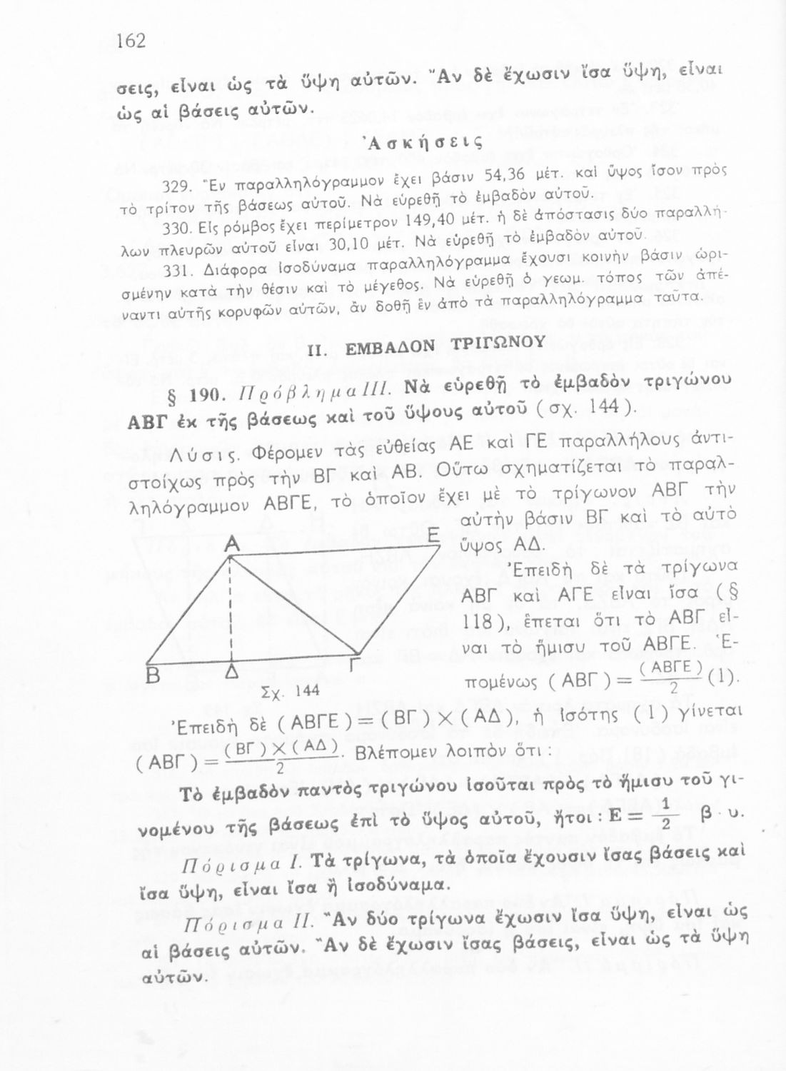 Σχολικό εγχειρίδιο Γεωμετρίας για τις Γ΄, Δ΄, Ε΄, ΣΤ΄ Γυμνασίου που περιλαμβάνει θεωρία και ασκήσεις και είναι χωρισμένο σε Επιπεδομετρία και Στερεομετρία.