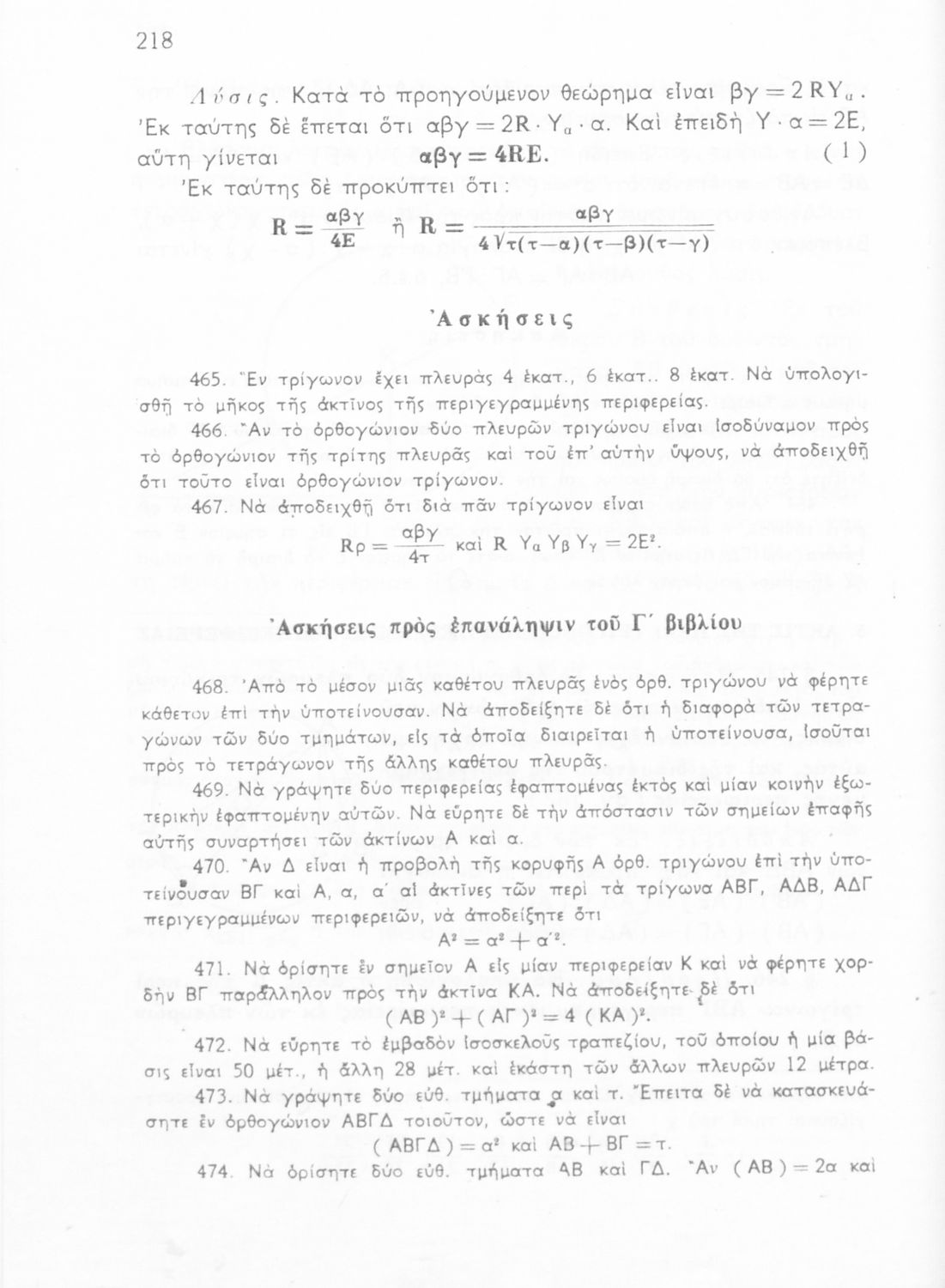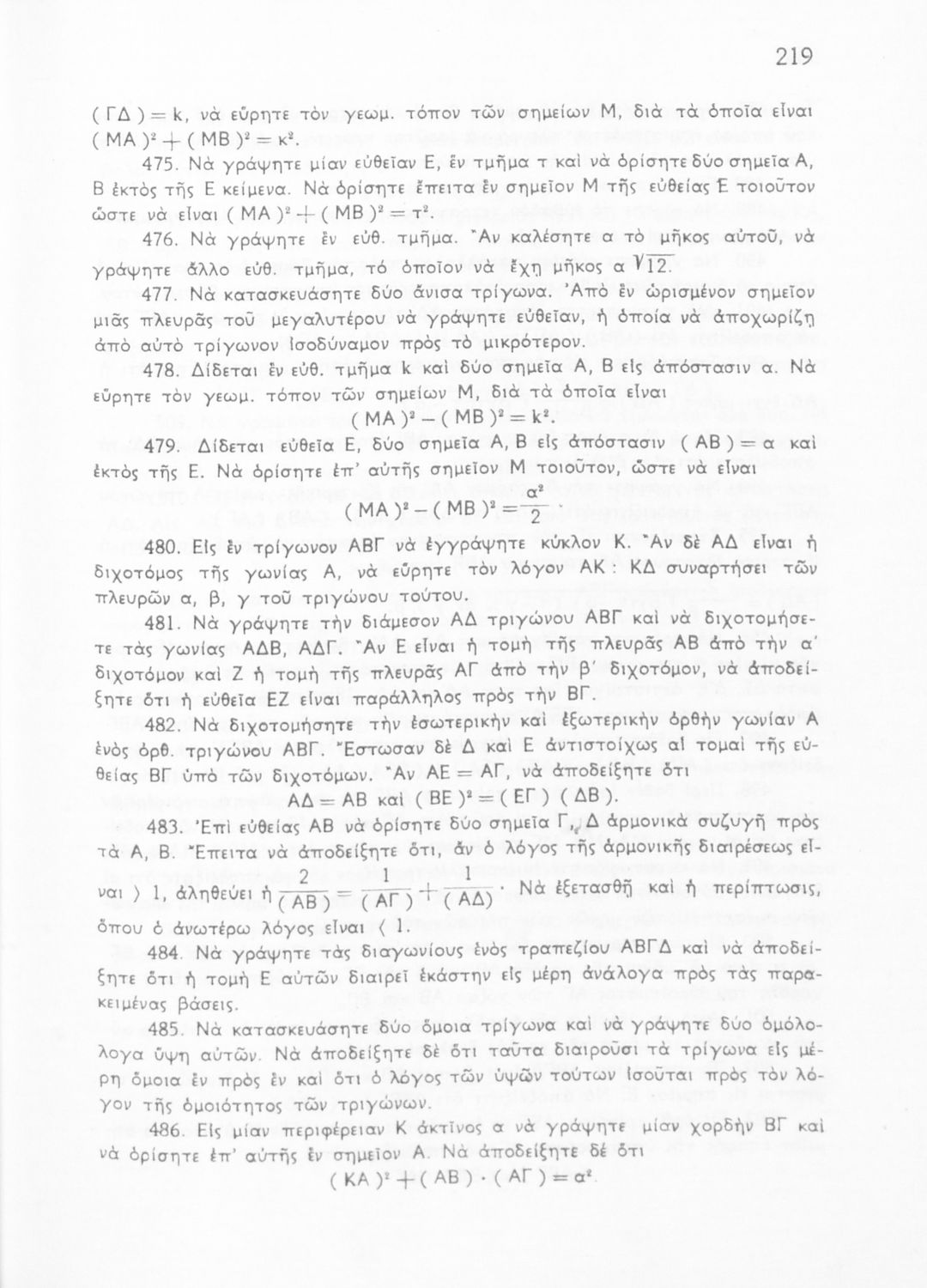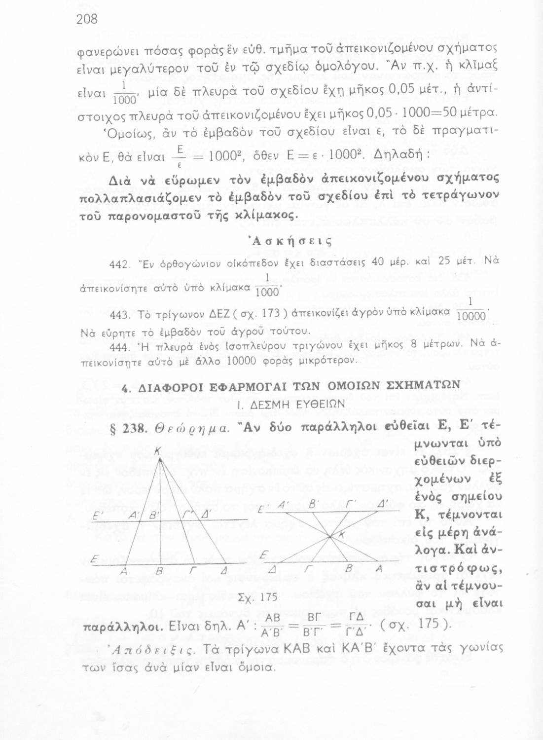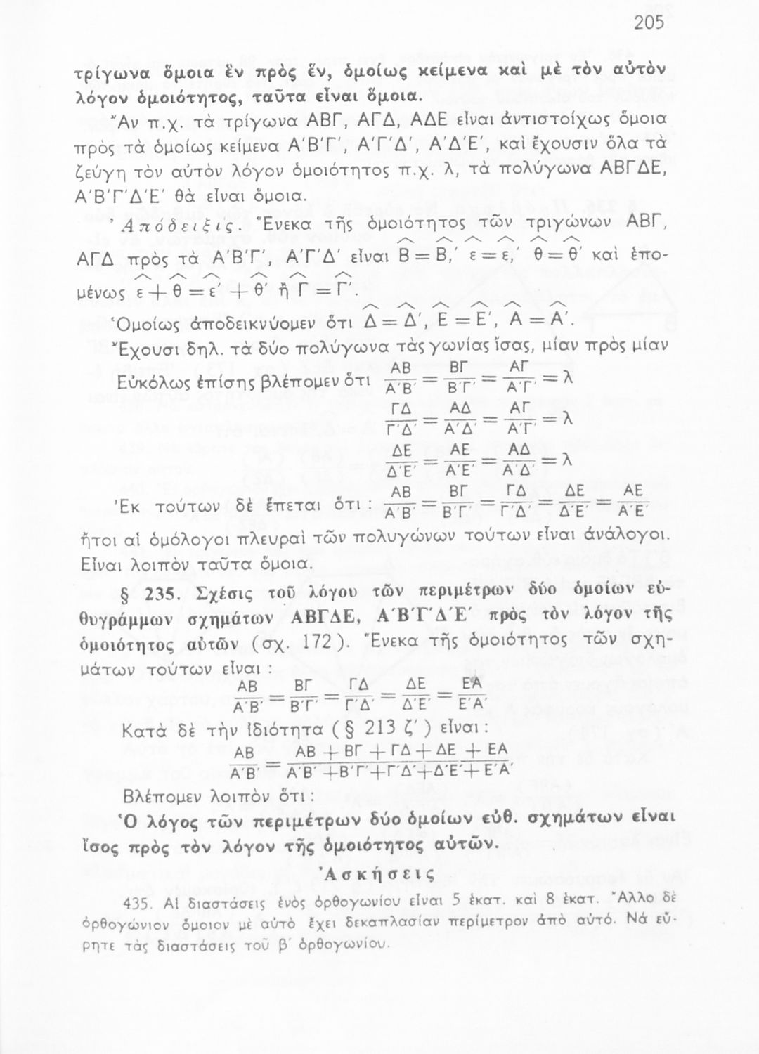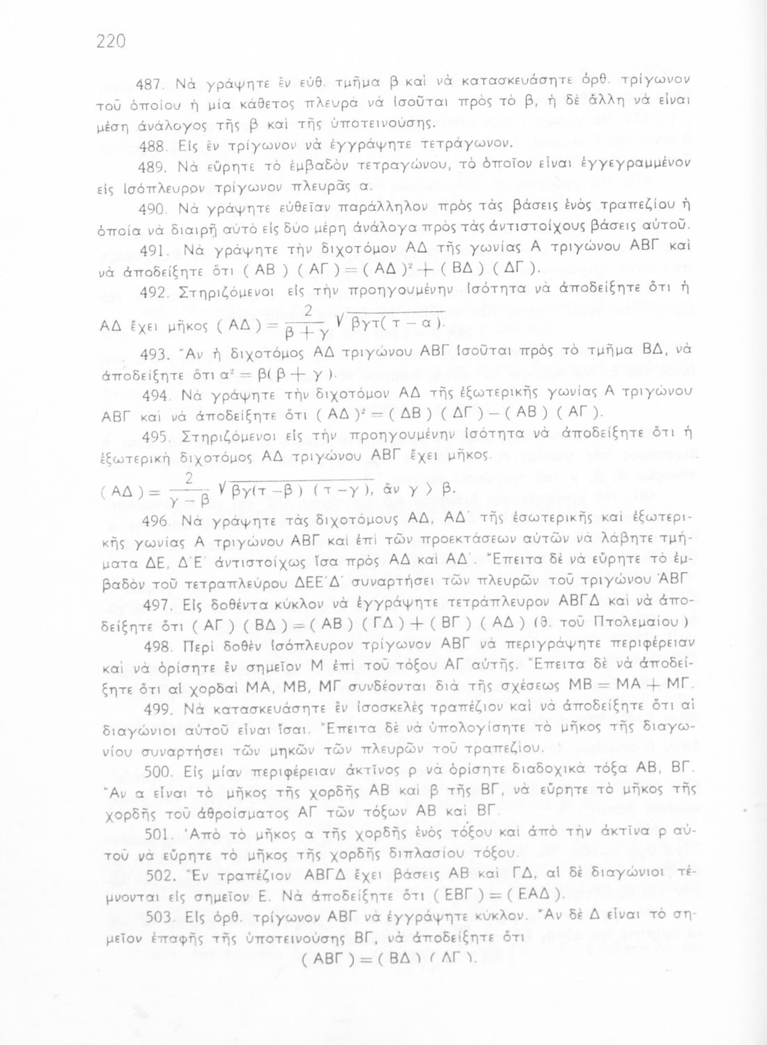Σχολικό εγχειρίδιο Γεωμετρίας για τις Γ΄, Δ΄, Ε΄, ΣΤ΄ Γυμνασίου που περιλαμβάνει θεωρία και ασκήσεις και είναι χωρισμένο σε Επιπεδομετρία και Στερεομετρία.