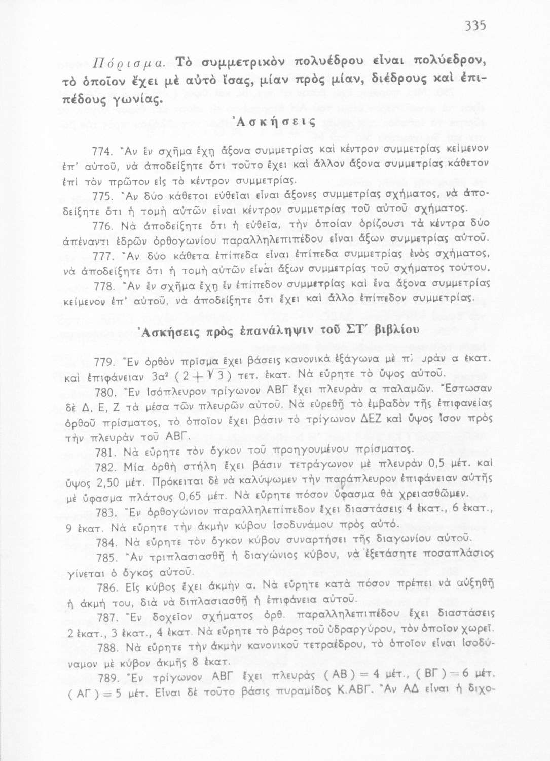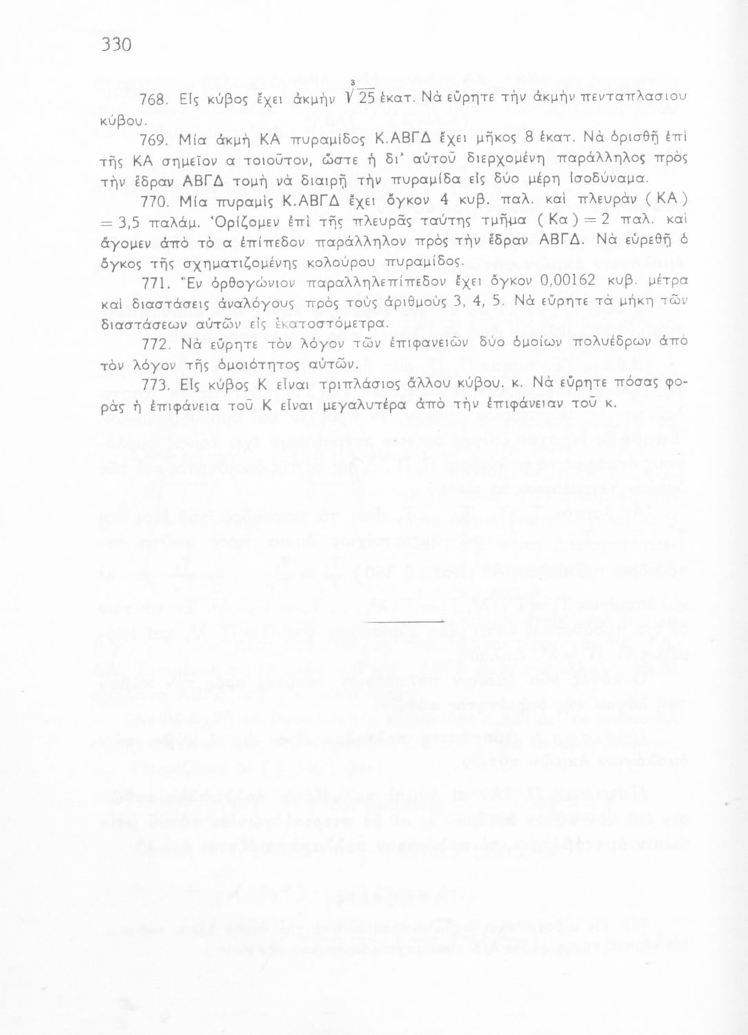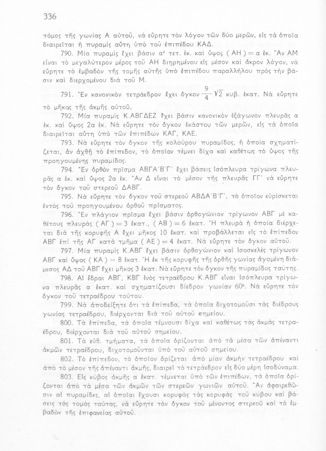 Σχολικό εγχειρίδιο Γεωμετρίας για τις Γ΄, Δ΄, Ε΄, ΣΤ΄ Γυμνασίου που περιλαμβάνει θεωρία και ασκήσεις και είναι χωρισμένο σε Επιπεδομετρία και Στερεομετρία. Φέρει το σύμβολο της δικτατορίας.