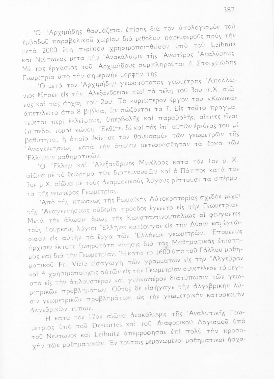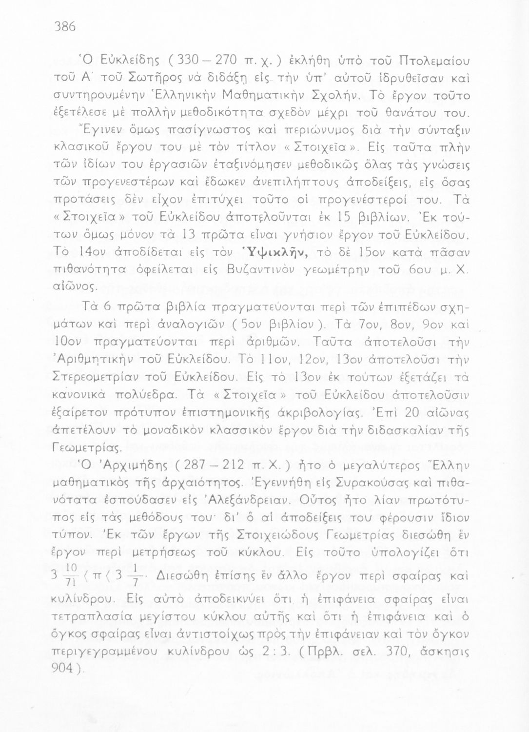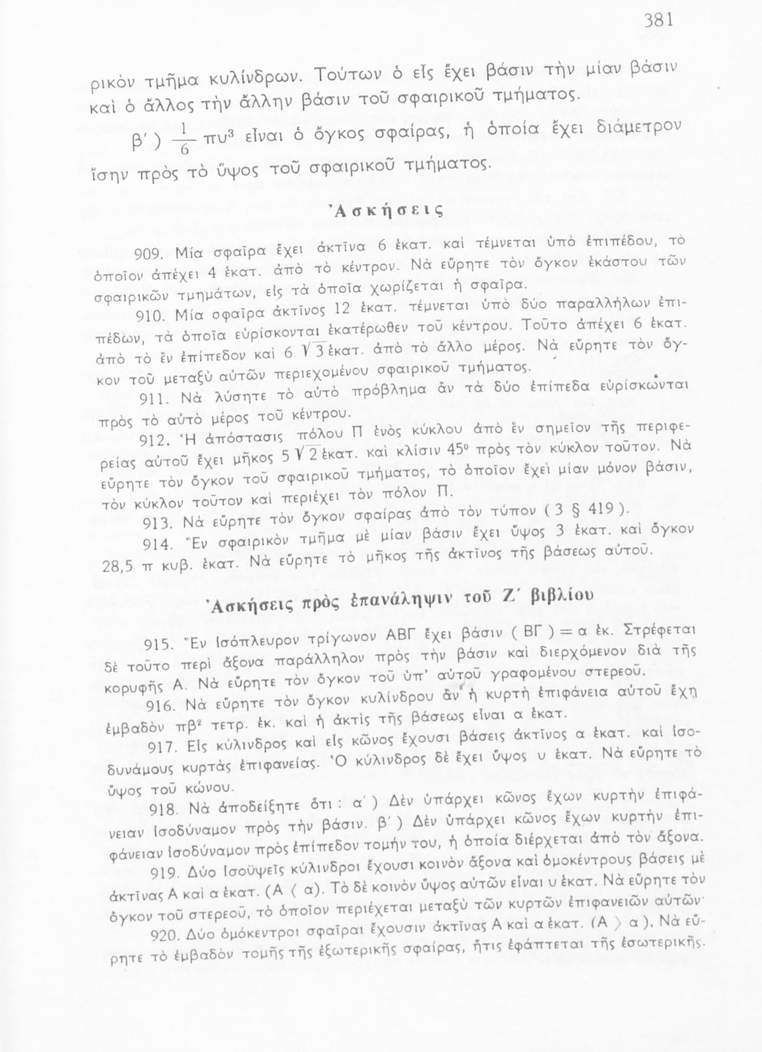 Σχολικό εγχειρίδιο Γεωμετρίας για τις Γ΄, Δ΄, Ε΄, ΣΤ΄ Γυμνασίου που περιλαμβάνει θεωρία και ασκήσεις και είναι χωρισμένο σε Επιπεδομετρία και Στερεομετρία. Φέρει το σύμβολο της δικτατορίας.