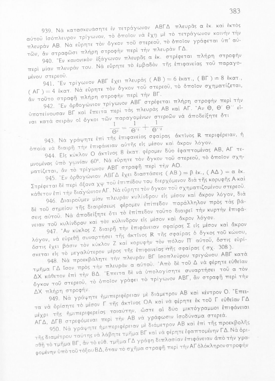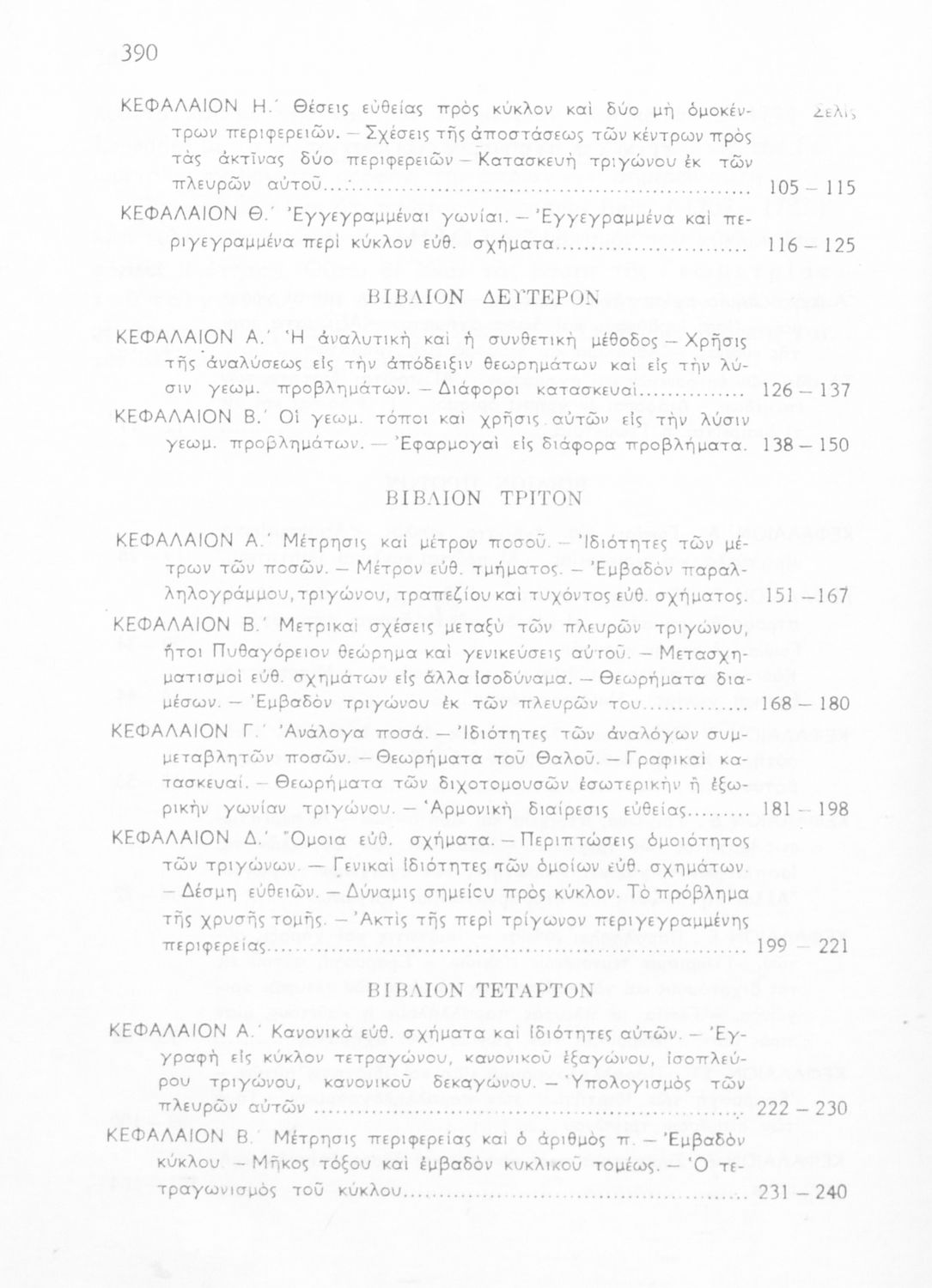 Σχολικό εγχειρίδιο Γεωμετρίας για τις Γ΄, Δ΄, Ε΄, ΣΤ΄ Γυμνασίου που περιλαμβάνει θεωρία και ασκήσεις και είναι χωρισμένο σε Επιπεδομετρία και Στερεομετρία.