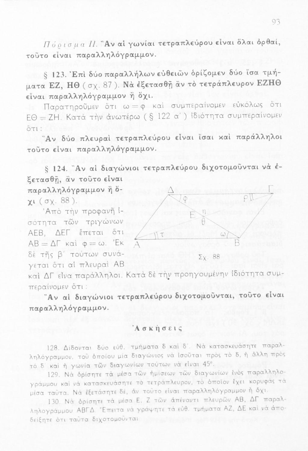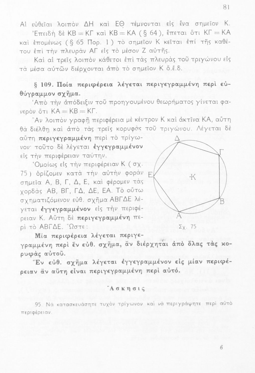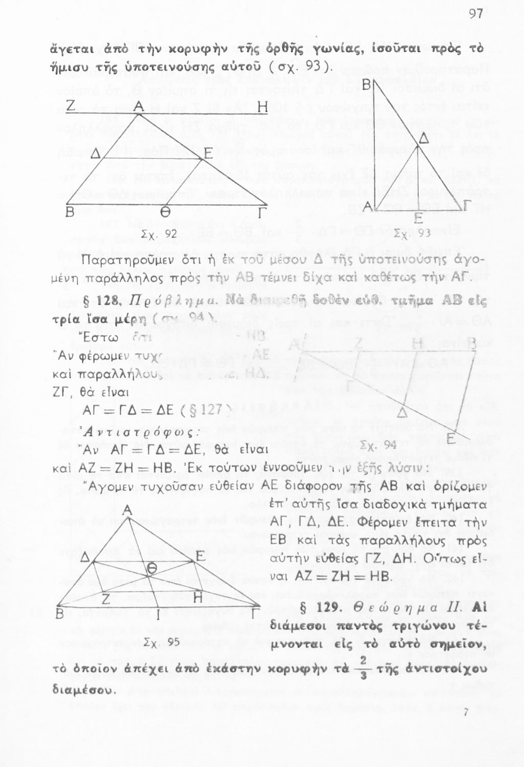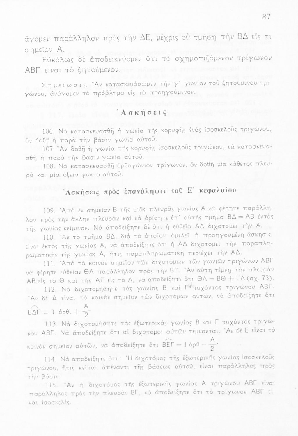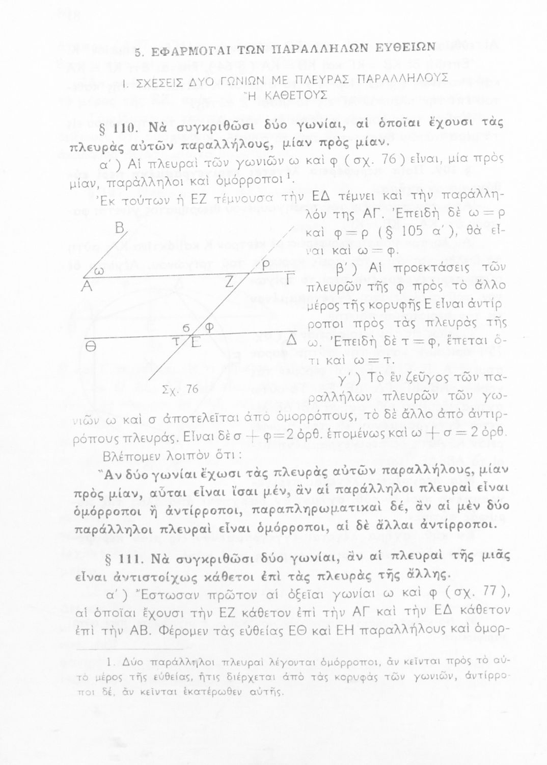 Σχολικό εγχειρίδιο Γεωμετρίας για τις Γ΄, Δ΄, Ε΄, ΣΤ΄ Γυμνασίου που εστιάζει στα βασικά θεωρήματα και ιδιότητες των γεωμετρικών σχημάτων. Φέρει το σύμβολο της δικτατορίας.