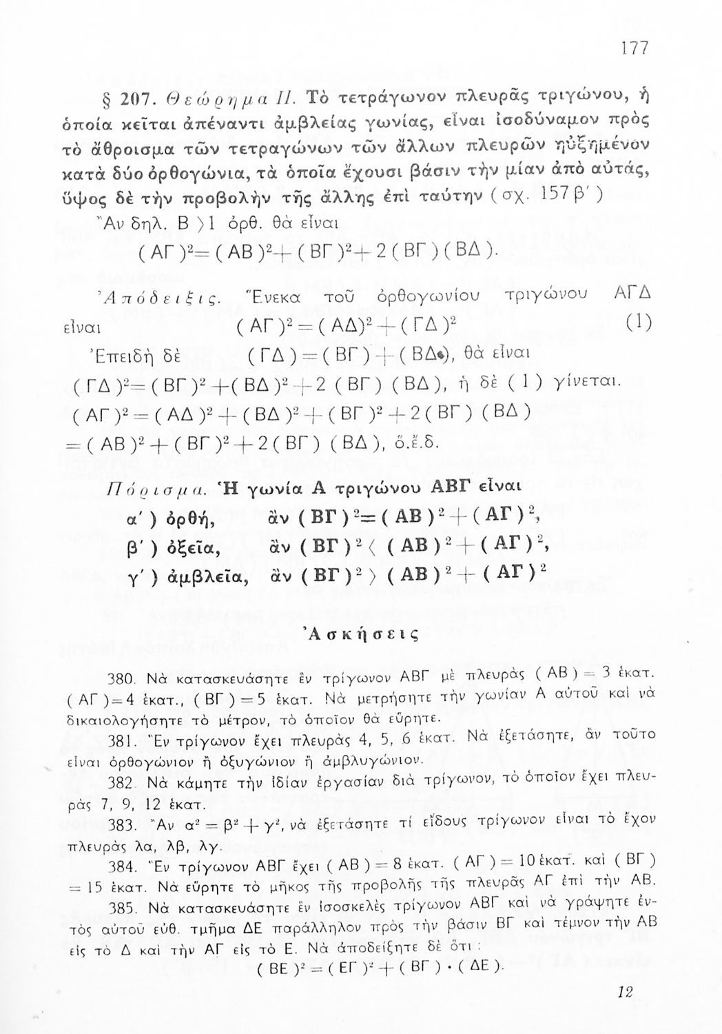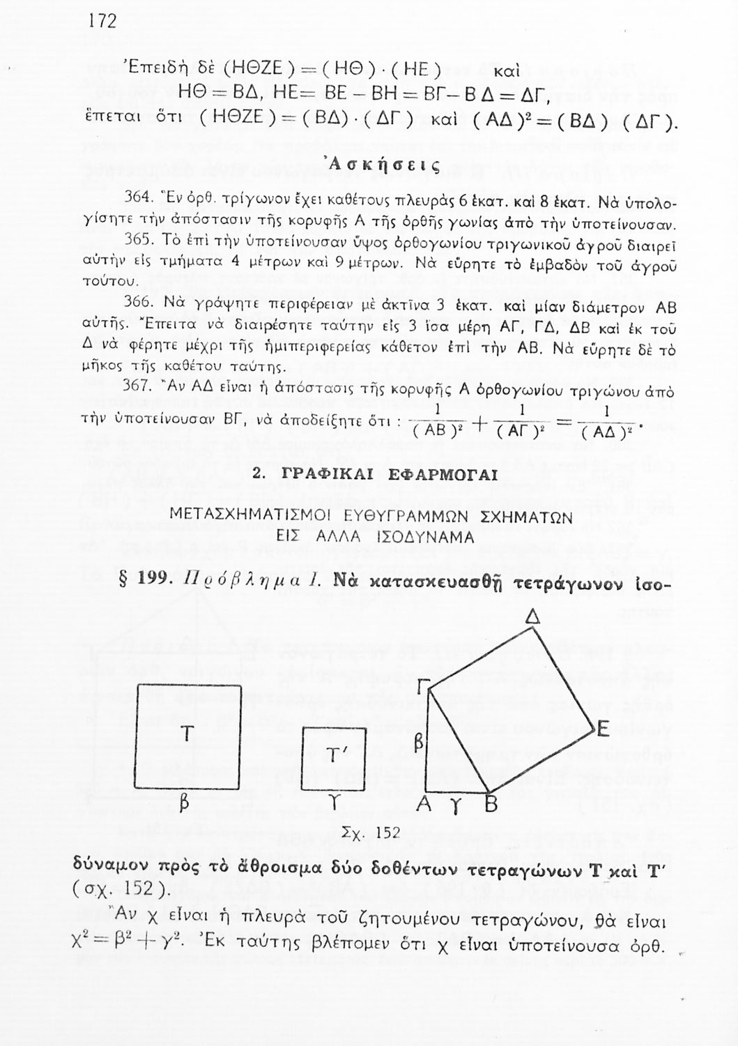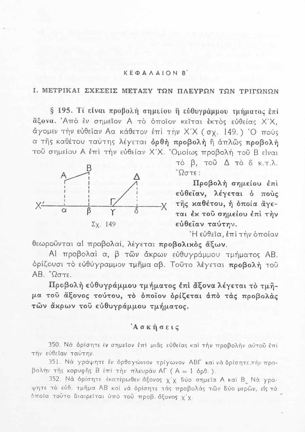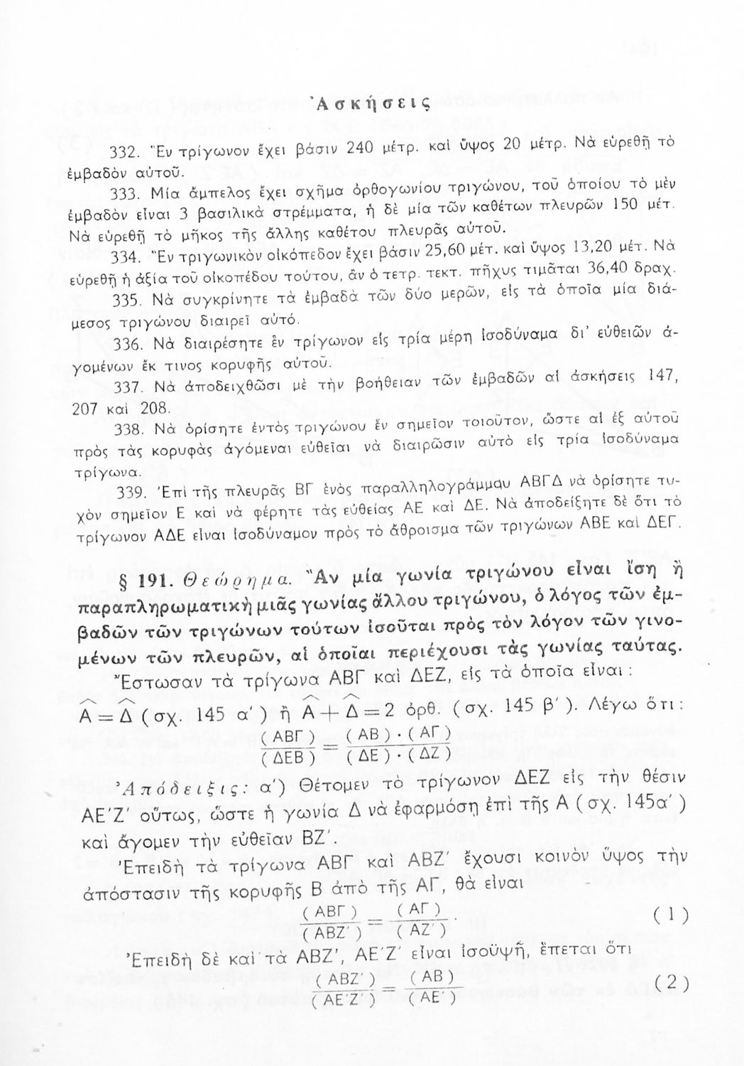 Σχολικό εγχειρίδιο Γεωμετρίας για τις Γ΄, Δ΄, Ε΄, ΣΤ΄ Γυμνασίου που εστιάζει στα βασικά θεωρήματα και ιδιότητες των γεωμετρικών σχημάτων. Φέρει το σύμβολο της δικτατορίας.