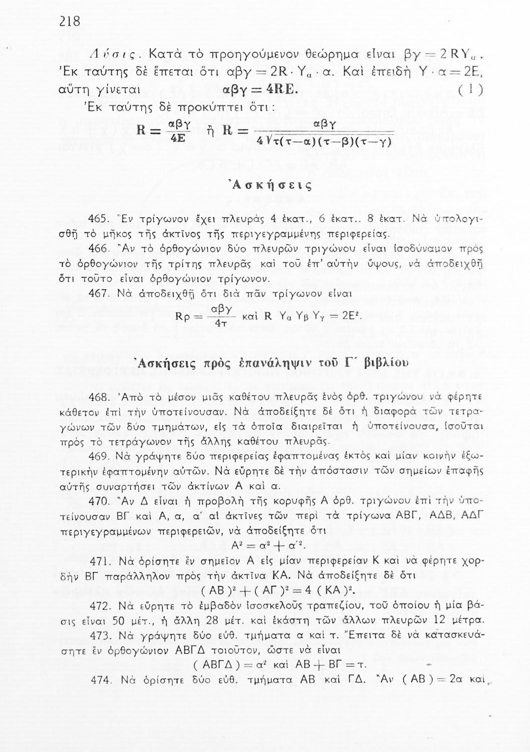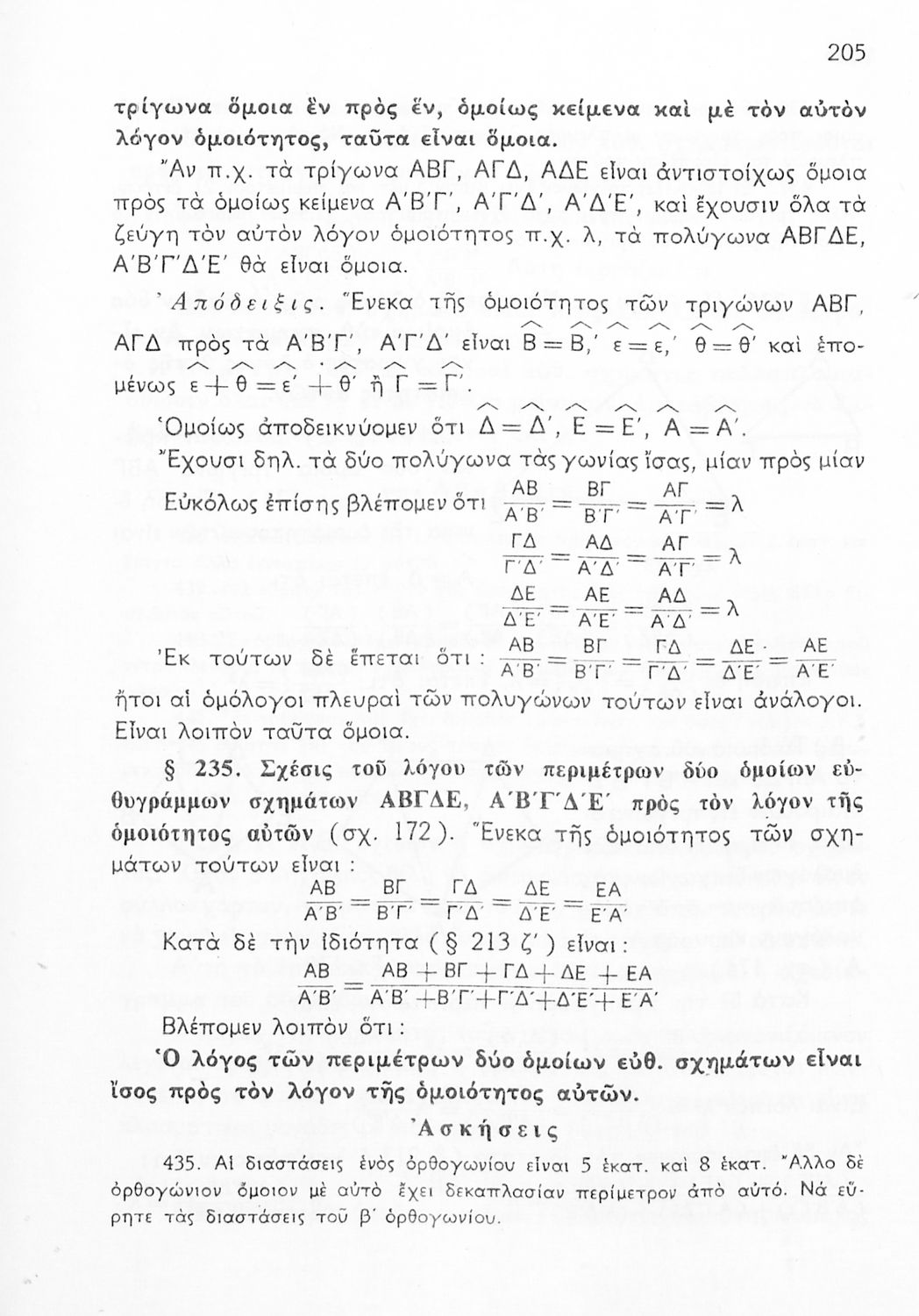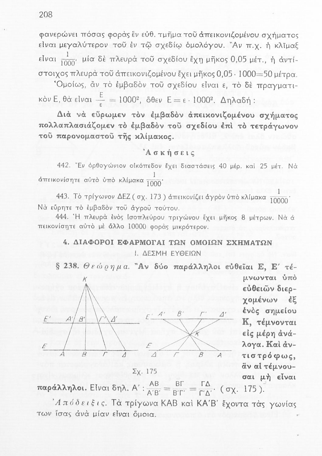 Σχολικό εγχειρίδιο Γεωμετρίας για τις Γ΄, Δ΄, Ε΄, ΣΤ΄ Γυμνασίου που περιλαμβάνει θεωρία και ασκήσεις και είναι χωρισμένο σε Επιπεδομετρία και Στερεομετρία.