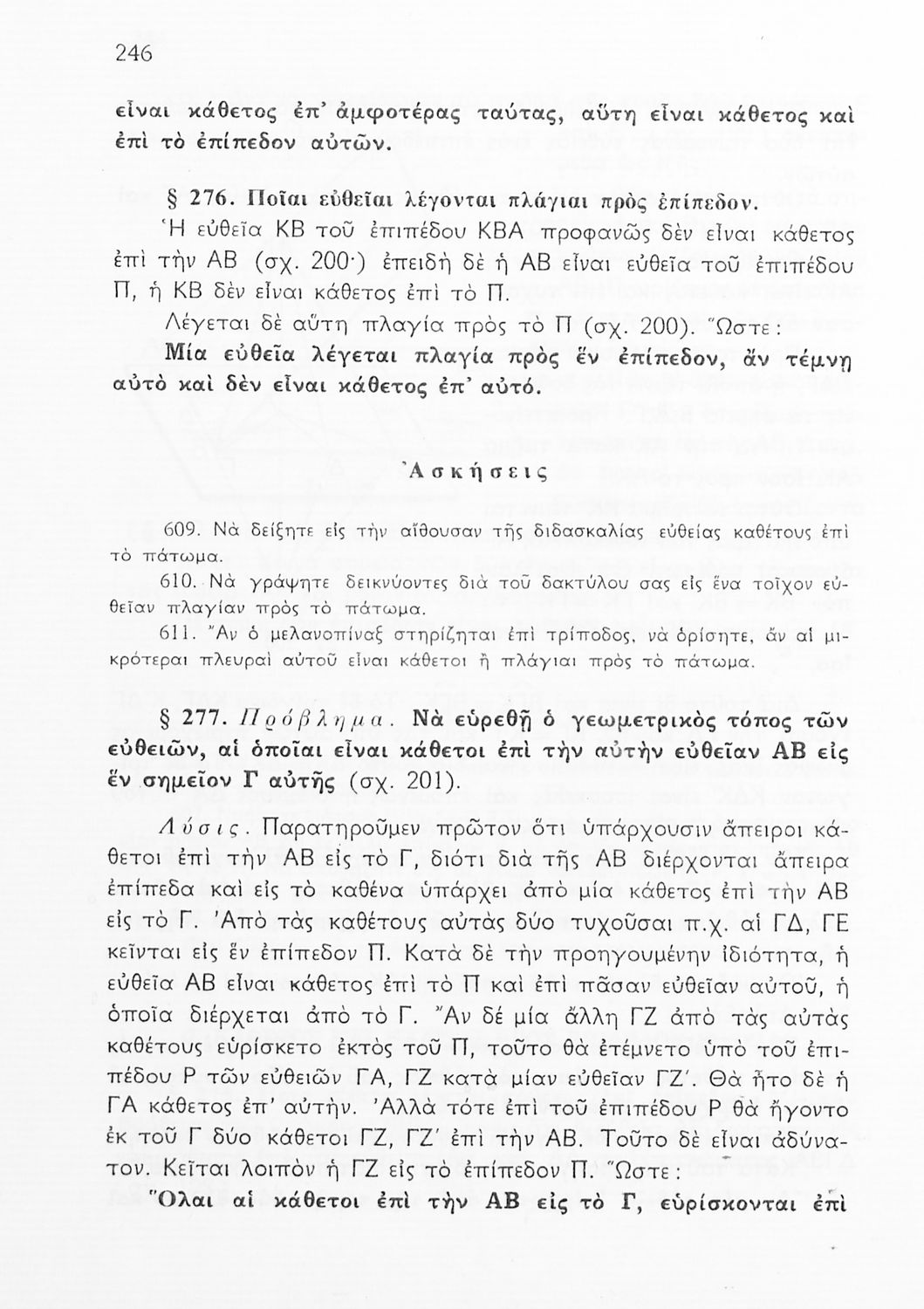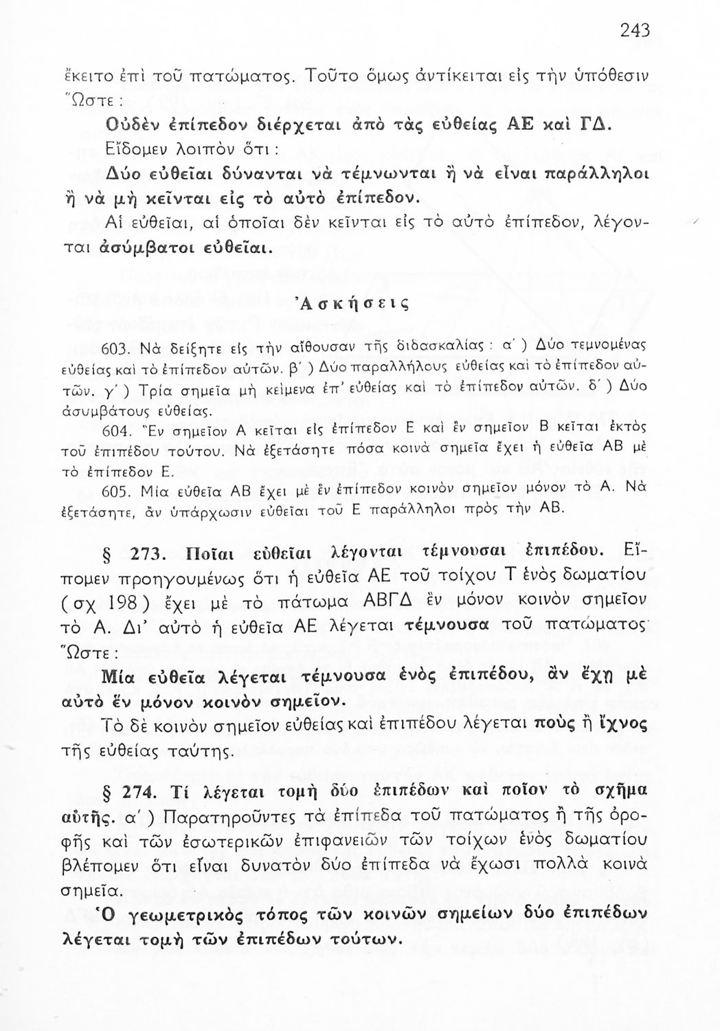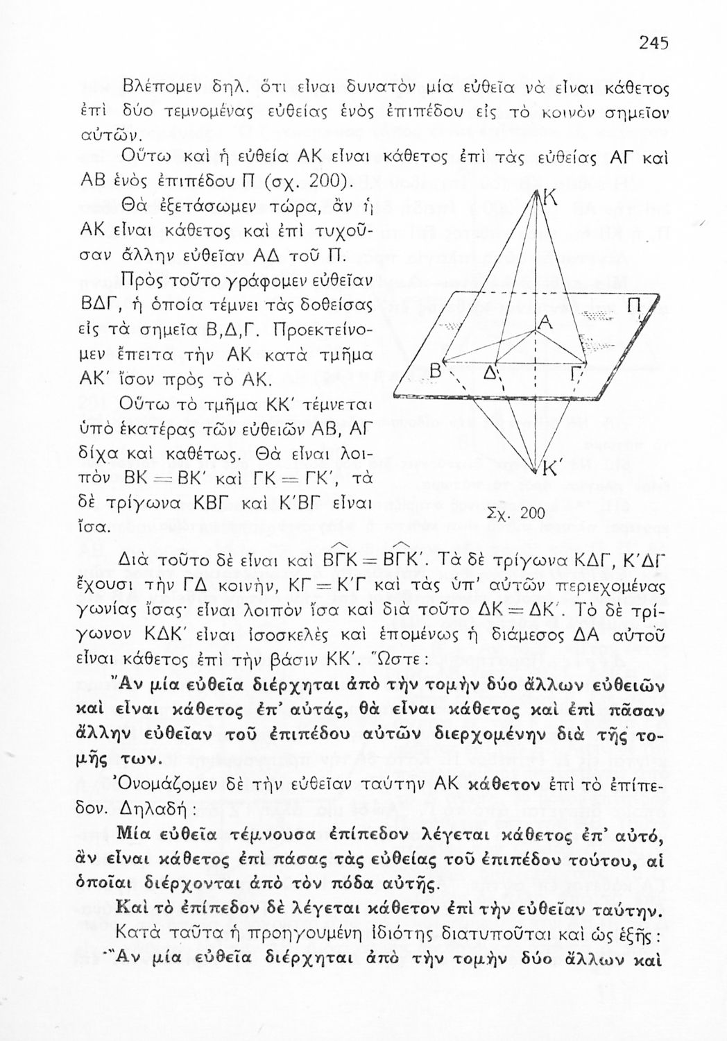 Σχολικό εγχειρίδιο Γεωμετρίας για τις Γ΄, Δ΄, Ε΄, ΣΤ΄ Γυμνασίου που περιλαμβάνει θεωρία και ασκήσεις και είναι χωρισμένο σε Επιπεδομετρία και Στερεομετρία. Φέρει το σύμβολο της δικτατορίας.