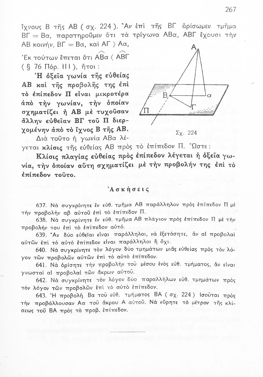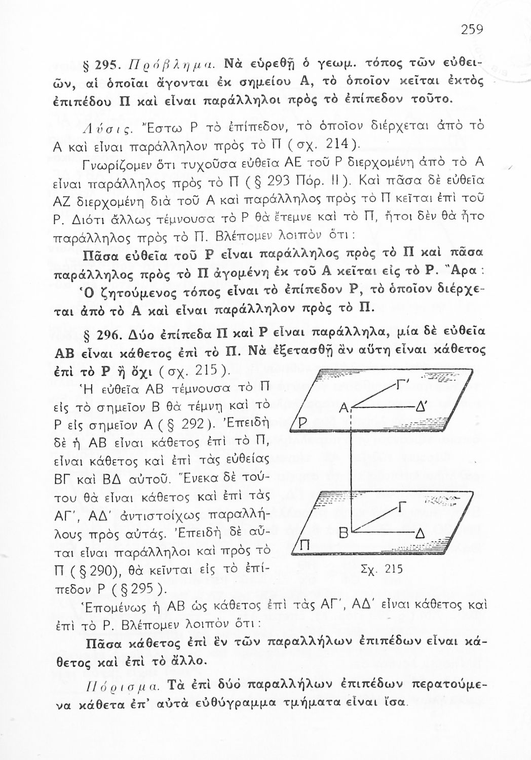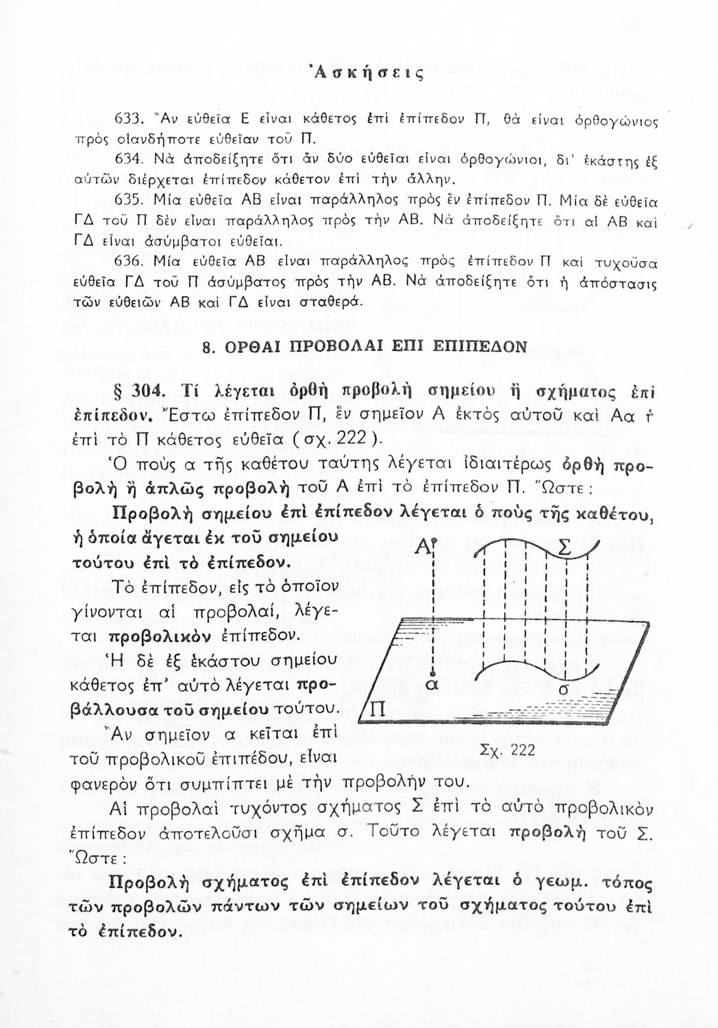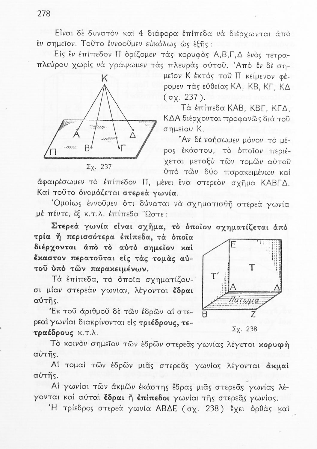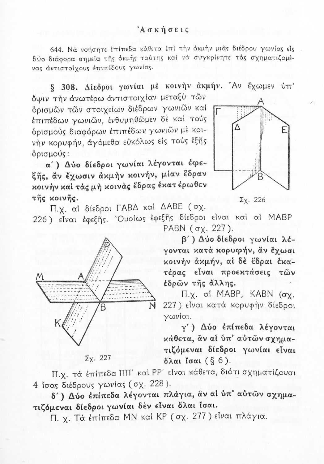 Σχολικό εγχειρίδιο Γεωμετρίας για τις Γ΄, Δ΄, Ε΄, ΣΤ΄ Γυμνασίου που περιλαμβάνει θεωρία και ασκήσεις και είναι χωρισμένο σε Επιπεδομετρία και Στερεομετρία. Φέρει το σύμβολο της δικτατορίας.