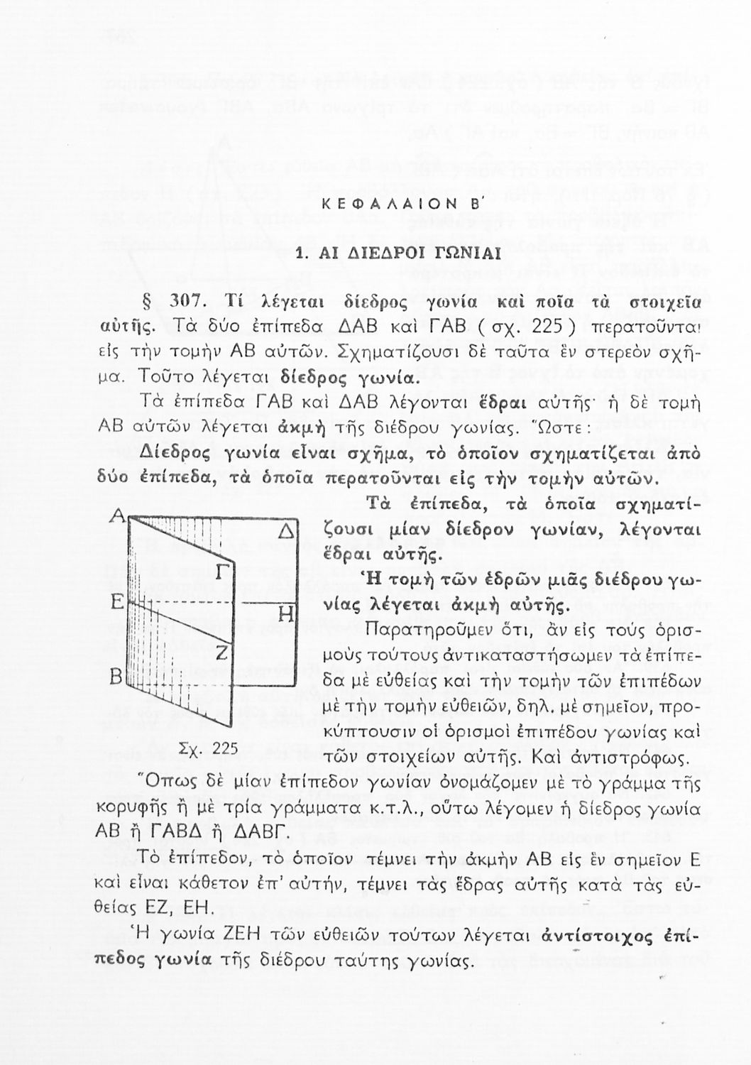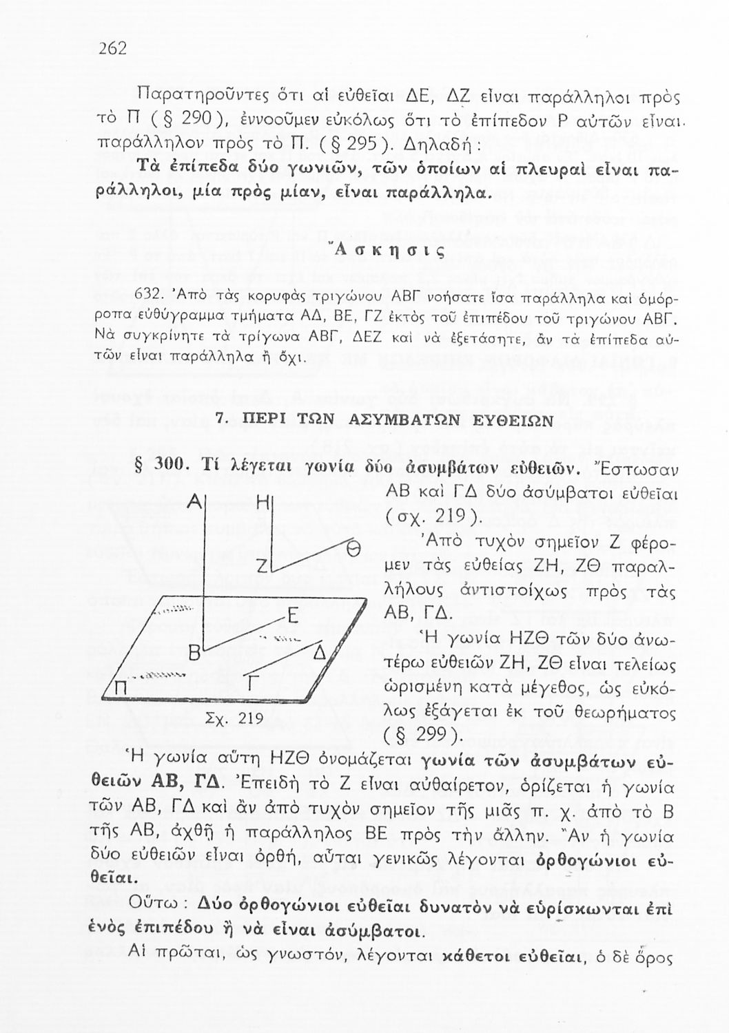 Σχολικό εγχειρίδιο Γεωμετρίας για τις Γ΄, Δ΄, Ε΄, ΣΤ΄ Γυμνασίου που εστιάζει στα βασικά θεωρήματα και ιδιότητες των γεωμετρικών σχημάτων. Φέρει το σύμβολο της δικτατορίας.