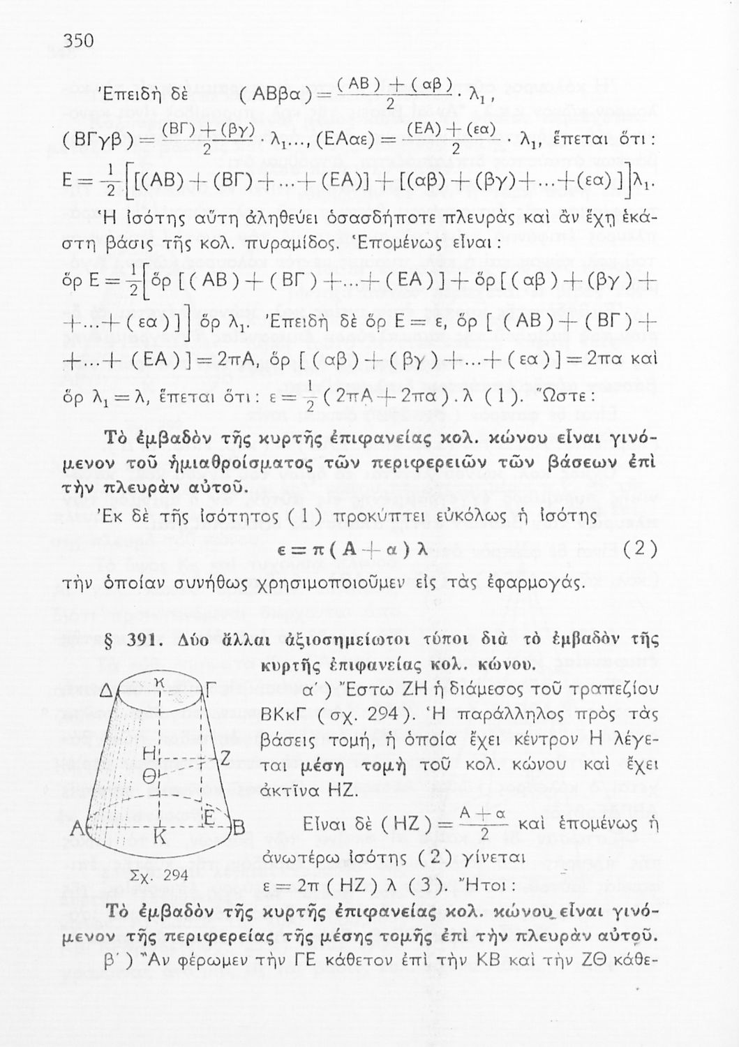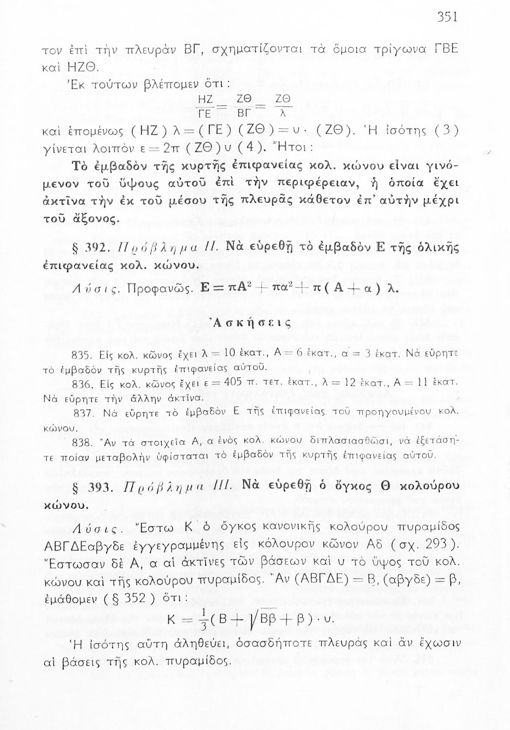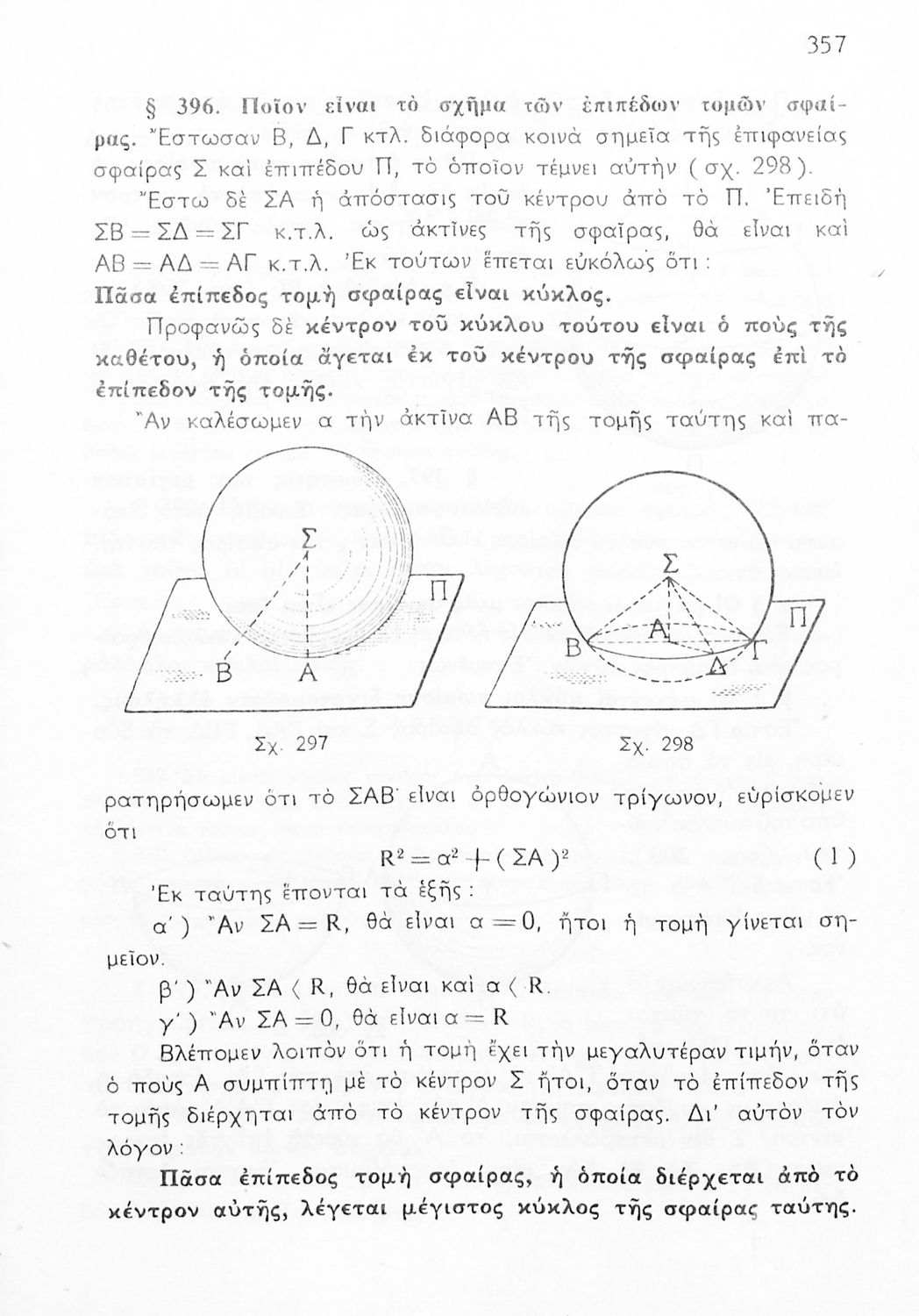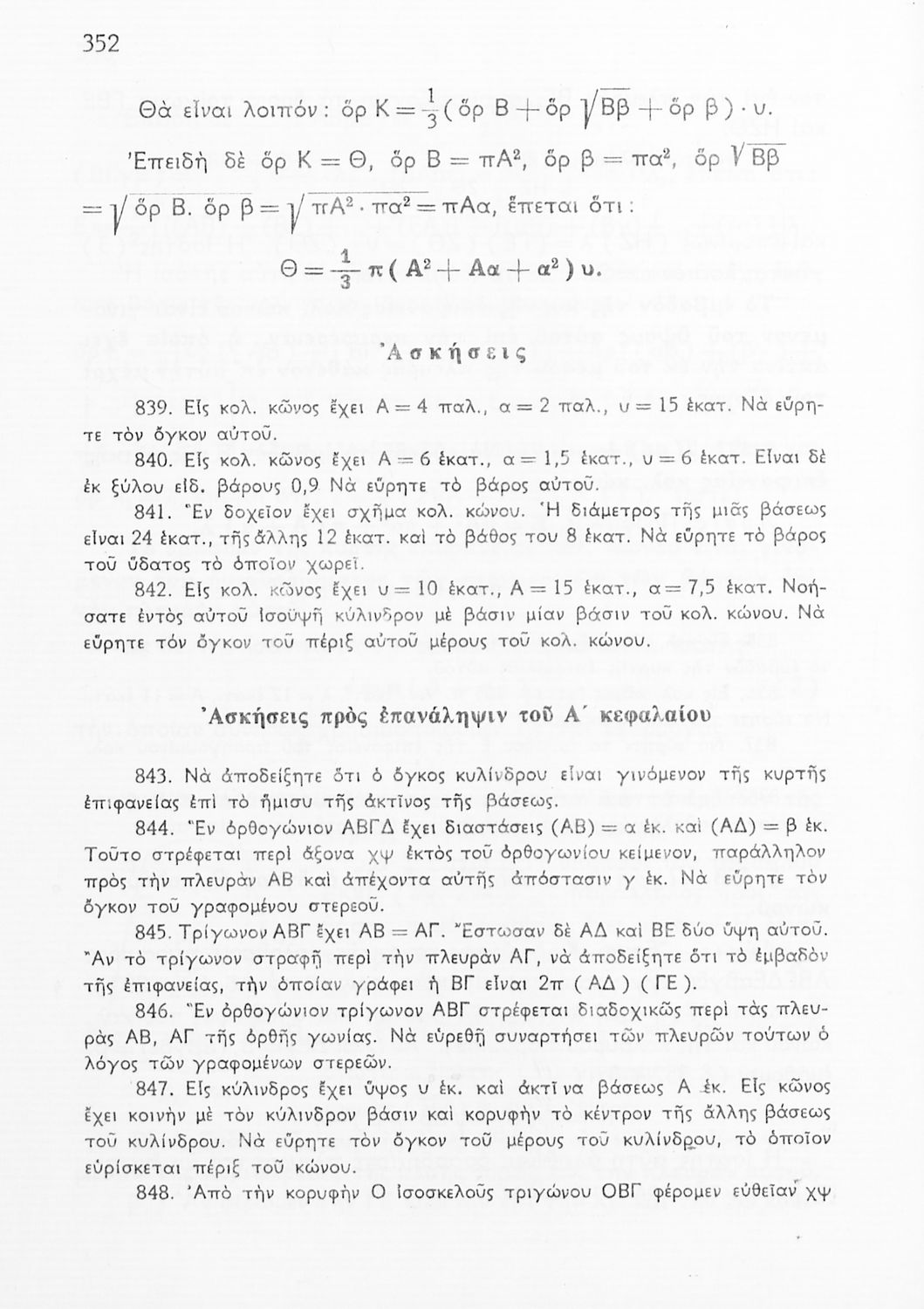 Σχολικό εγχειρίδιο Γεωμετρίας για τις Γ΄, Δ΄, Ε΄, ΣΤ΄ Γυμνασίου που περιλαμβάνει θεωρία και ασκήσεις και είναι χωρισμένο σε Επιπεδομετρία και Στερεομετρία. Φέρει το σύμβολο της δικτατορίας.