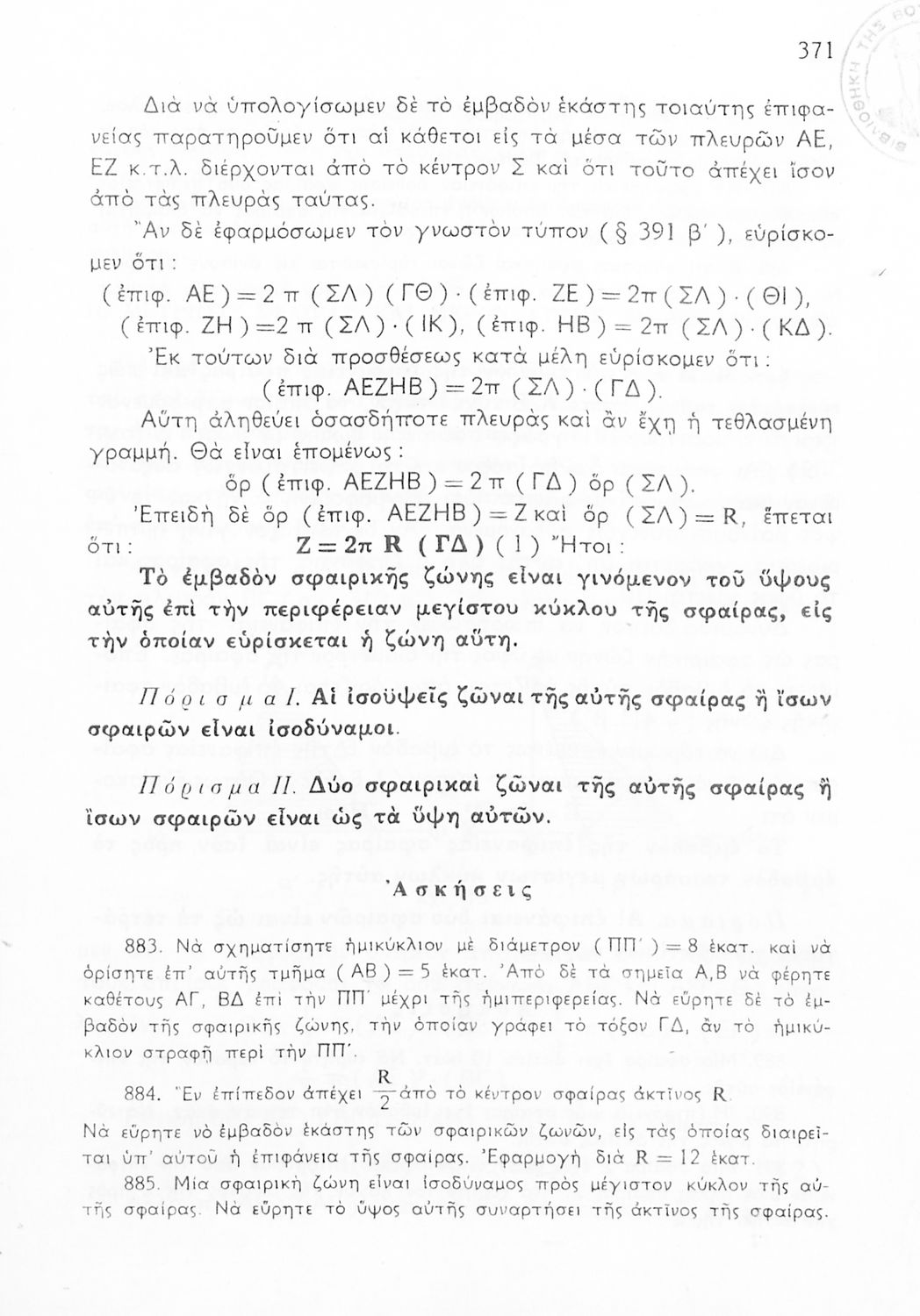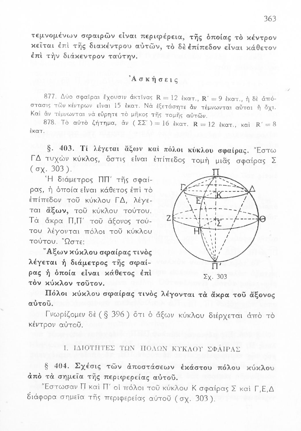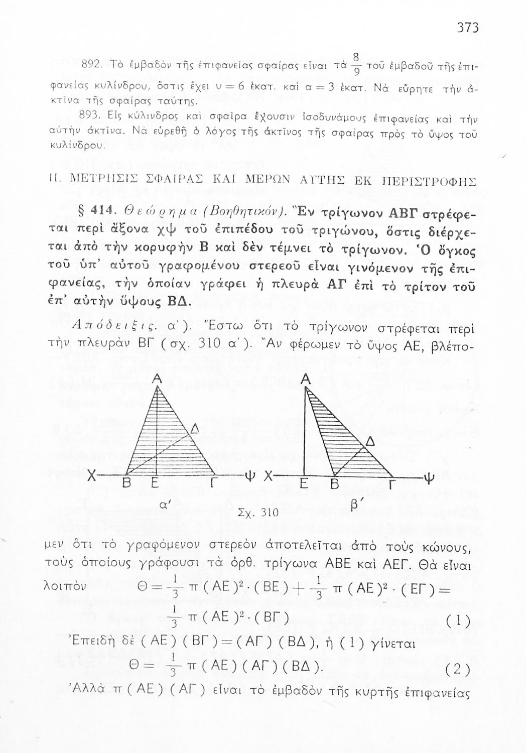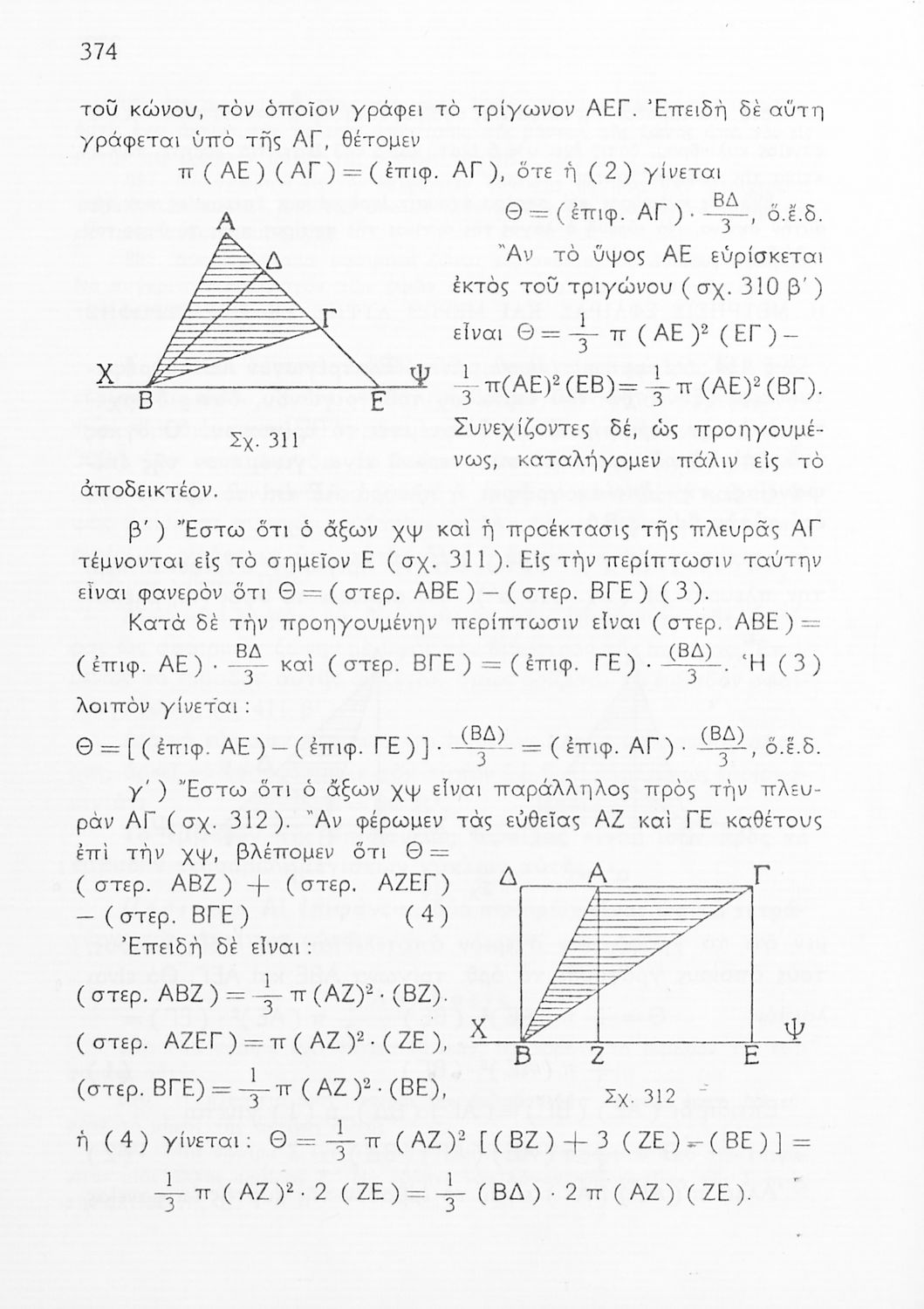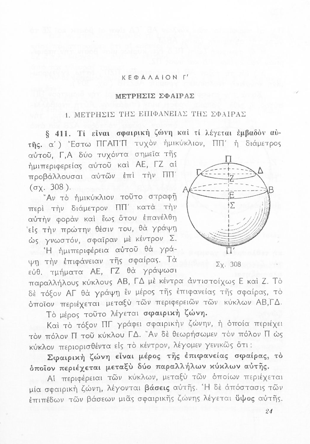 Σχολικό εγχειρίδιο Γεωμετρίας για τις Γ΄, Δ΄, Ε΄, ΣΤ΄ Γυμνασίου που περιλαμβάνει θεωρία και ασκήσεις και είναι χωρισμένο σε Επιπεδομετρία και Στερεομετρία.