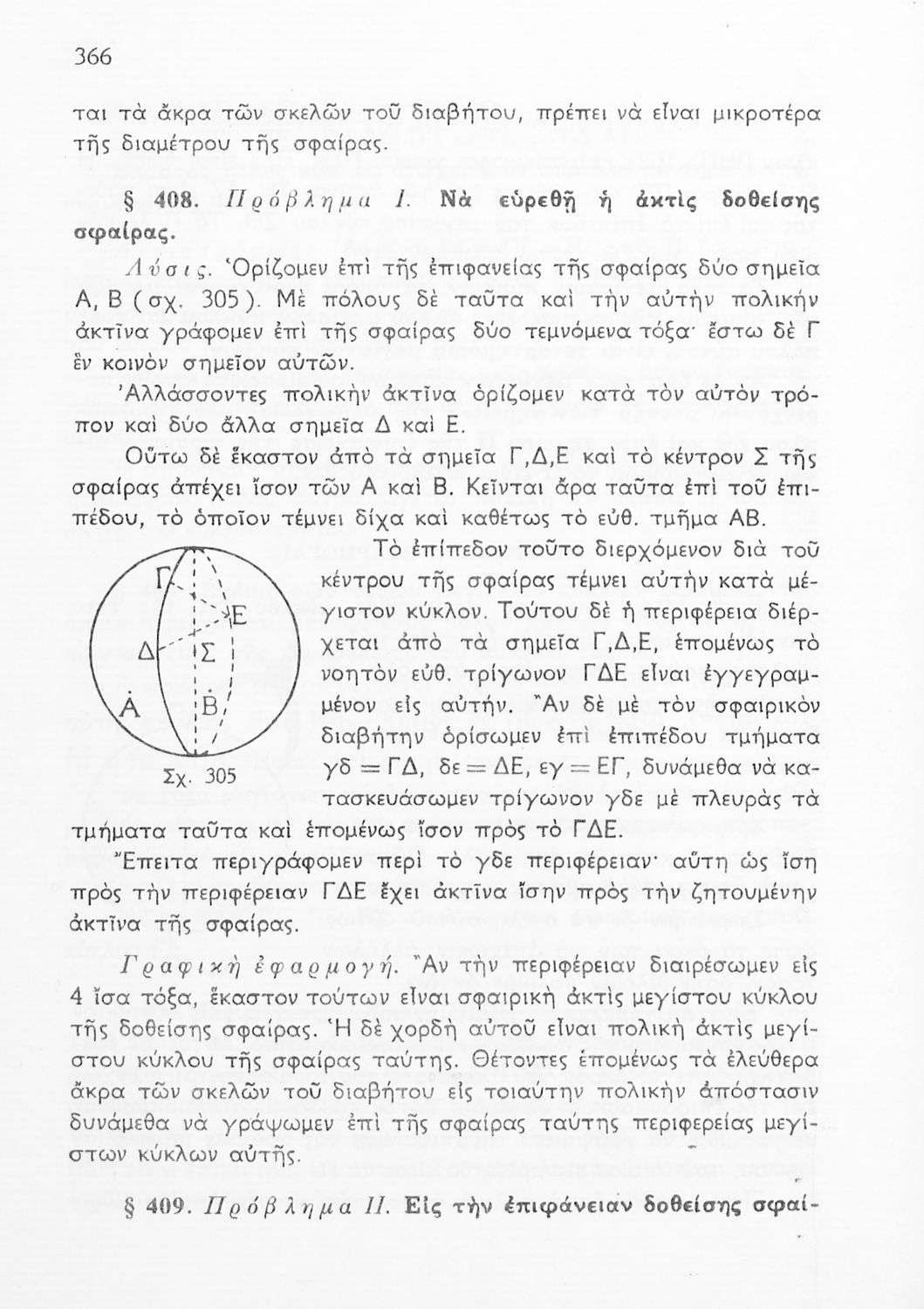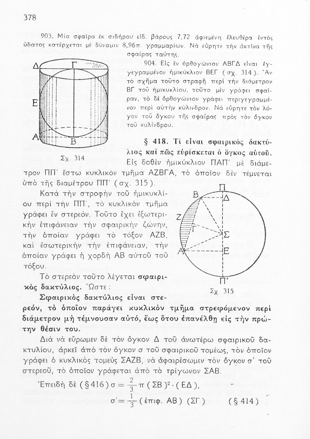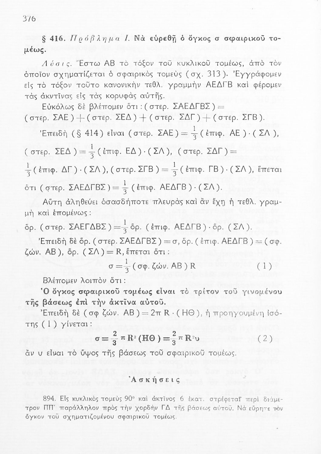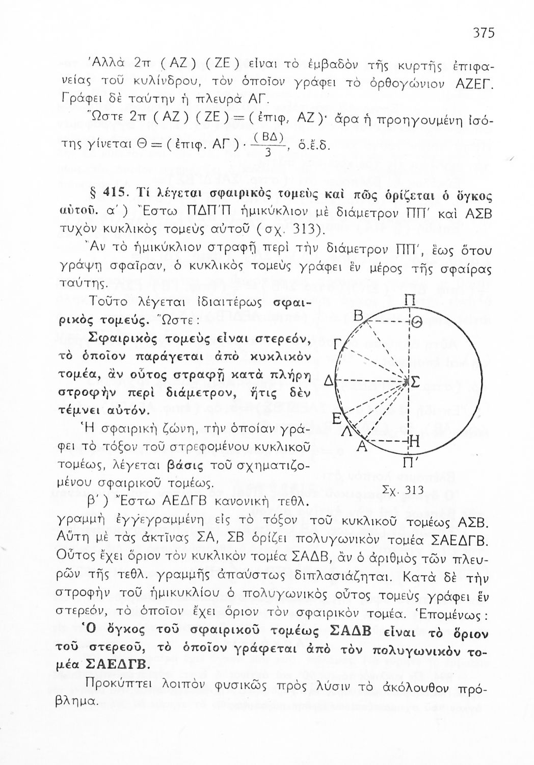 Σχολικό εγχειρίδιο Γεωμετρίας για τις Γ΄, Δ΄, Ε΄, ΣΤ΄ Γυμνασίου που περιλαμβάνει θεωρία και ασκήσεις και είναι χωρισμένο σε Επιπεδομετρία και Στερεομετρία. Φέρει το σύμβολο της δικτατορίας.