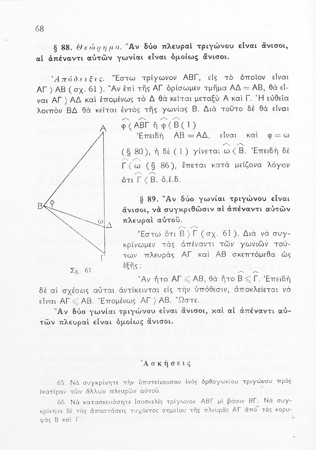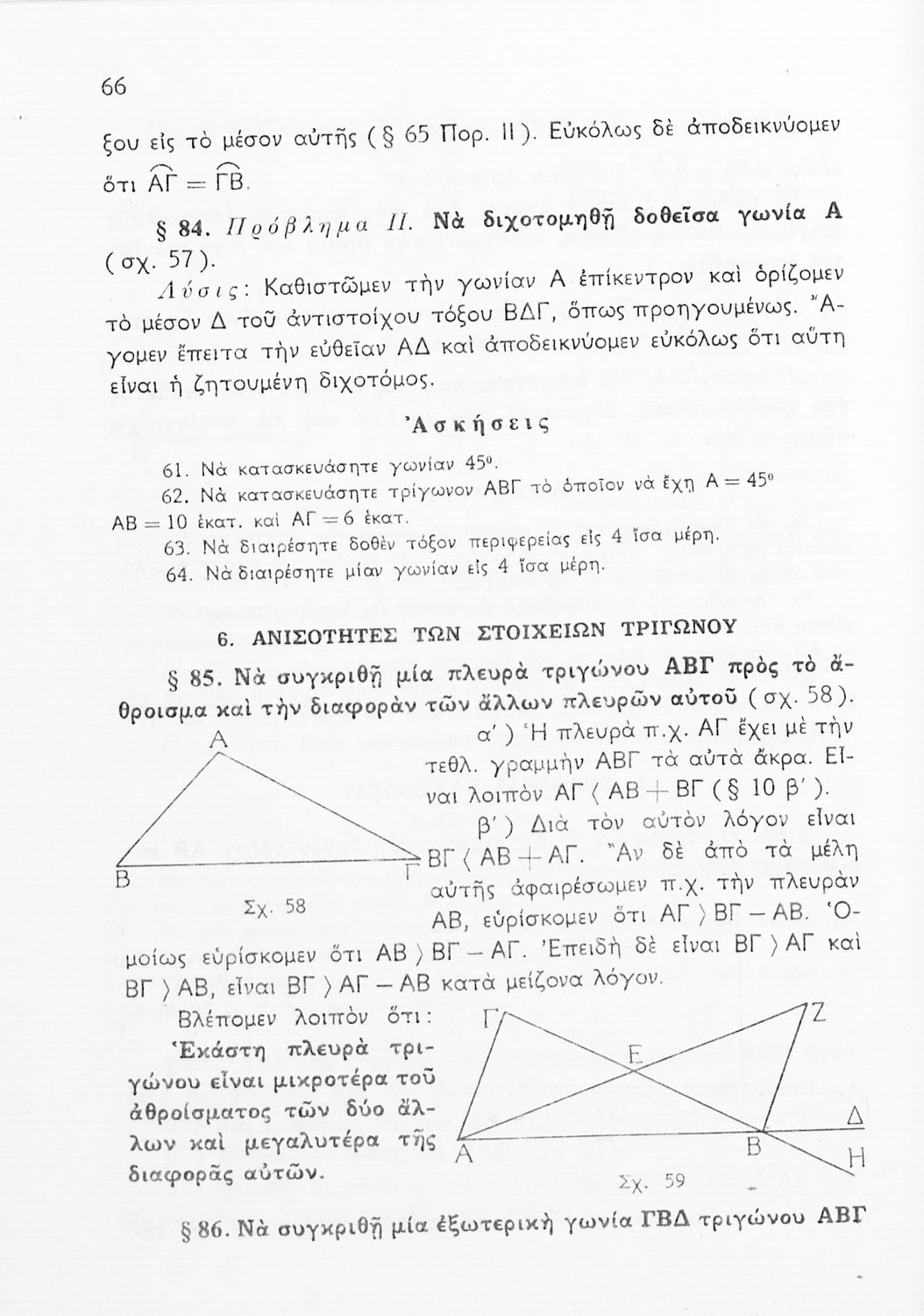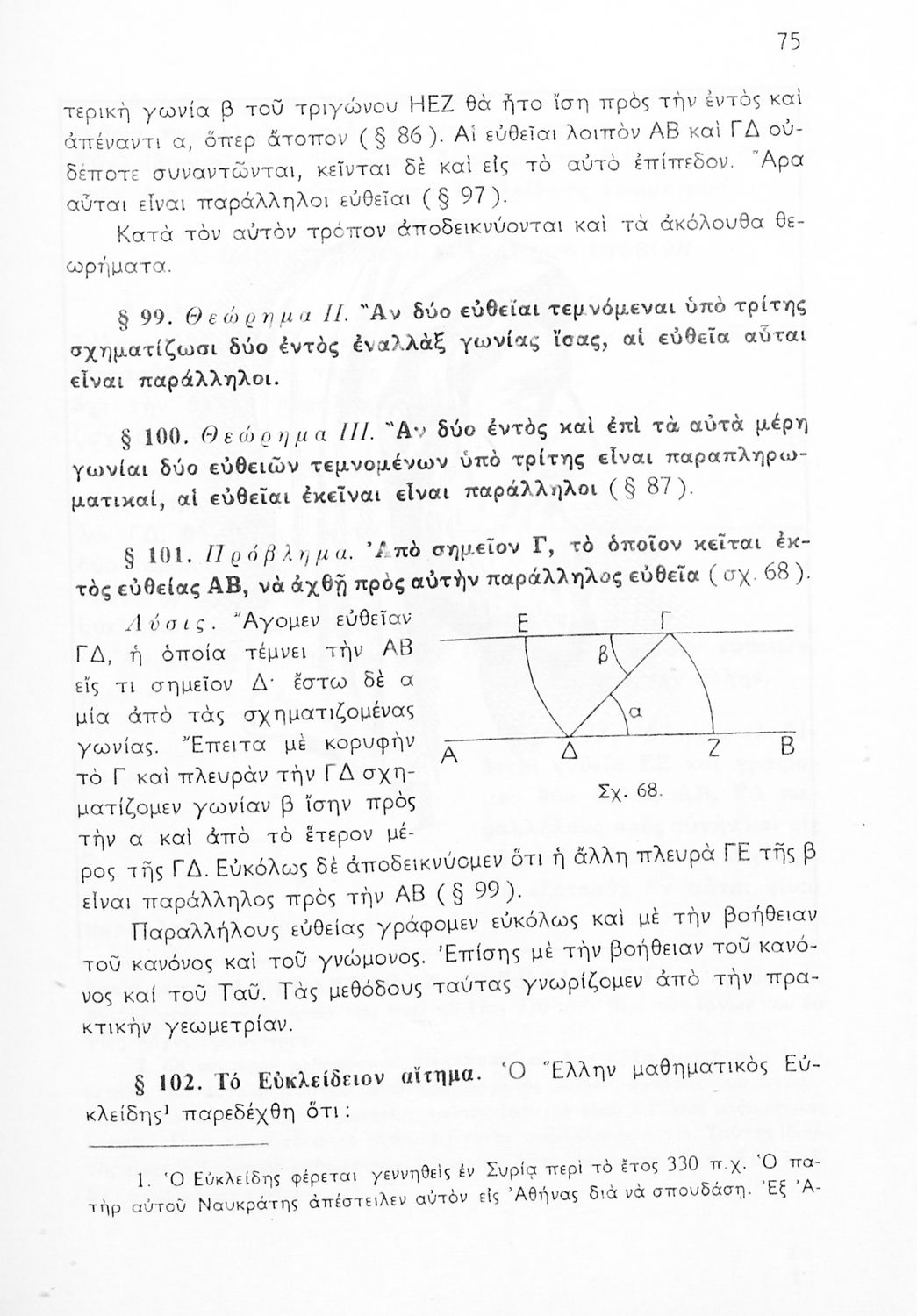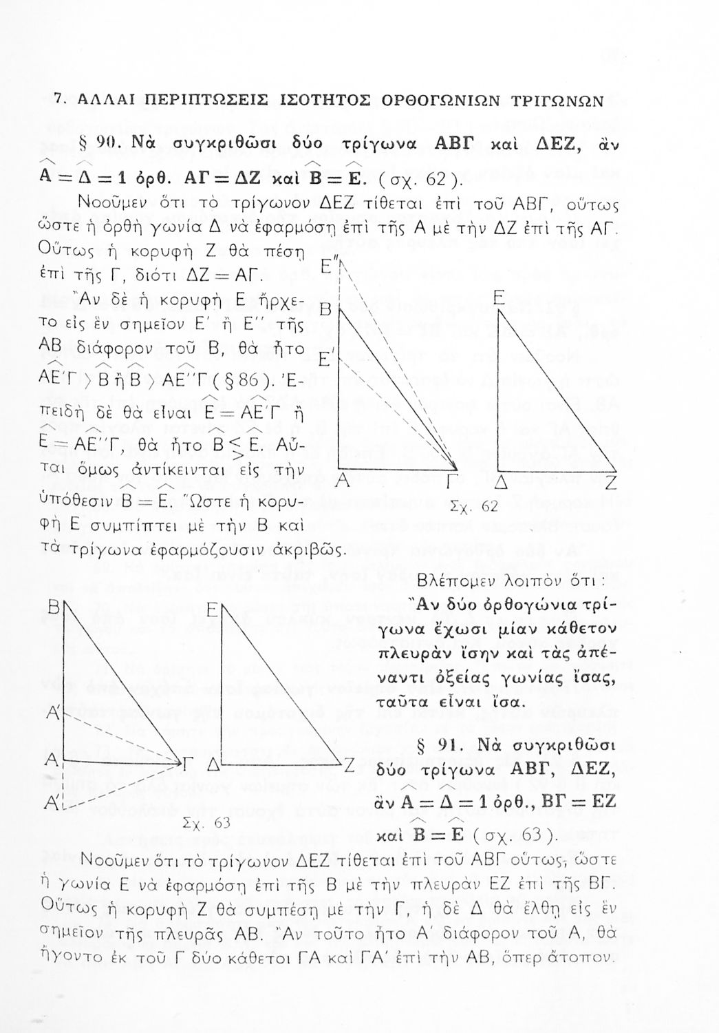 Σχολικό εγχειρίδιο Γεωμετρίας για τις Γ΄, Δ΄, Ε΄, ΣΤ΄ Γυμνασίου που εστιάζει στα βασικά θεωρήματα και ιδιότητες των γεωμετρικών σχημάτων. Φέρει το σύμβολο της δικτατορίας.
