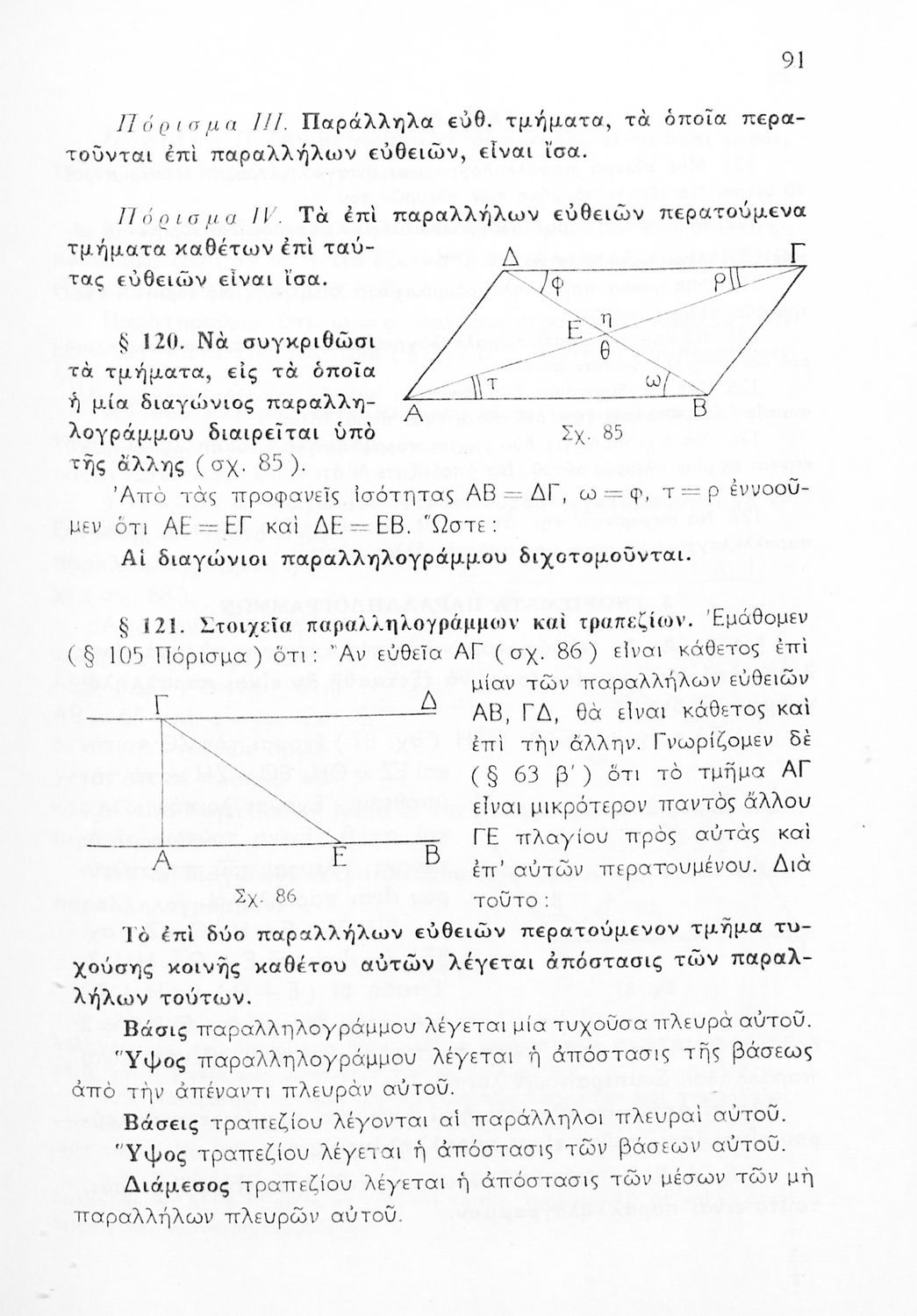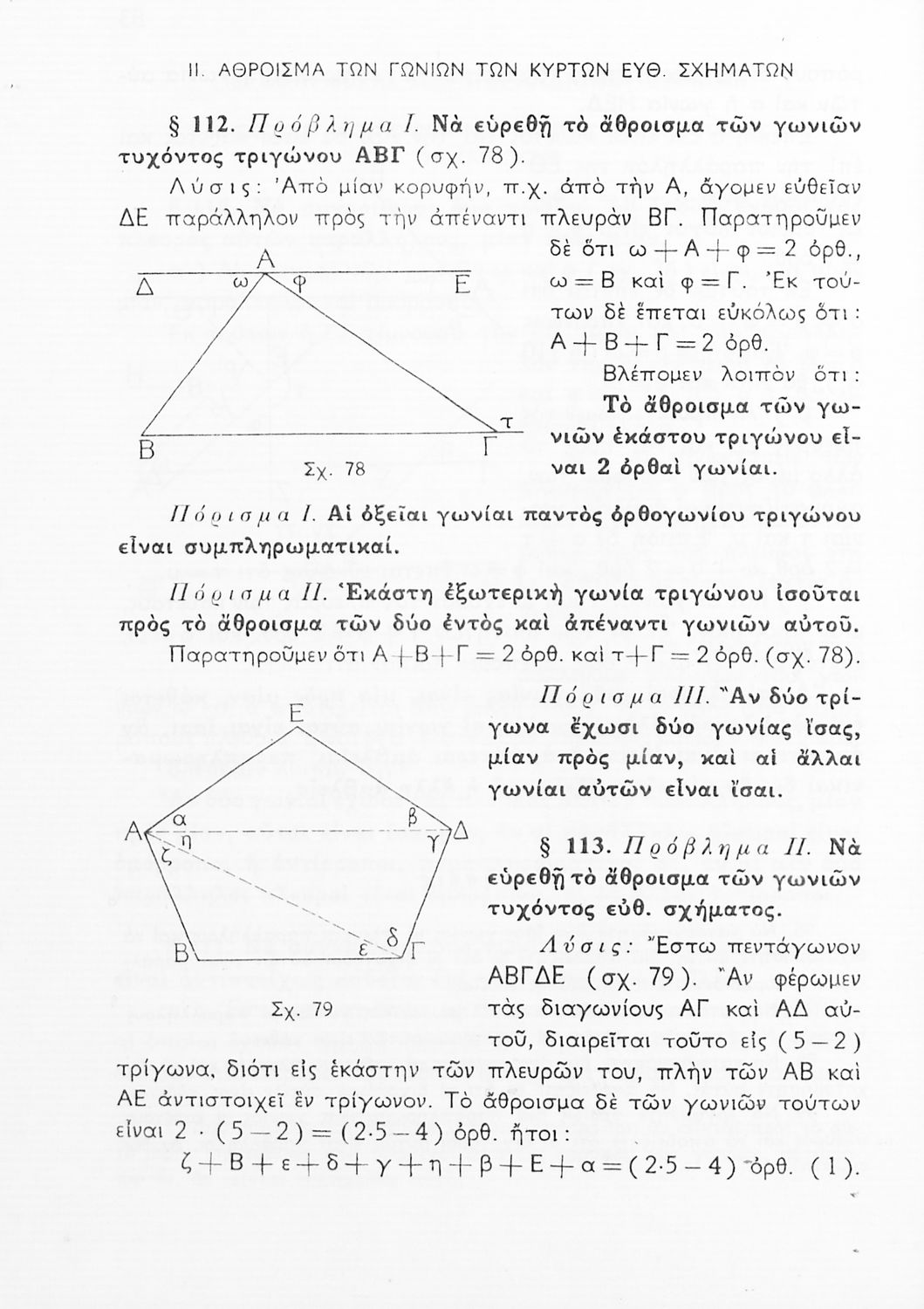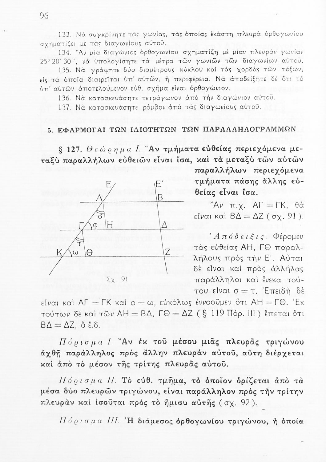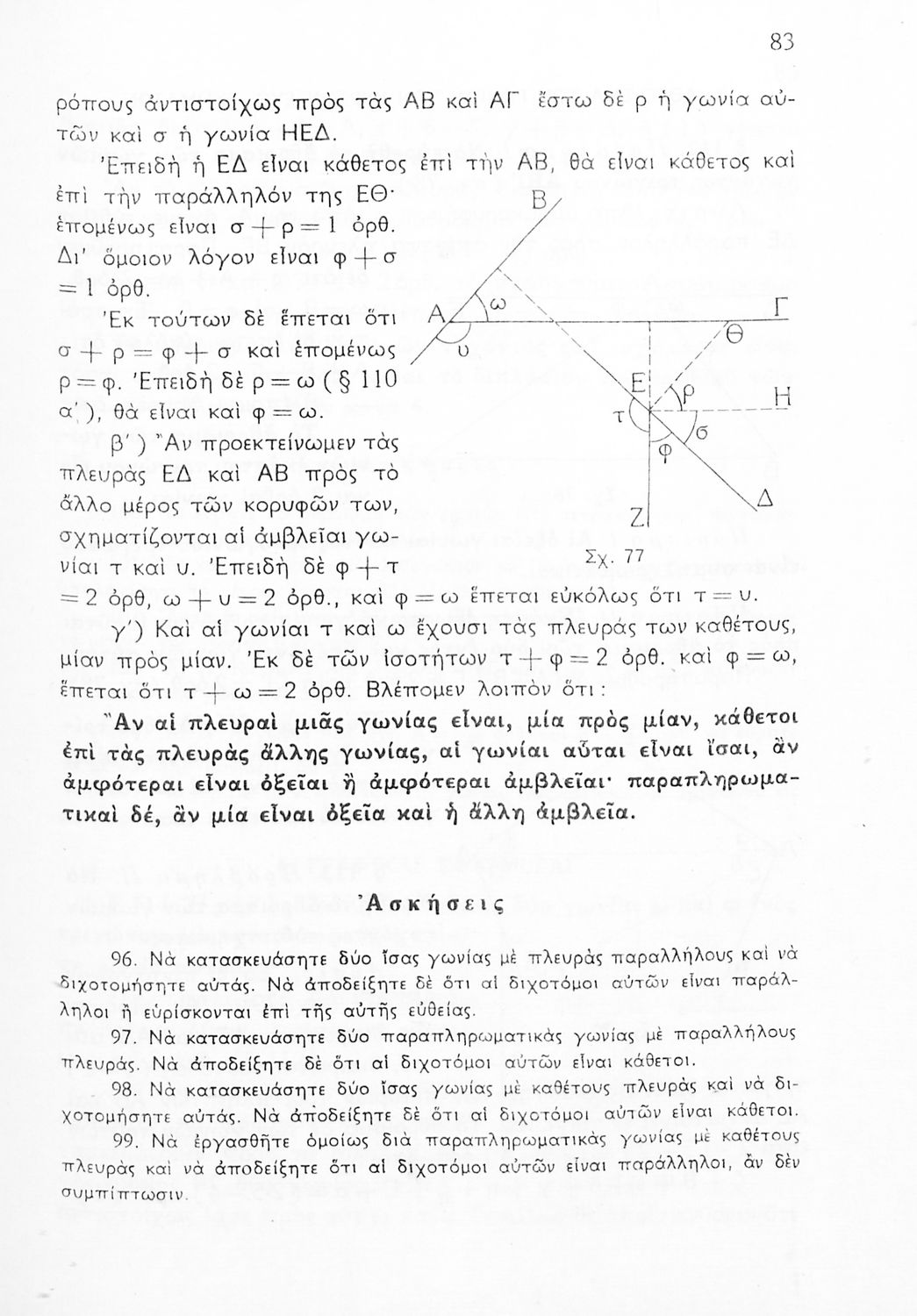 Σχολικό εγχειρίδιο Γεωμετρίας για τις Γ΄, Δ΄, Ε΄, ΣΤ΄ Γυμνασίου που περιλαμβάνει θεωρία και ασκήσεις και είναι χωρισμένο σε Επιπεδομετρία και Στερεομετρία.