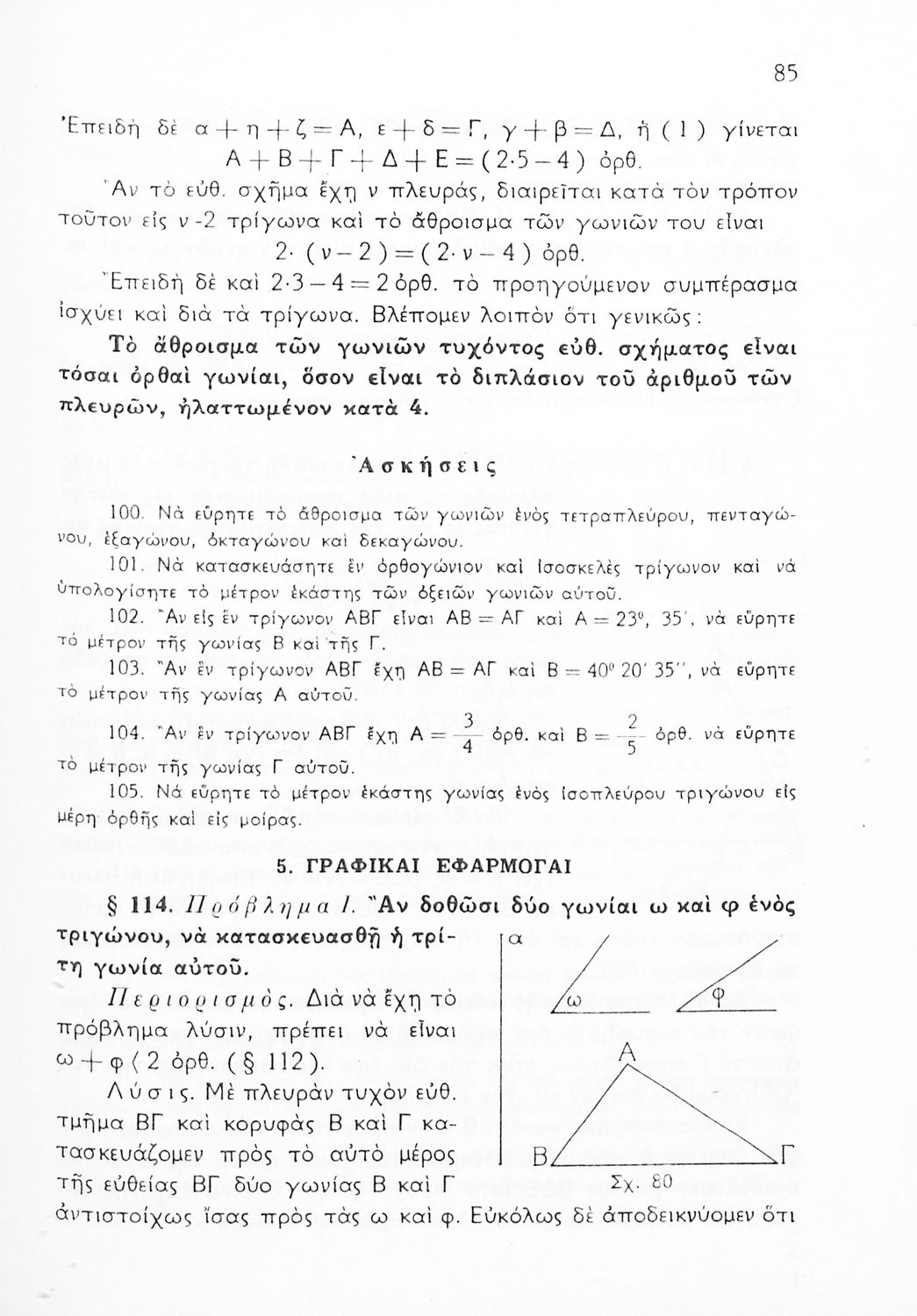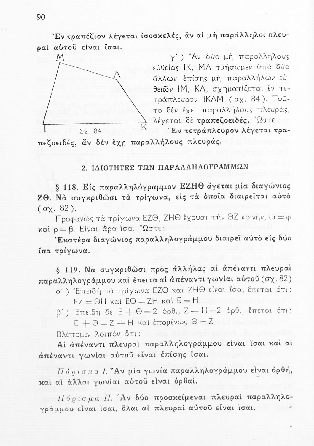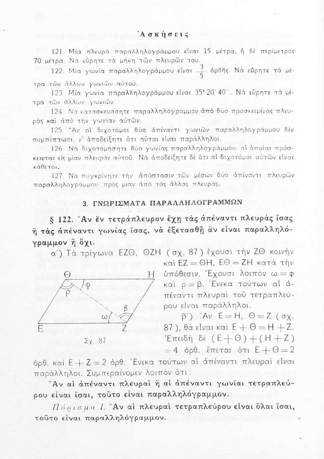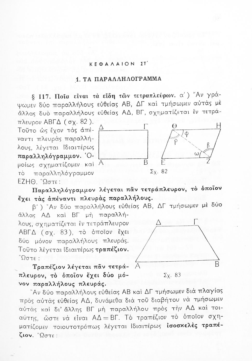 Σχολικό εγχειρίδιο Γεωμετρίας για τις Γ΄, Δ΄, Ε΄, ΣΤ΄ Γυμνασίου που εστιάζει στα βασικά θεωρήματα και ιδιότητες των γεωμετρικών σχημάτων. Φέρει το σύμβολο της δικτατορίας.