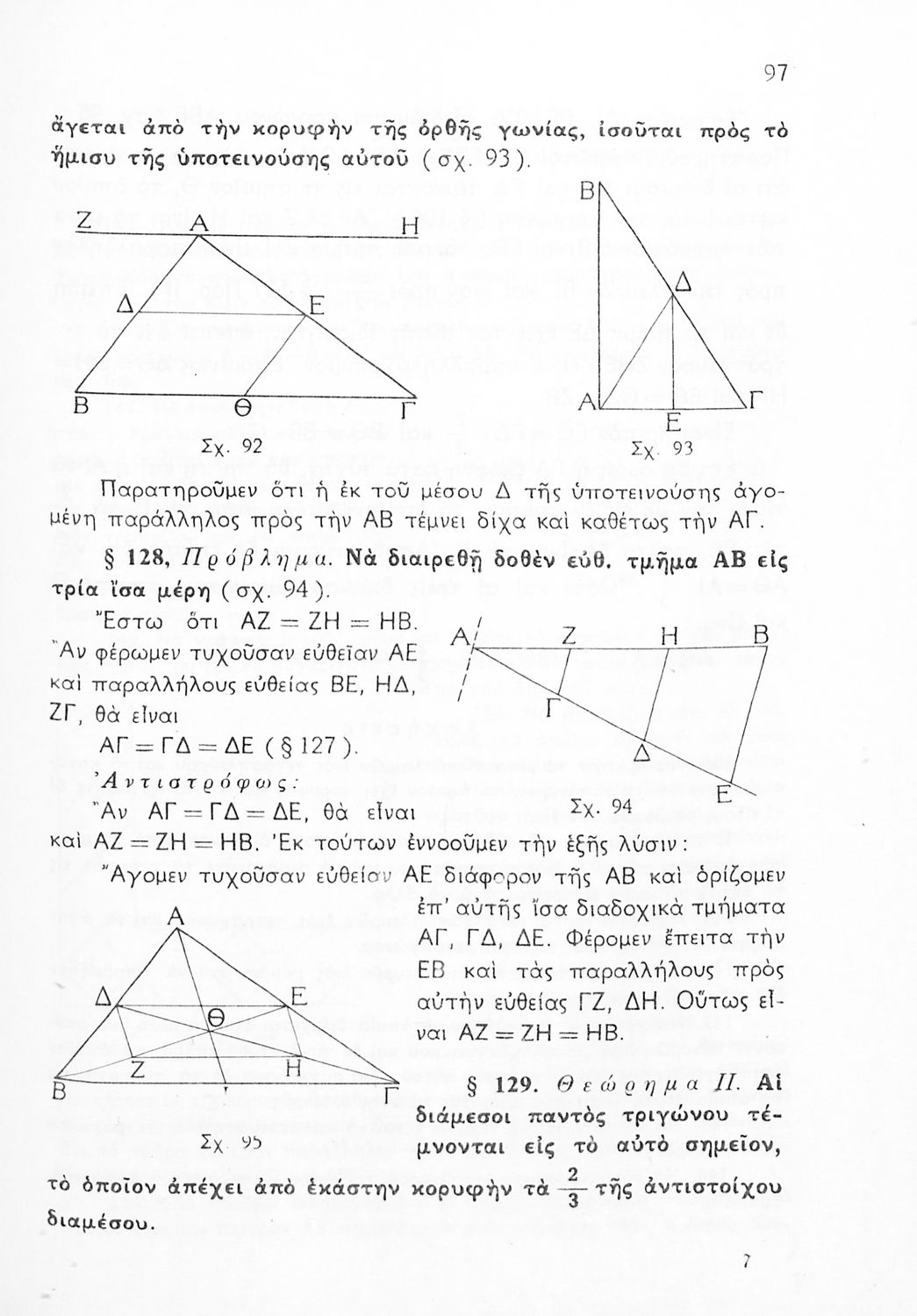 Παρουσίαση περιεχομένου: Σχολικό εγχειρίδιο Γεωμετρίας για τις Γ΄, Δ΄, Ε΄, ΣΤ΄ Γυμνασίου που εστιάζει στα βασικά θεωρήματα και ιδιότητες των γεωμετρικών σχημάτων. Φέρει το σύμβολο της δικτατορίας.