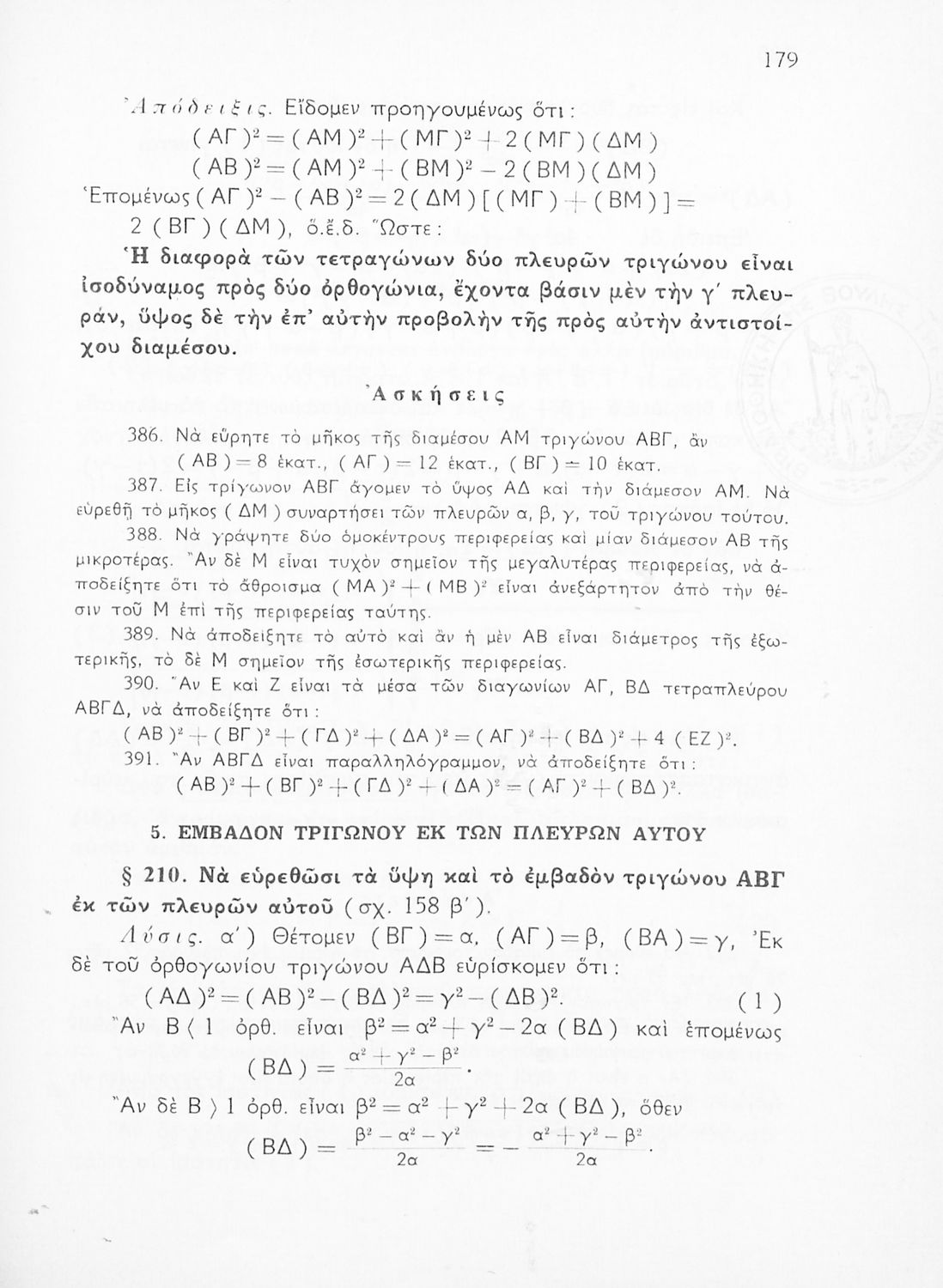 Τίτλος: Θεωρητική Γεωμετρία δια τας ανωτέρας τάξεις των Γυμνασίων